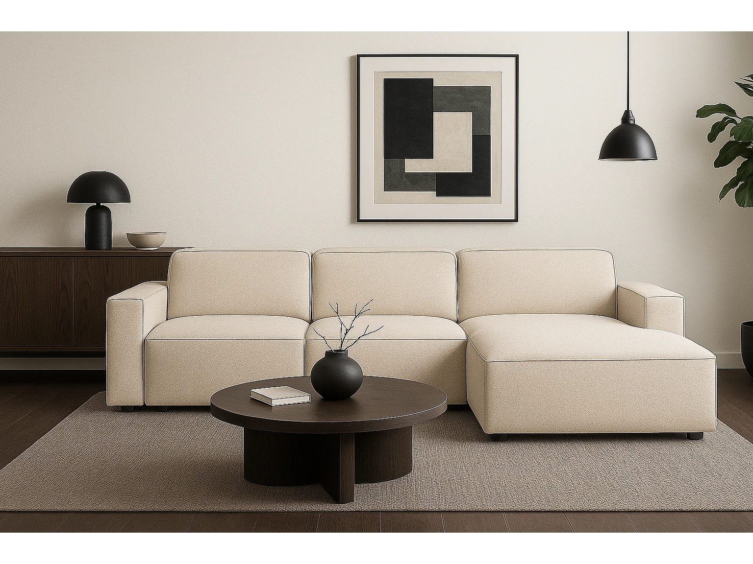 Canapé d’angle modulaire Cursal A droit – 284 x 166 cm, créme Raven 24, design moderne