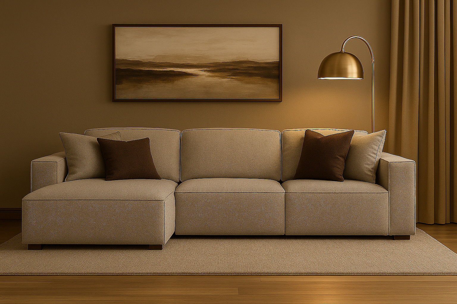 Canapé d’angle modulaire Cursal A gauche – 284 x 166 cm, beige Raven 30, design moderne