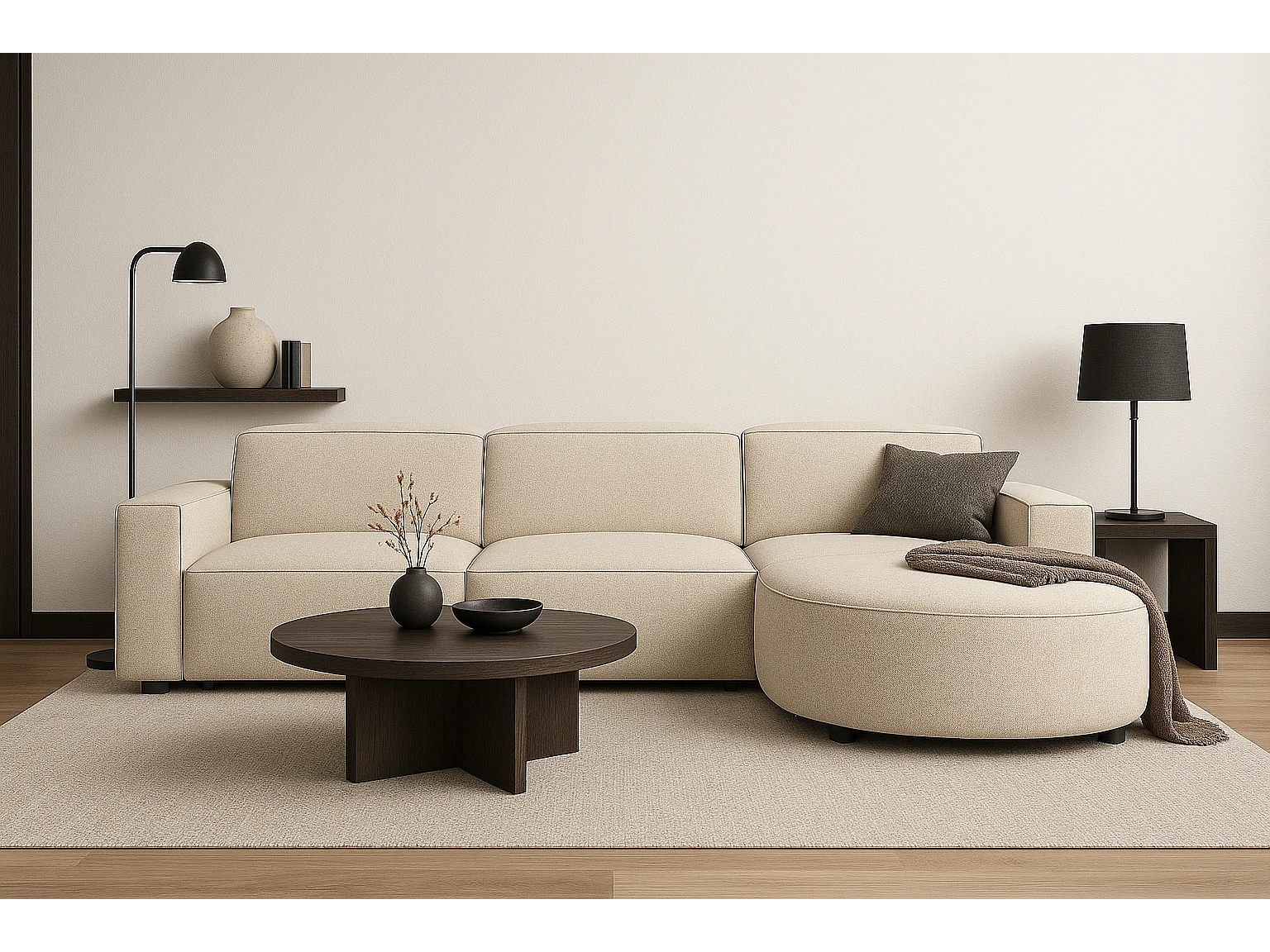 Canapé d’angle modulaire Cursal B droit – 282 × 166 cm,crème Raven 24, design moderne