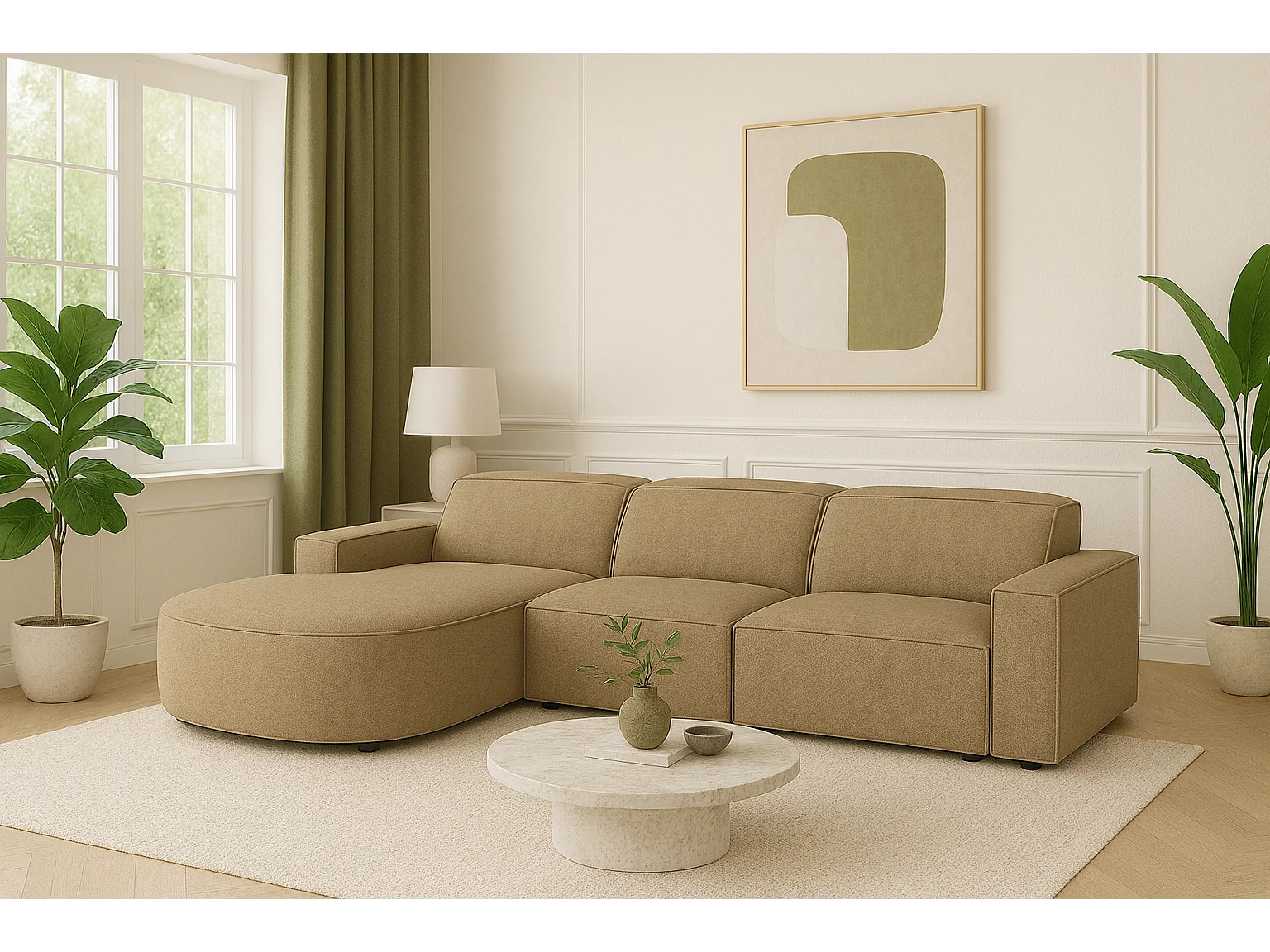 Canapé d’angle modulaire Cursal B gauche – 282 × 166 cm, marron clair Raven 34, design moderne