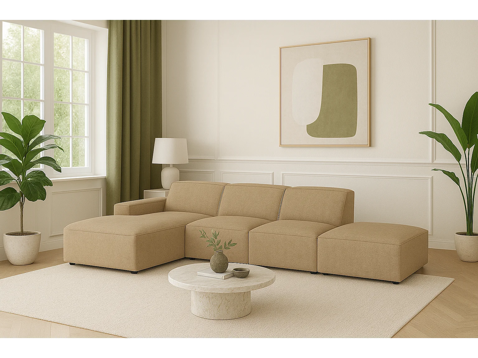Canapé d’angle modulaire Cursal C gauche – 341 x 166 x 70 cm, marron clair Raven 34, design moderne