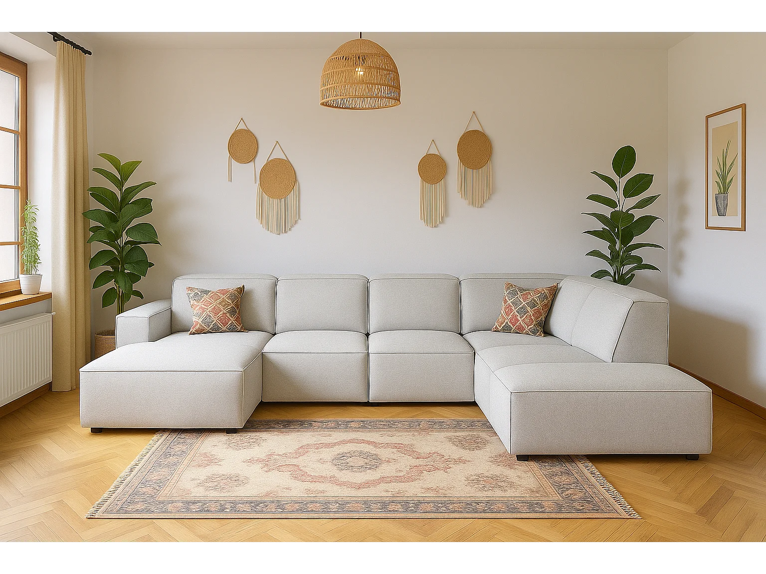 Canapé d’angle modulaire Cursal D droit – 364 x 262 x 70 cm, gris clair Raven 6, design moderne