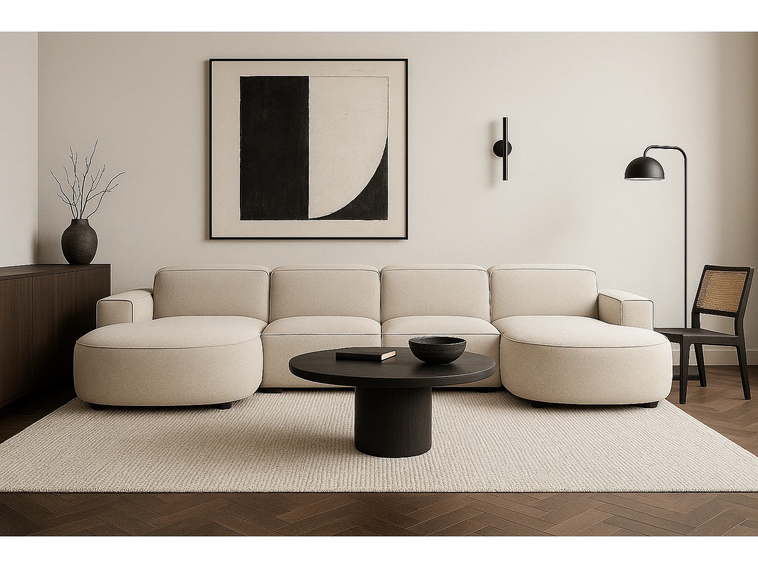 Canapé d’angle modulaire Cursal E – 364 x 166 cm,crème Raven 24, design moderne