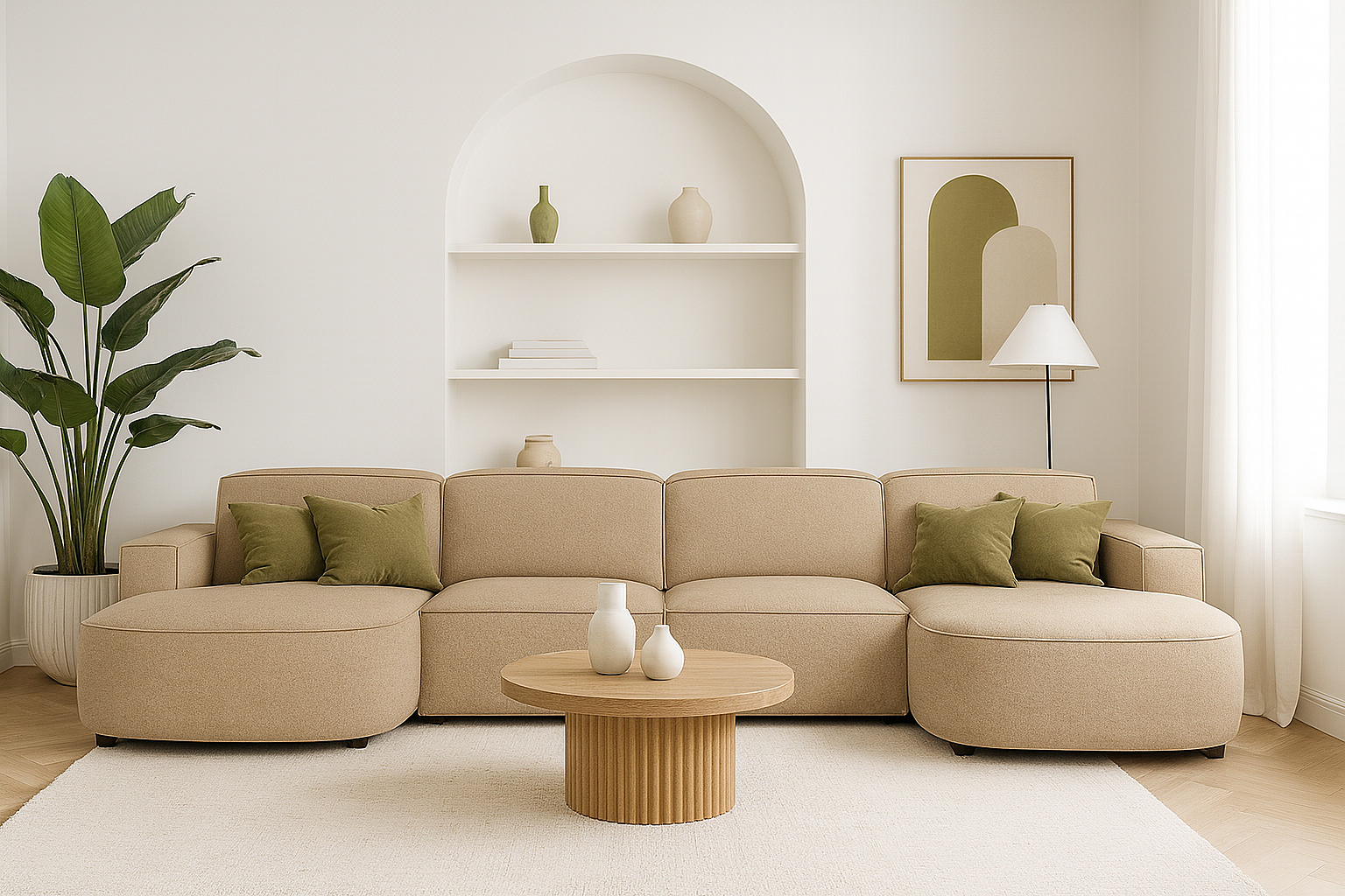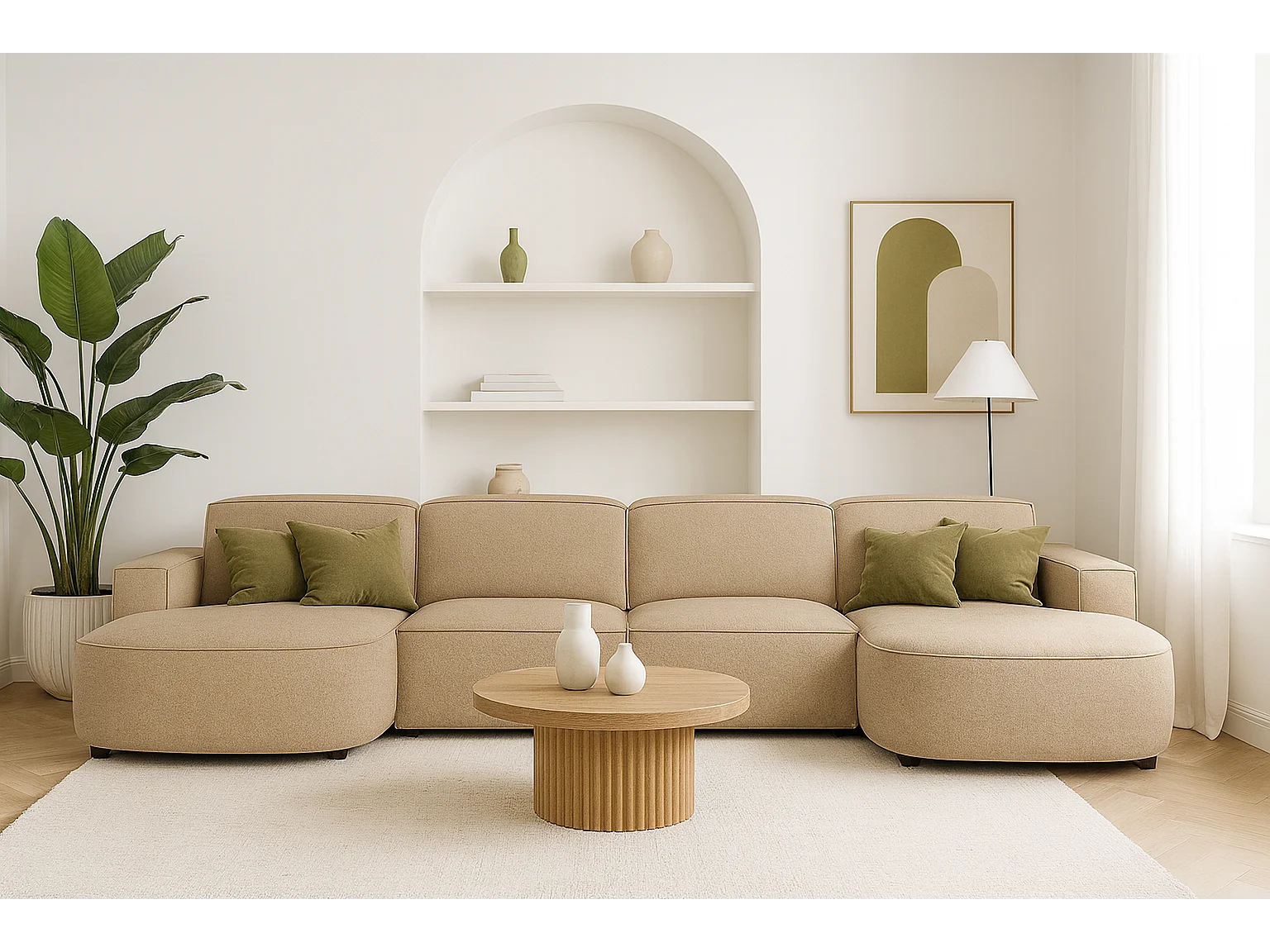 Canapé d’angle modulaire Cursal E – 364 x 166 cm, marron clair Raven 34 , design moderne