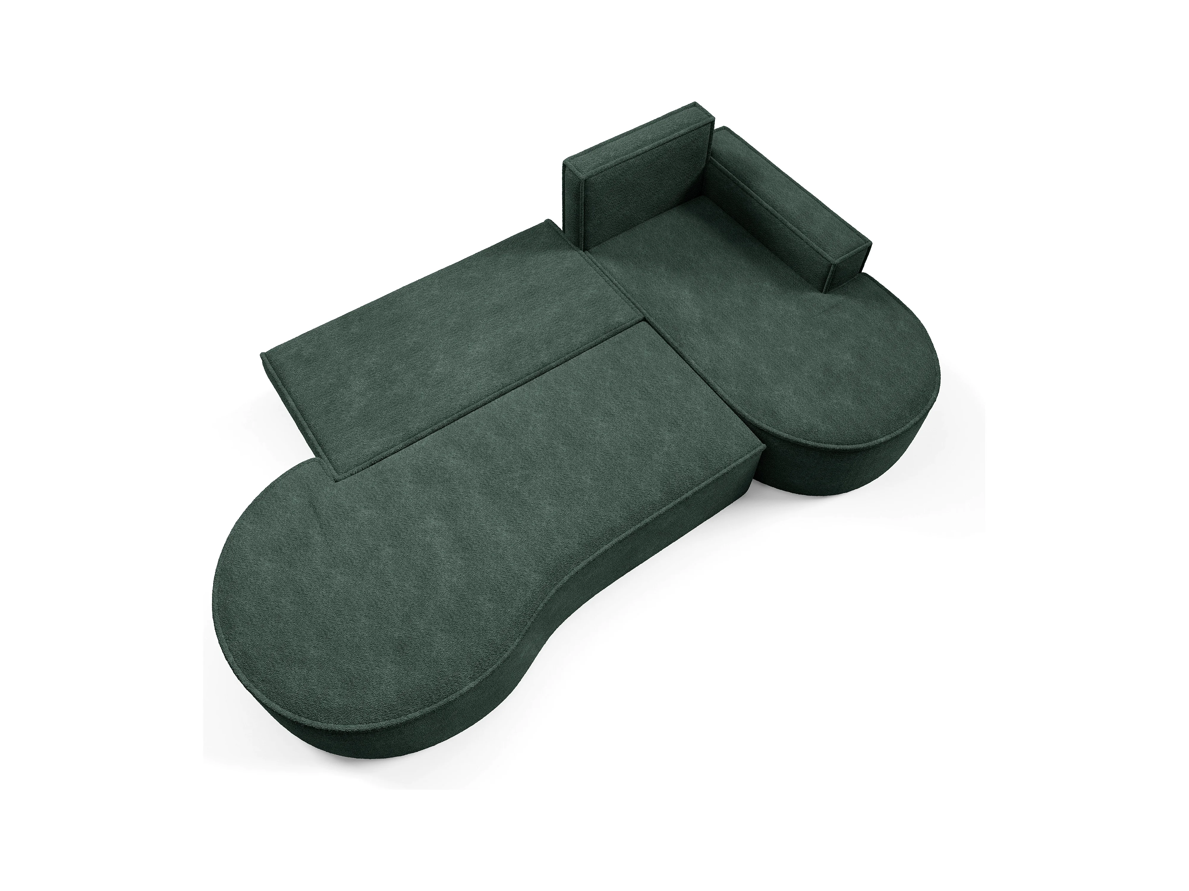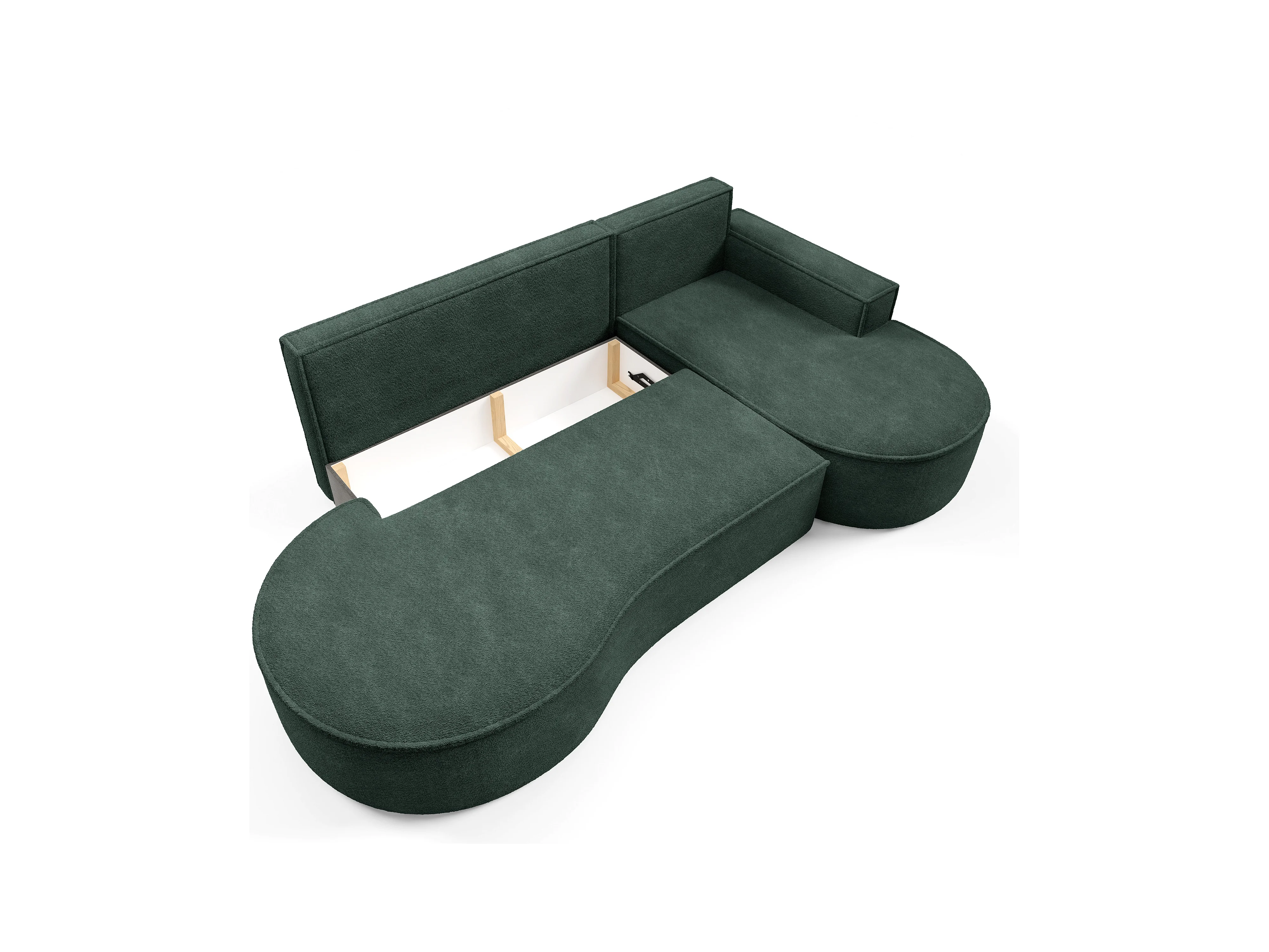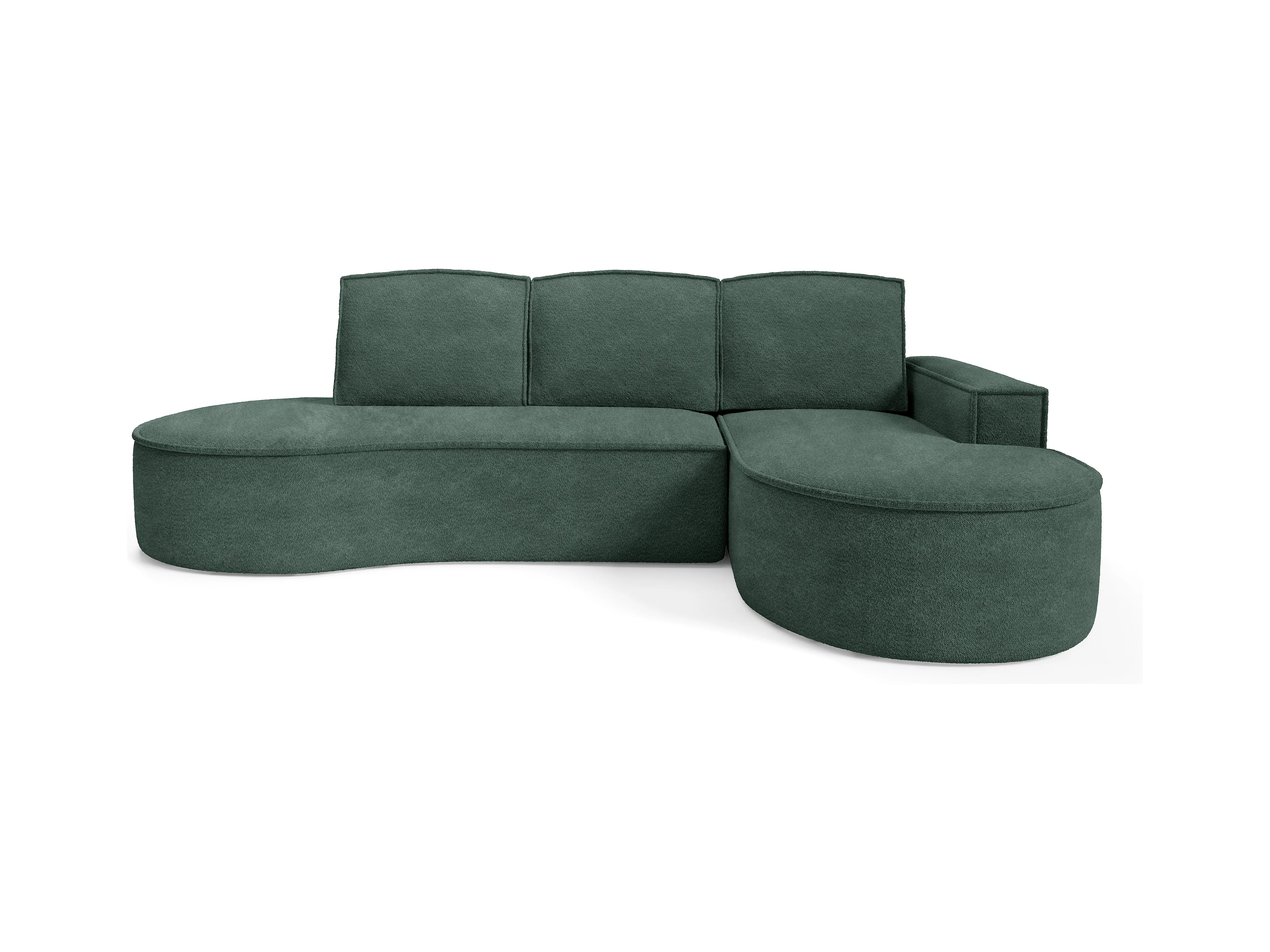 Canapé d'angle MOLLY avec couchage - Design arrondi, autoportant, 140x207 cm, 3 coussins, tissu Curio, 277x157x88 cm, côté droit vert