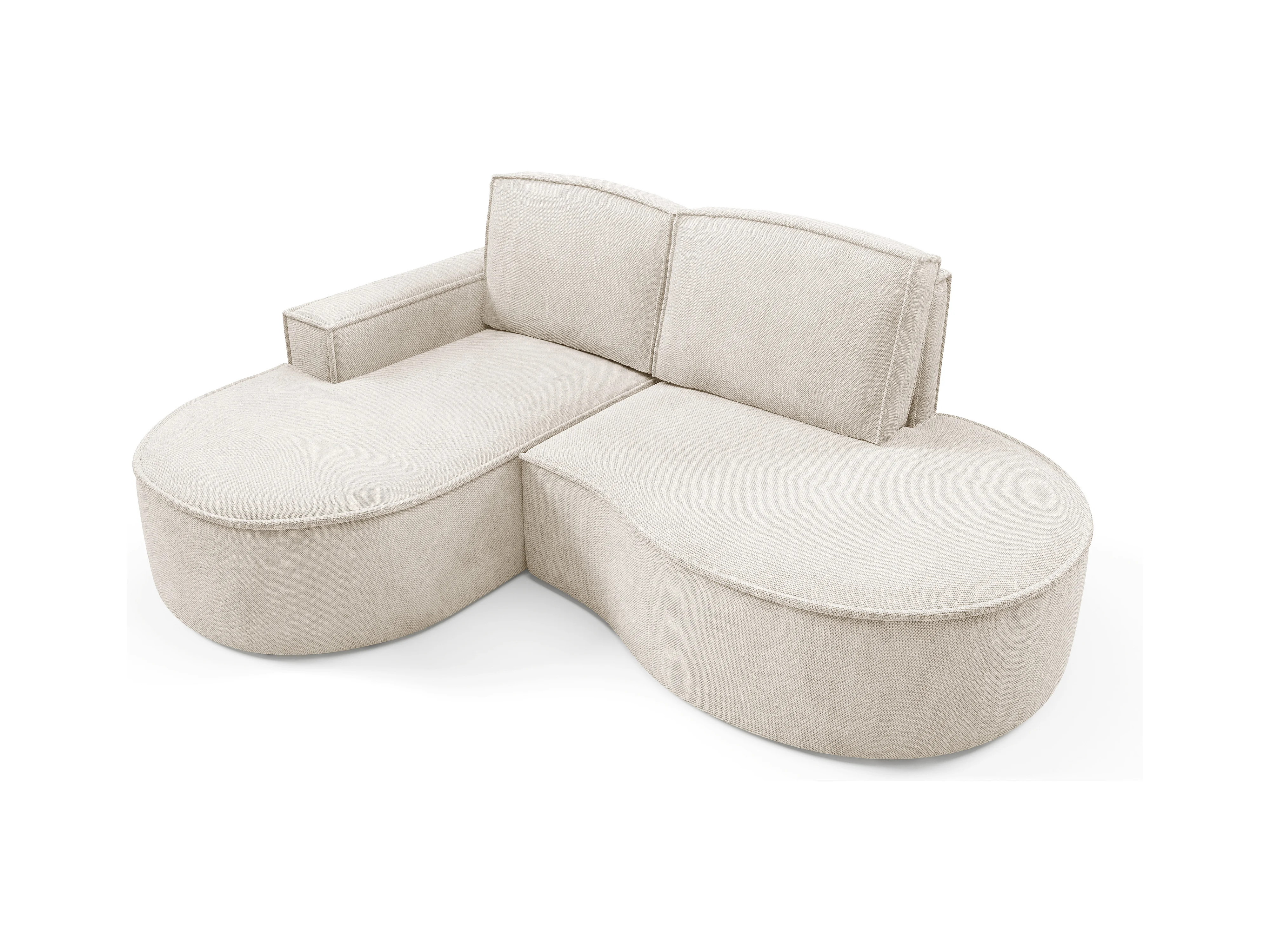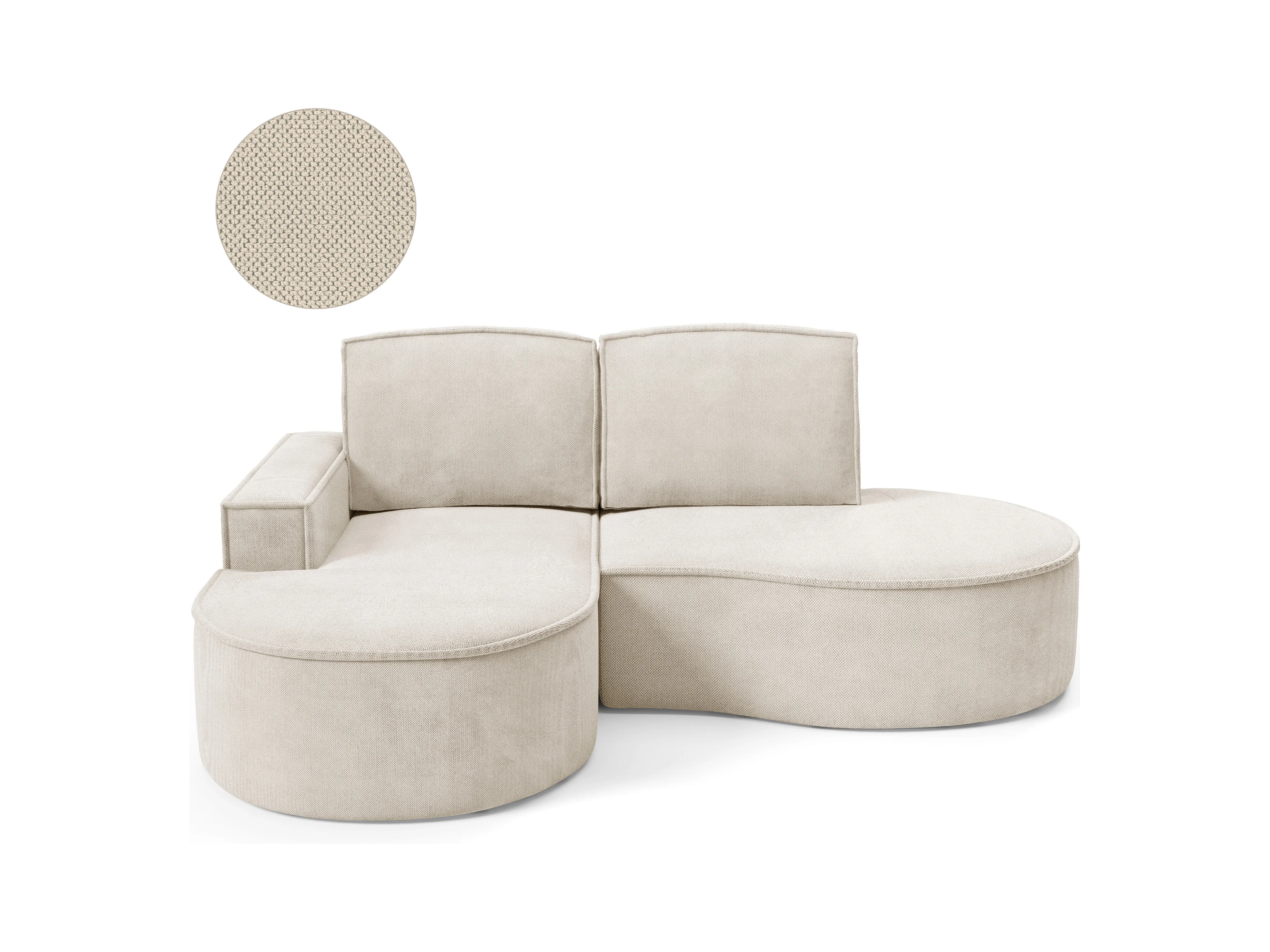 Canapé d'angle MOLLY sans couchage – Demi-lune, tissu Bouclé, coussins amovibles, revêtement doux, 210x157x88 cm, côté gauche beige