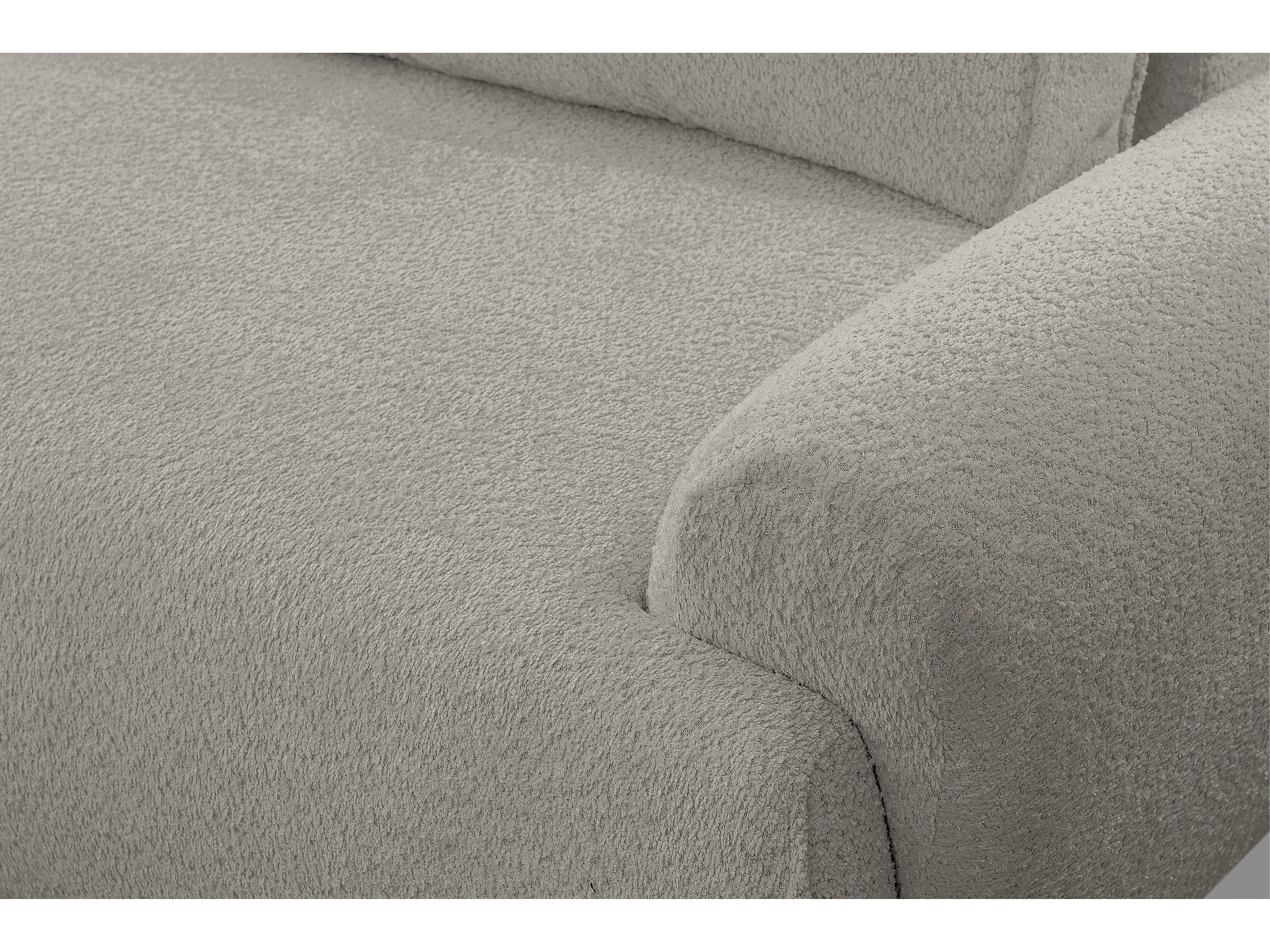 Canapé d'angle Moon avec fonction couchage et coffre de rangement, couleur : gris, tissu bouclé, pouf à droite