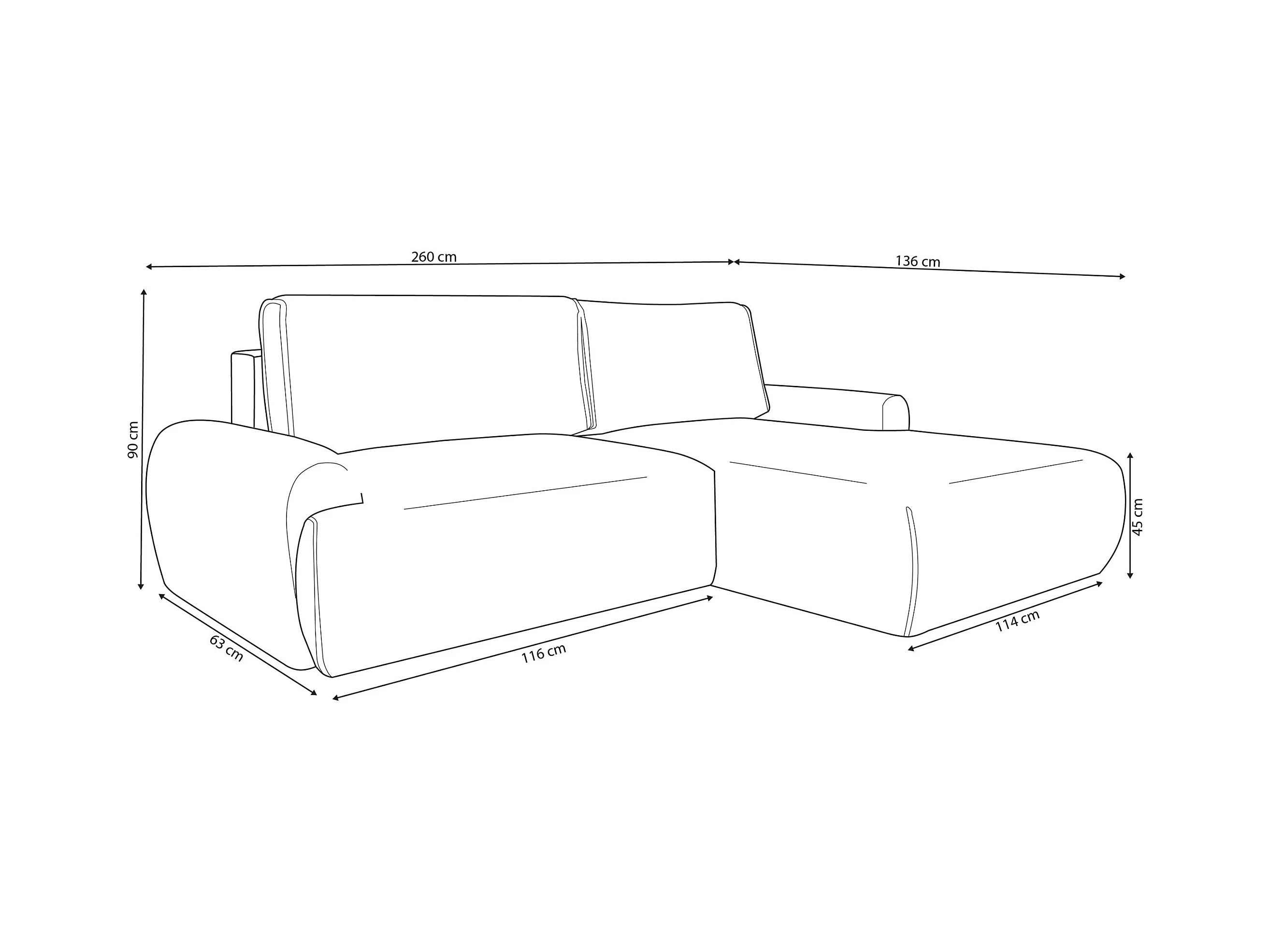 Canapé d'angle Dream avec fonction couchage et coffre de rangement, couleur : noir, tissu bouclé, pouf à droite