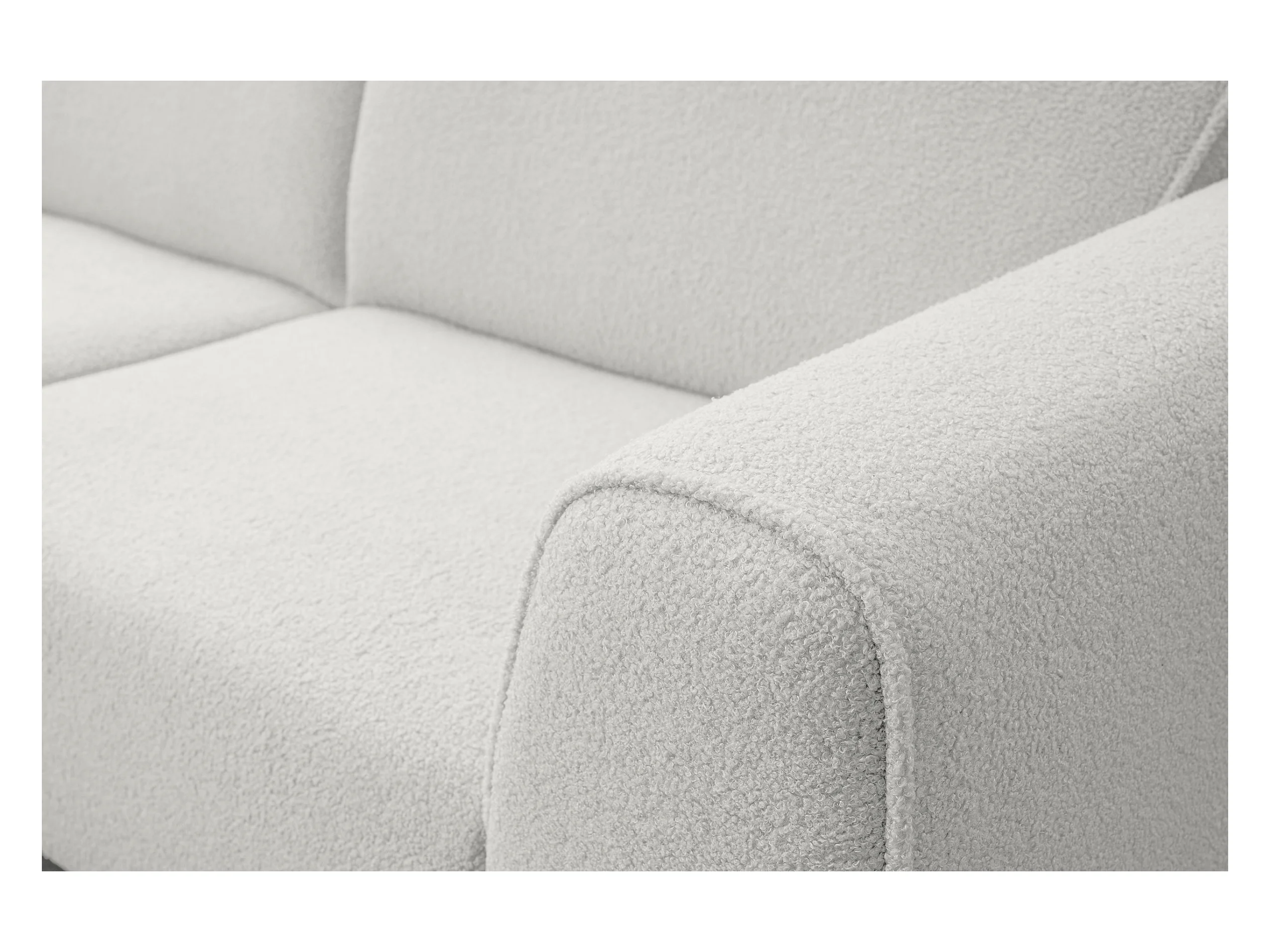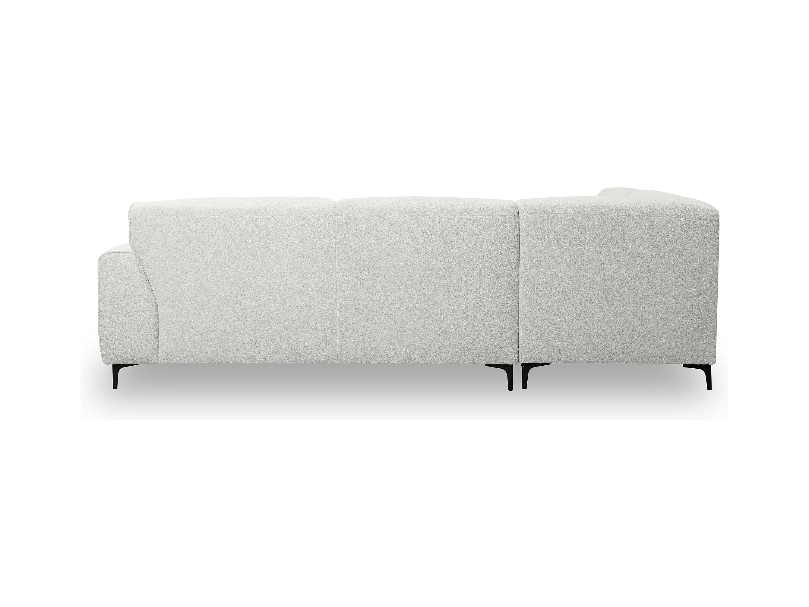Canapé d'angle Mula, couleur Coach : blanc, tissu bouclé, pouf à droite