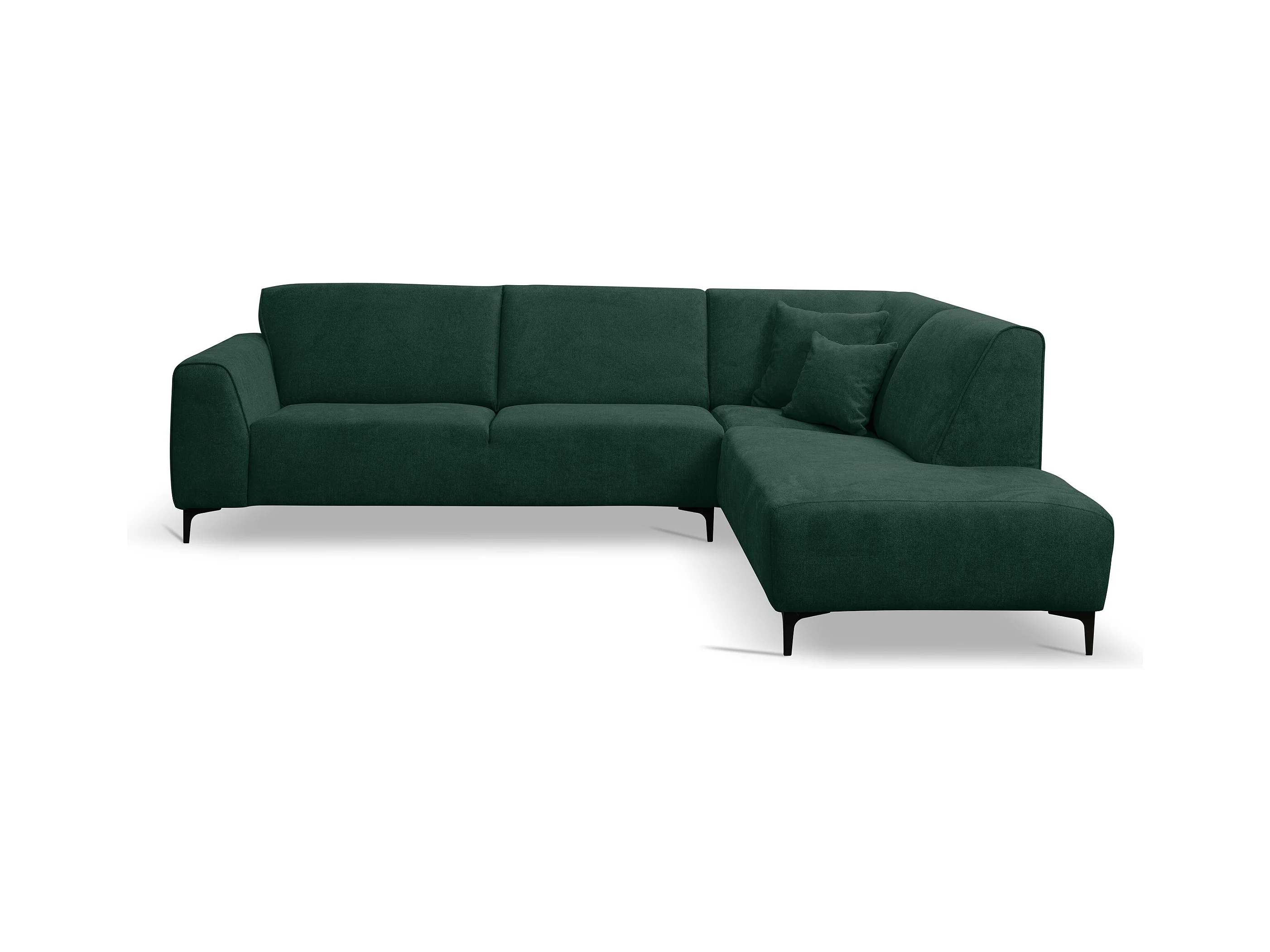 Canapé d'angle Aspen, couleur Coach : vert, tissu velours, pouf à gauche
