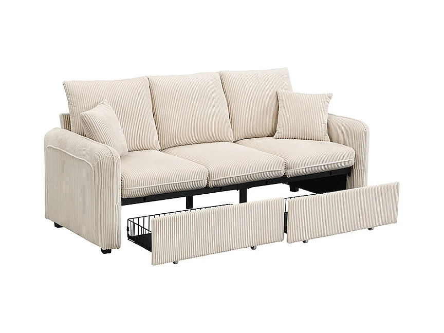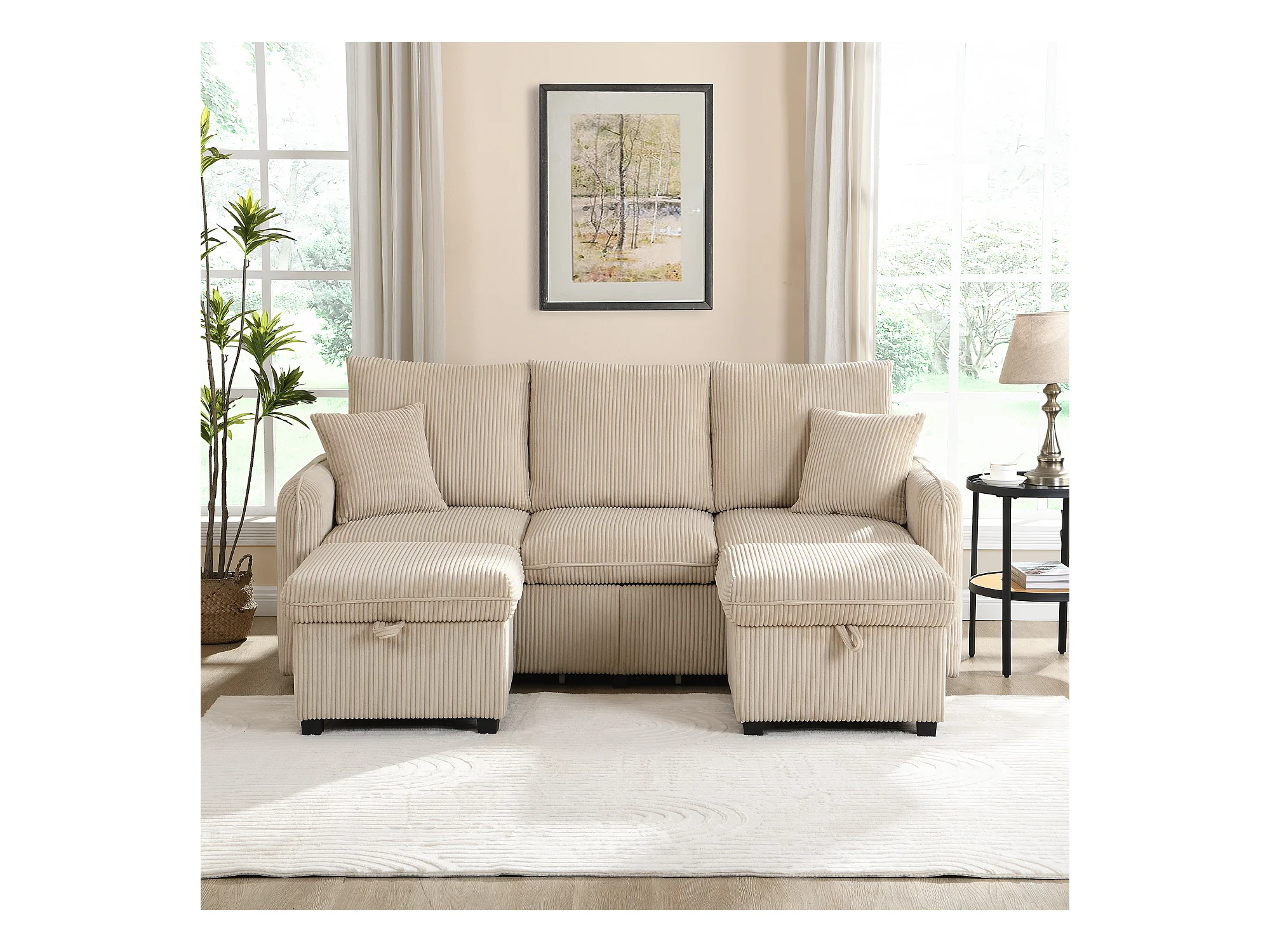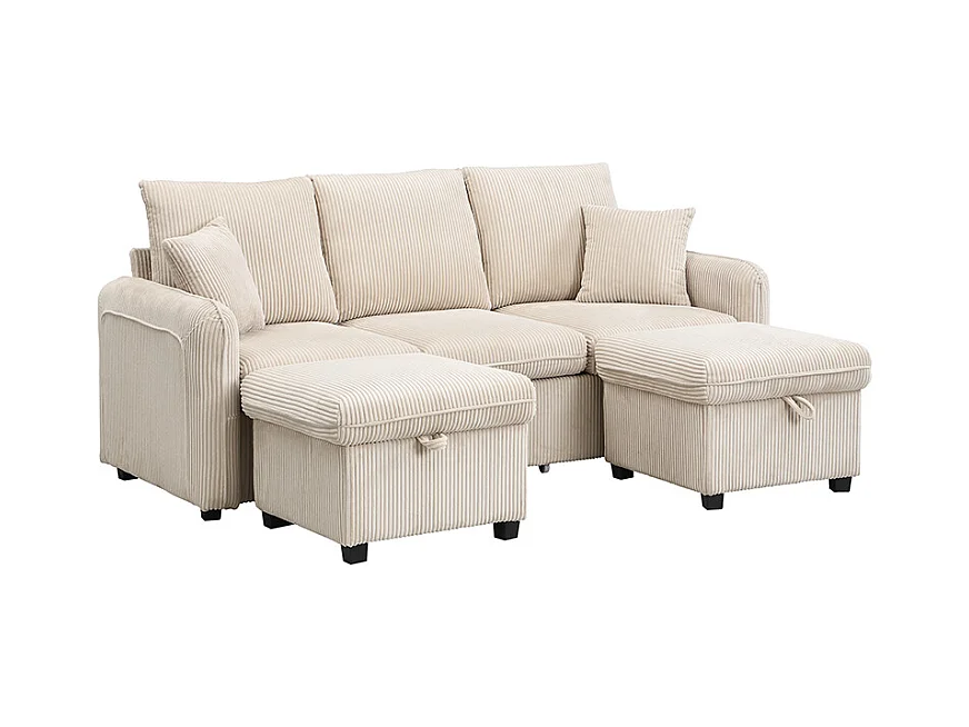 Canapé d'angle multifonction en U - 3 places - avec fonction rangement - avec tiroirs - beige