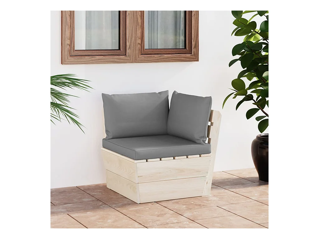 Canapé d'angle de jardin avec coussins gris Bois de pin massif FR56138