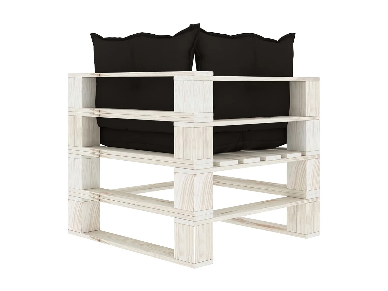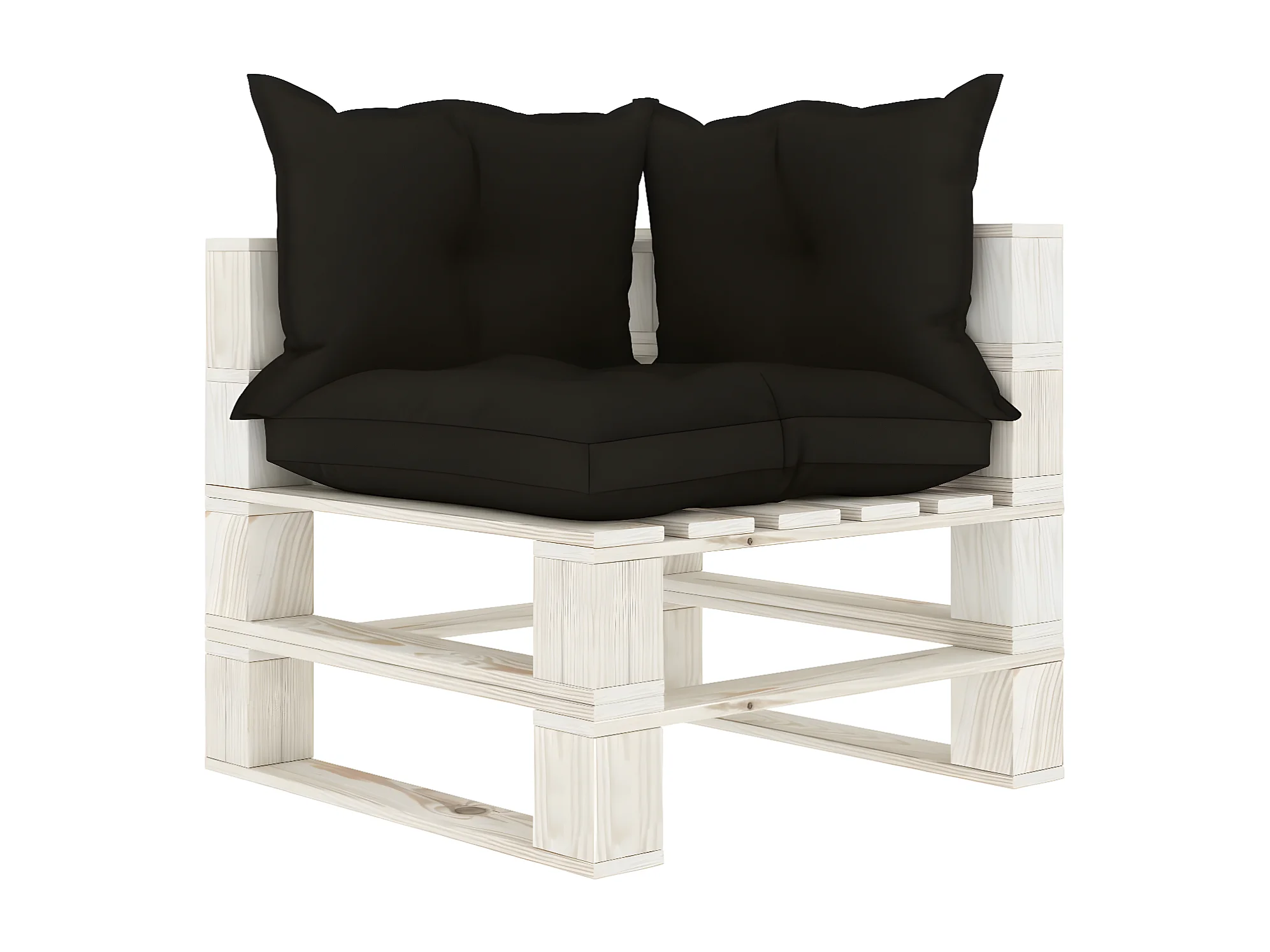 Canapé d'angle palette de jardin avec coussins noir Bois