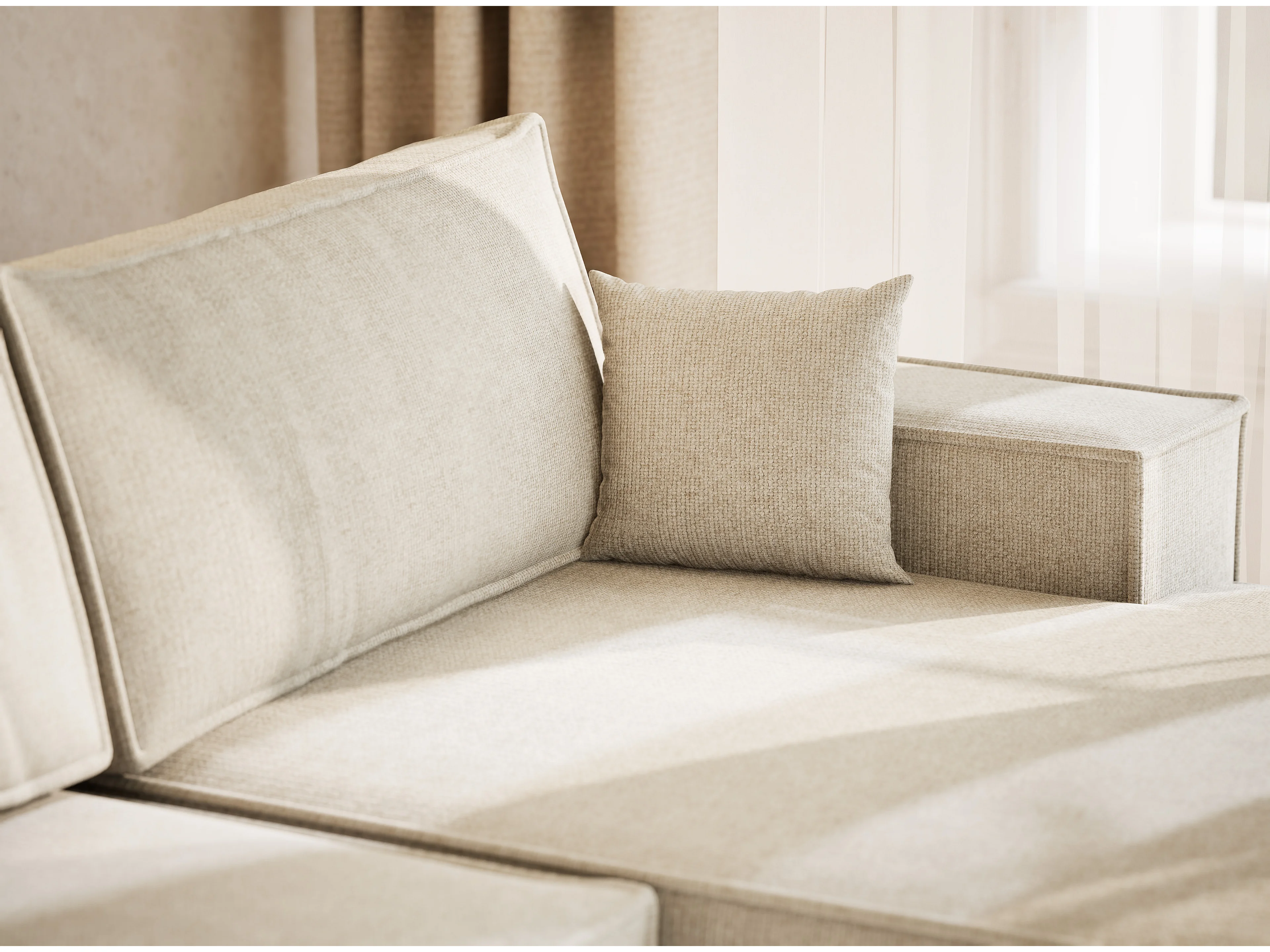Canapé d'angle panoramique avec fonction lit en tissu chenille creme KYOTO