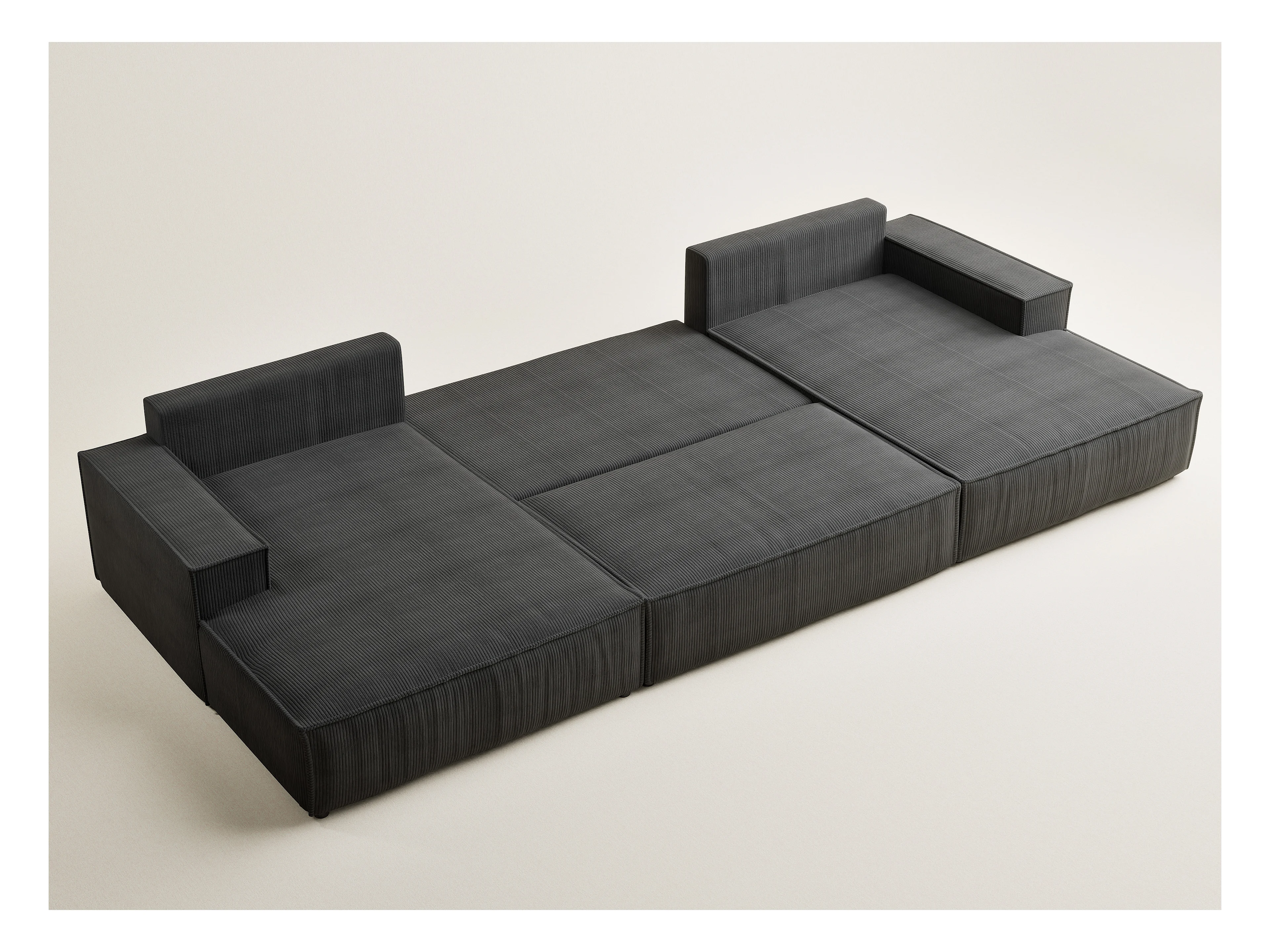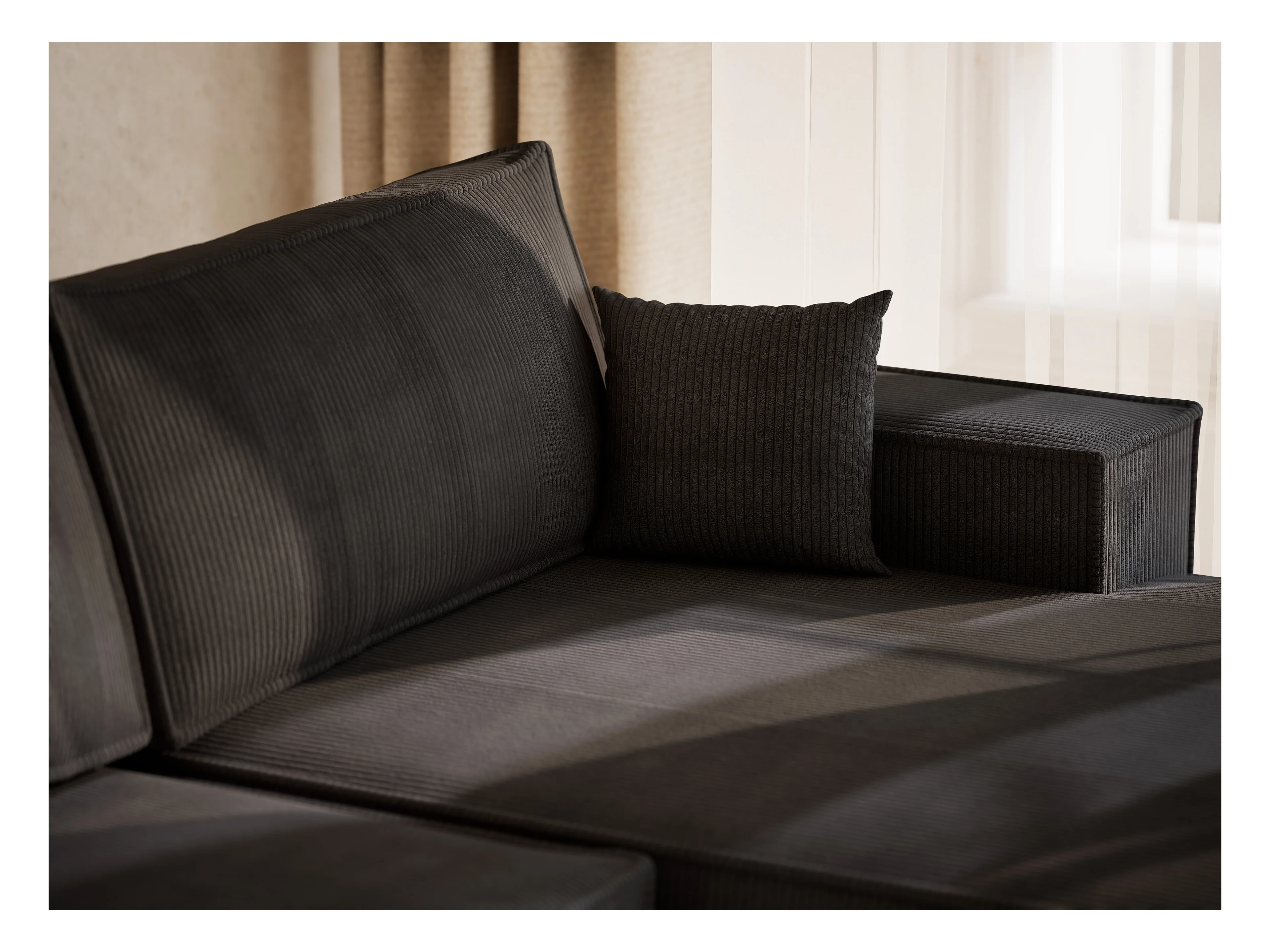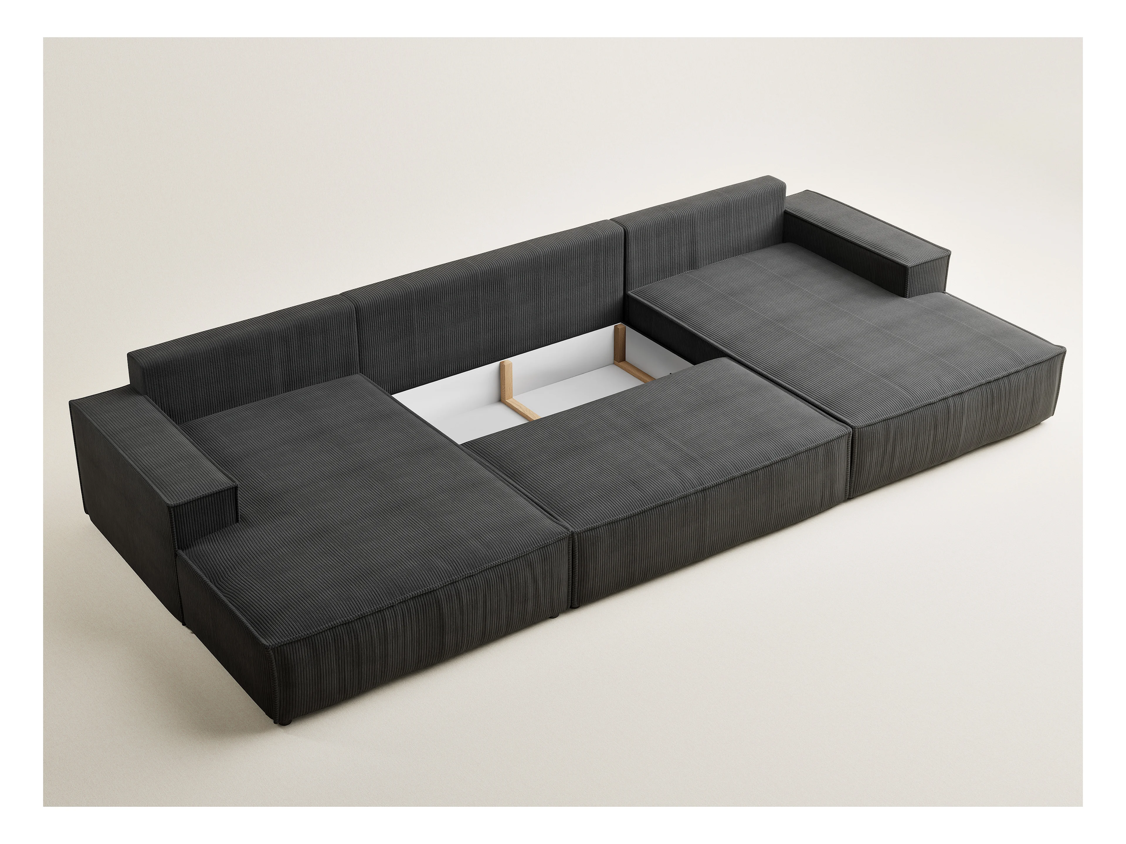 Canapé d'angle panoramique avec fonction lit en velours graphite KYOTO