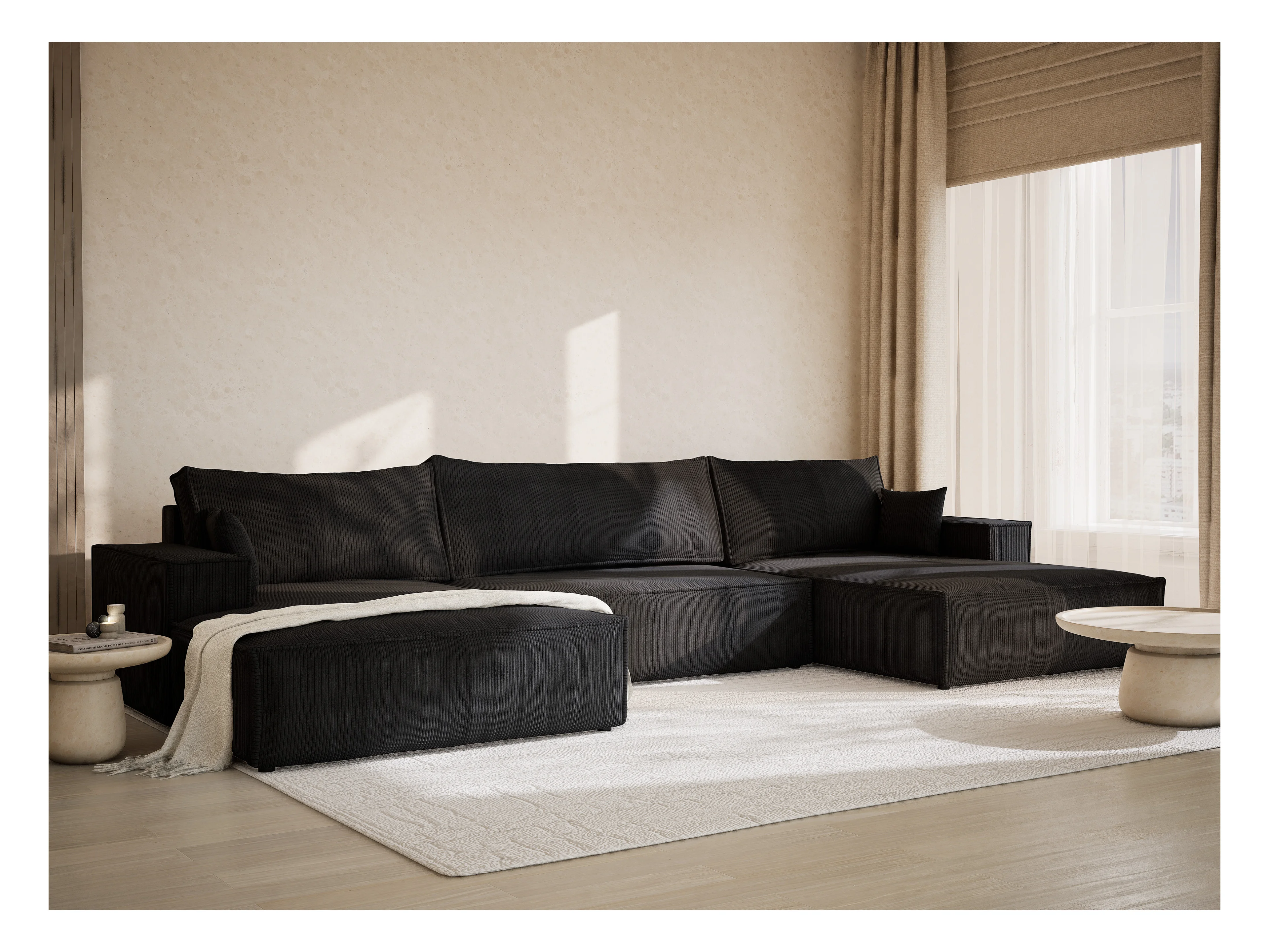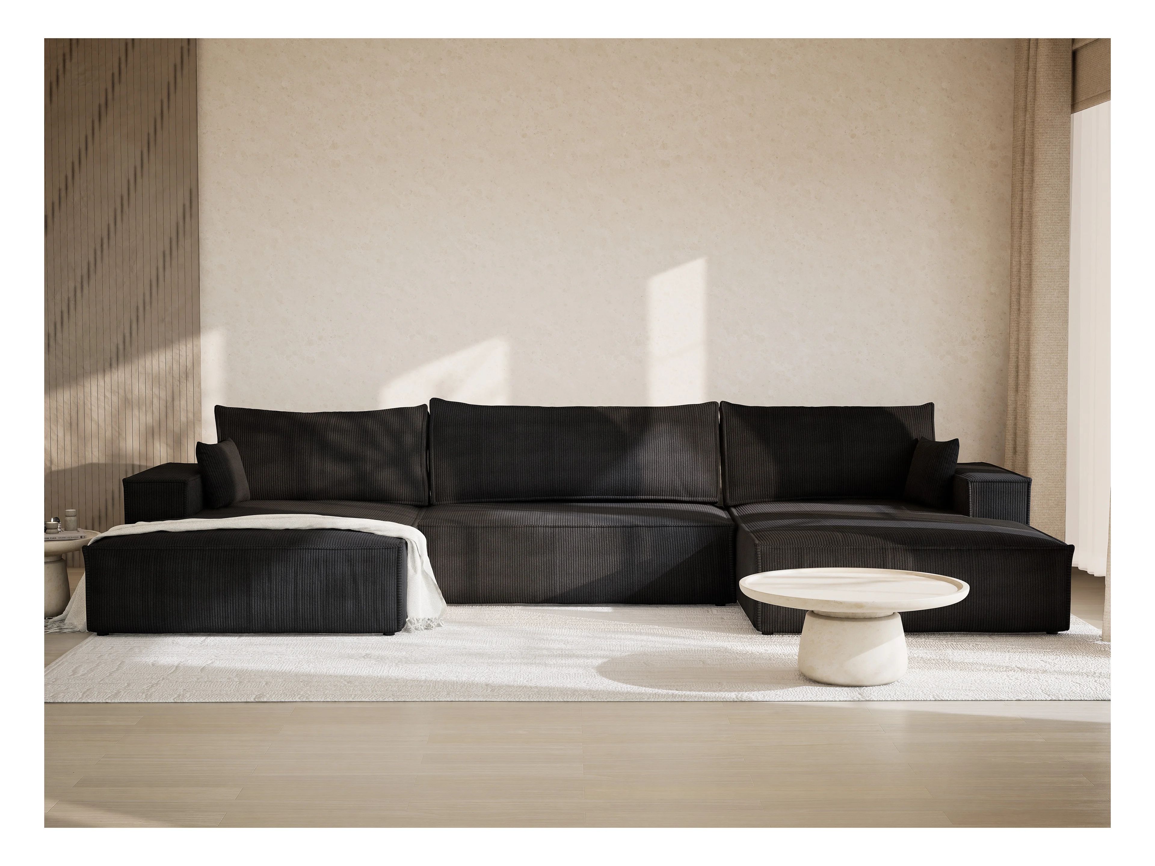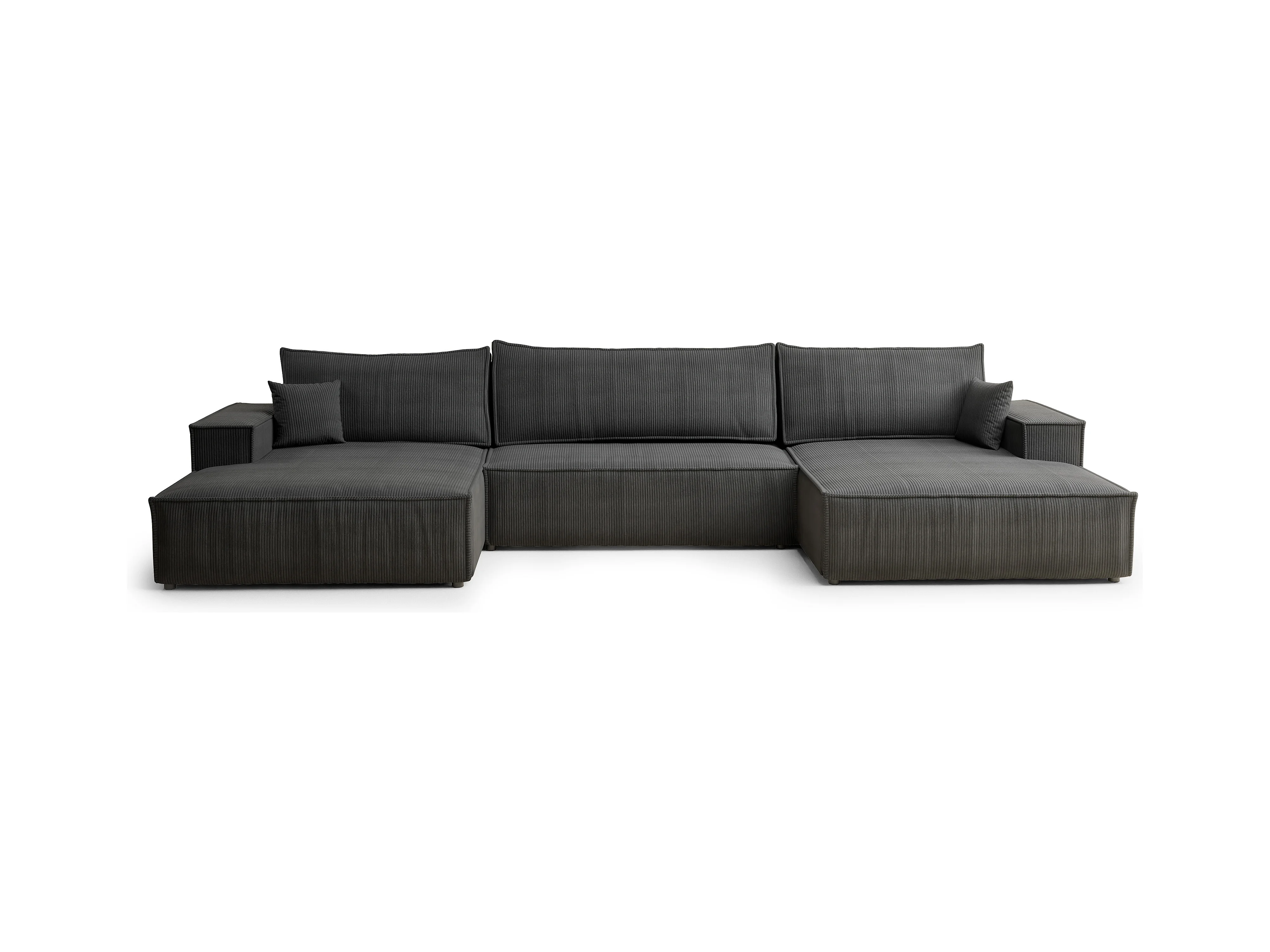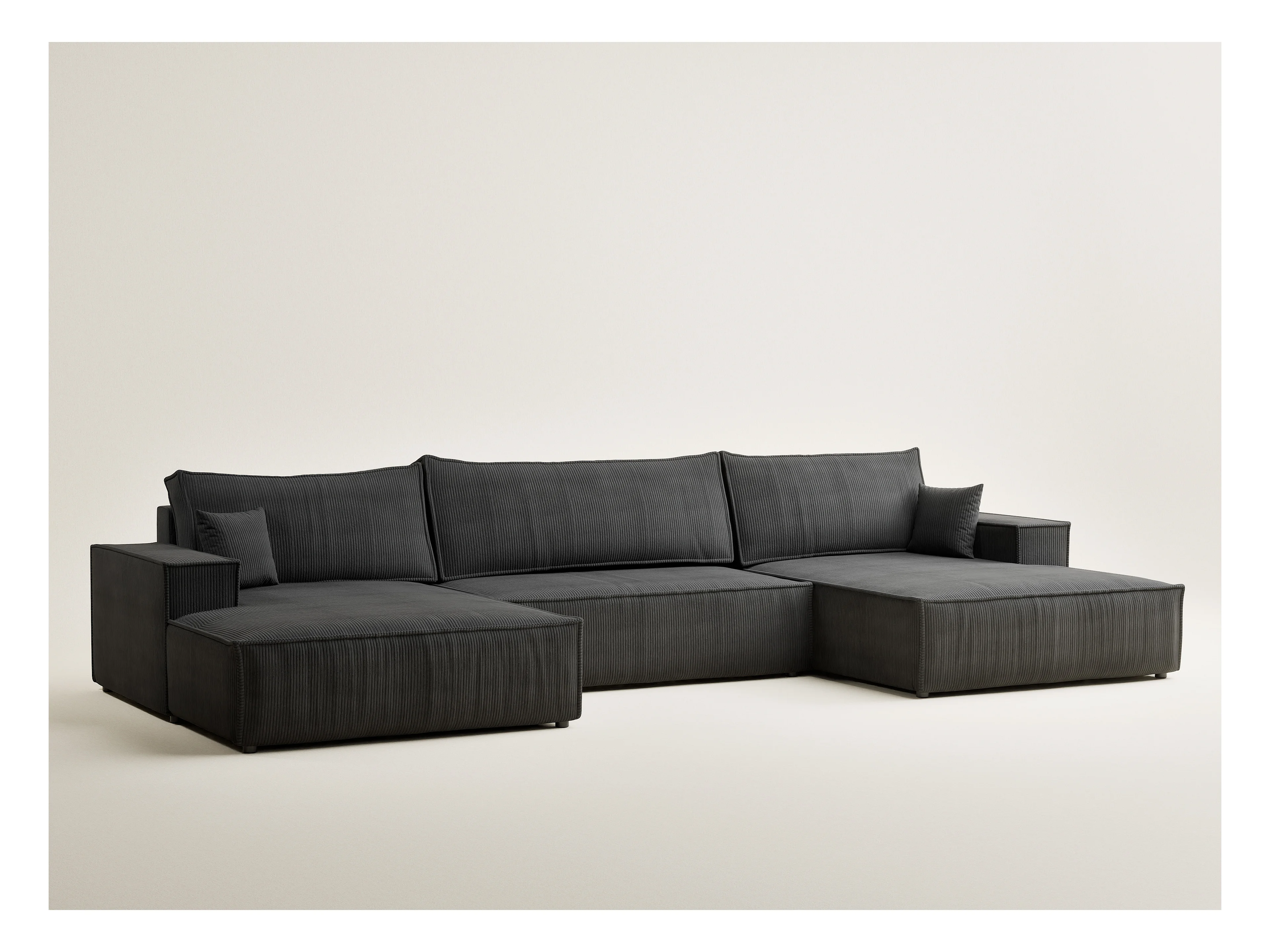 Canapé d'angle panoramique avec fonction lit en velours graphite KYOTO