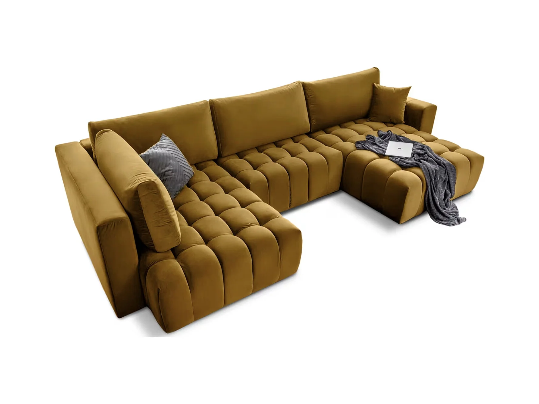 Canapé d'angle gauche convertible moderne velours jaune moutarde Willace 302cm