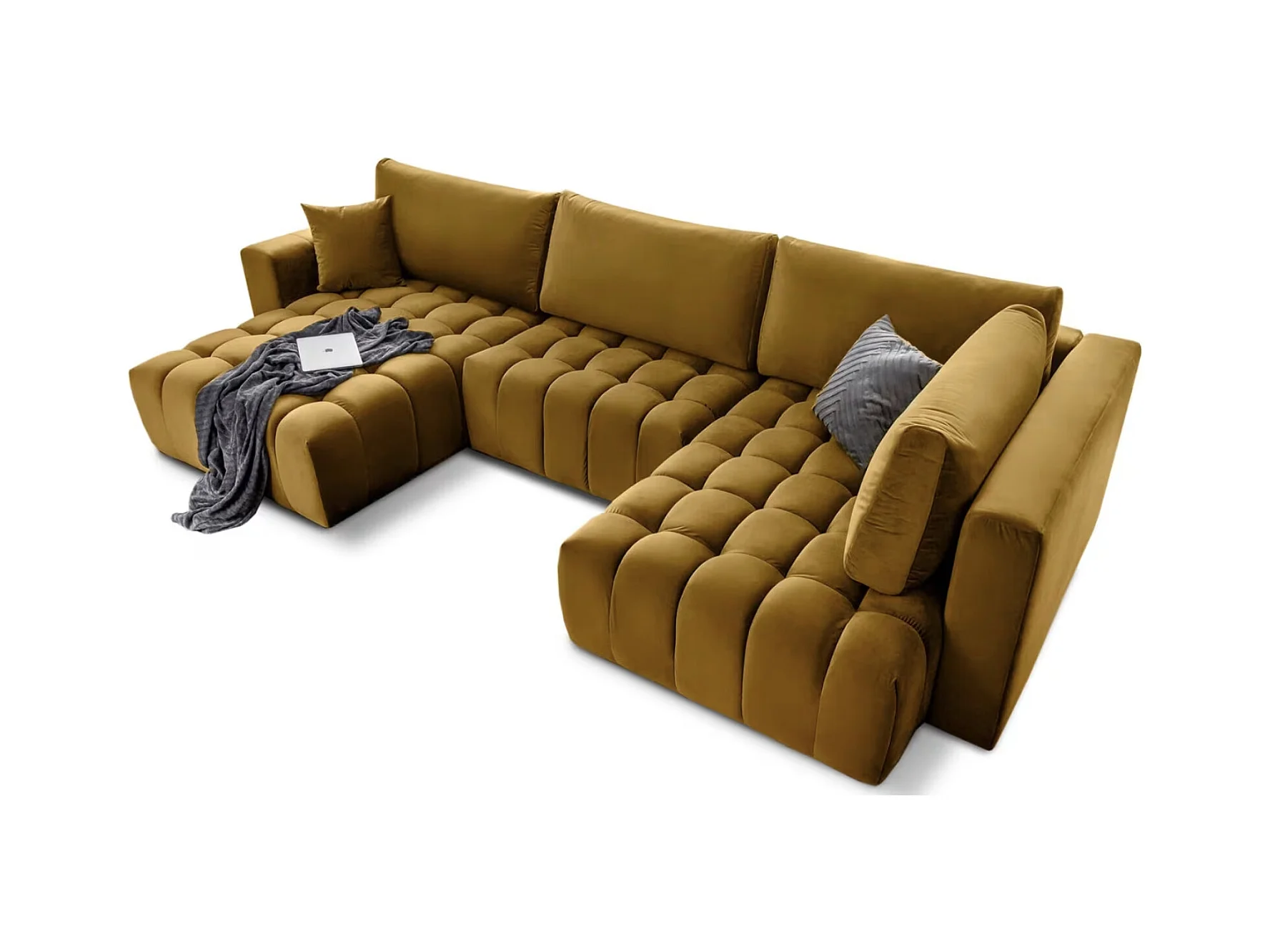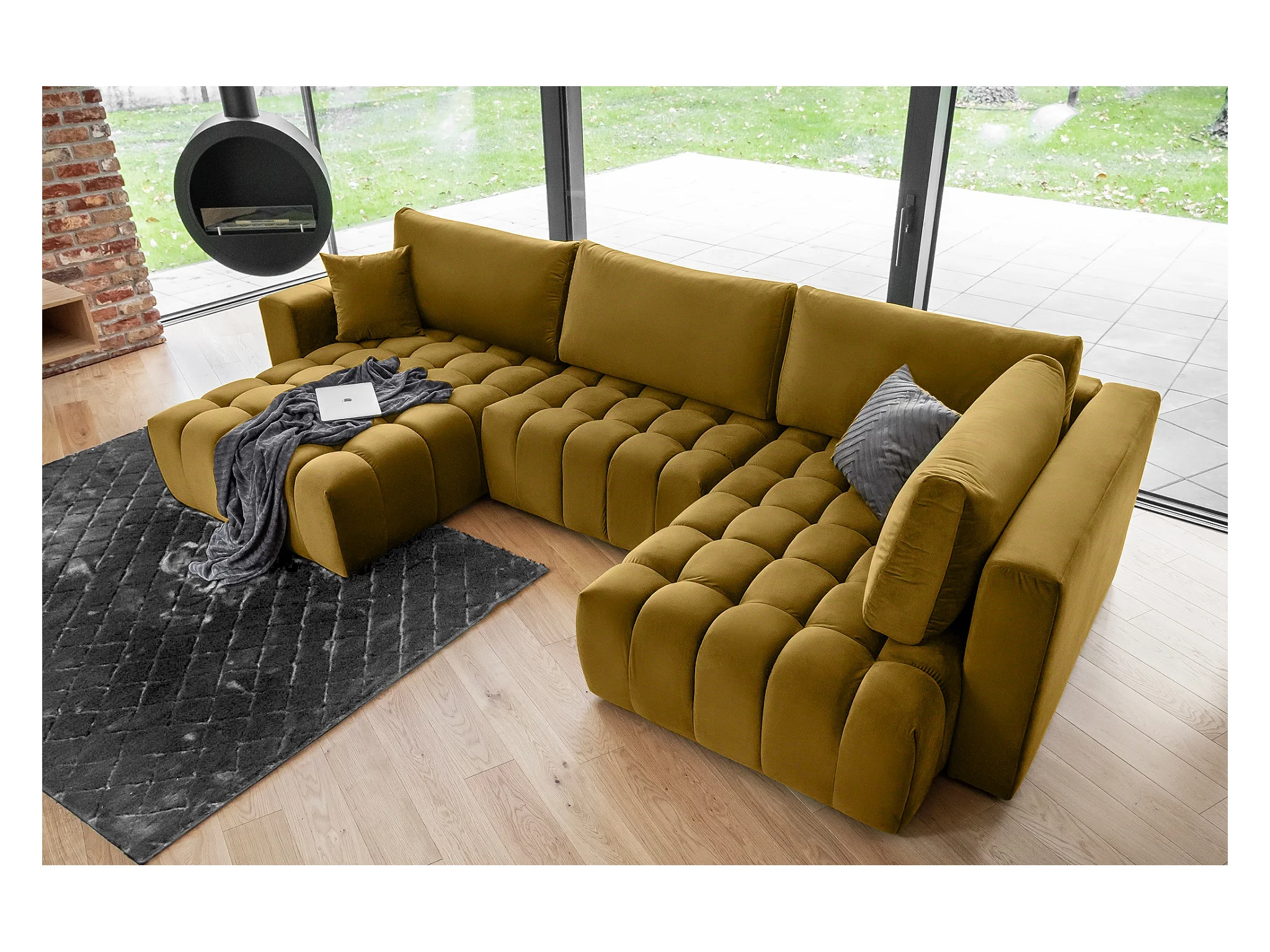 Canapé d'angle gauche convertible moderne velours jaune moutarde Willace 302cm