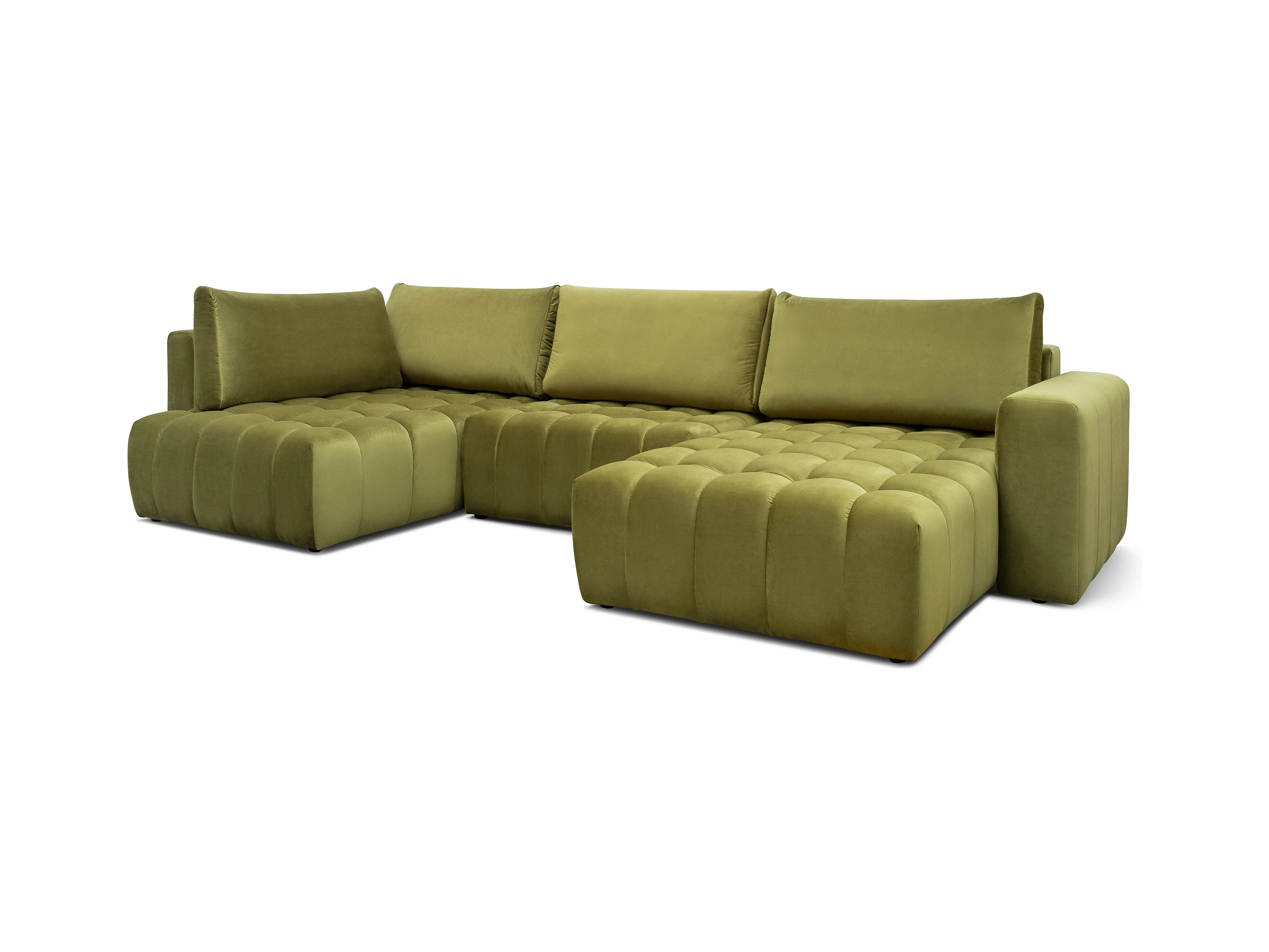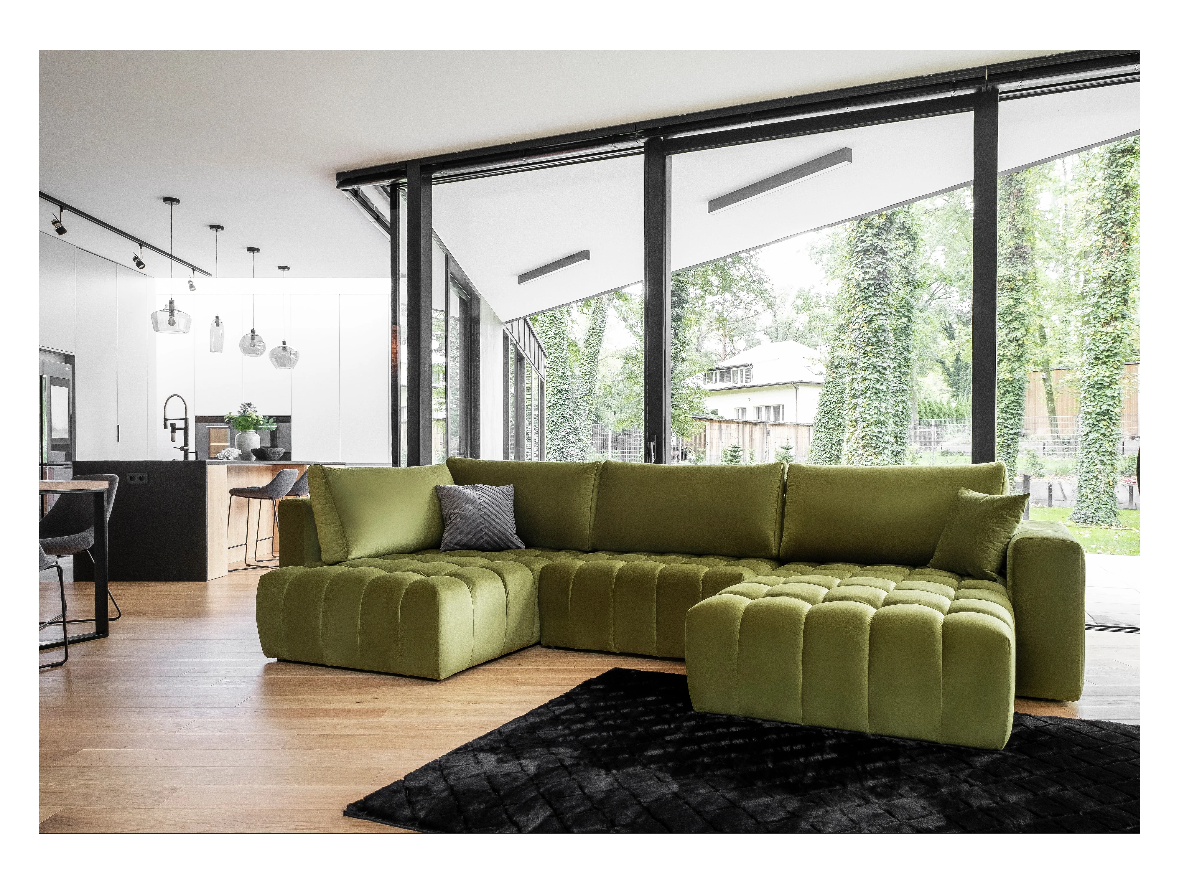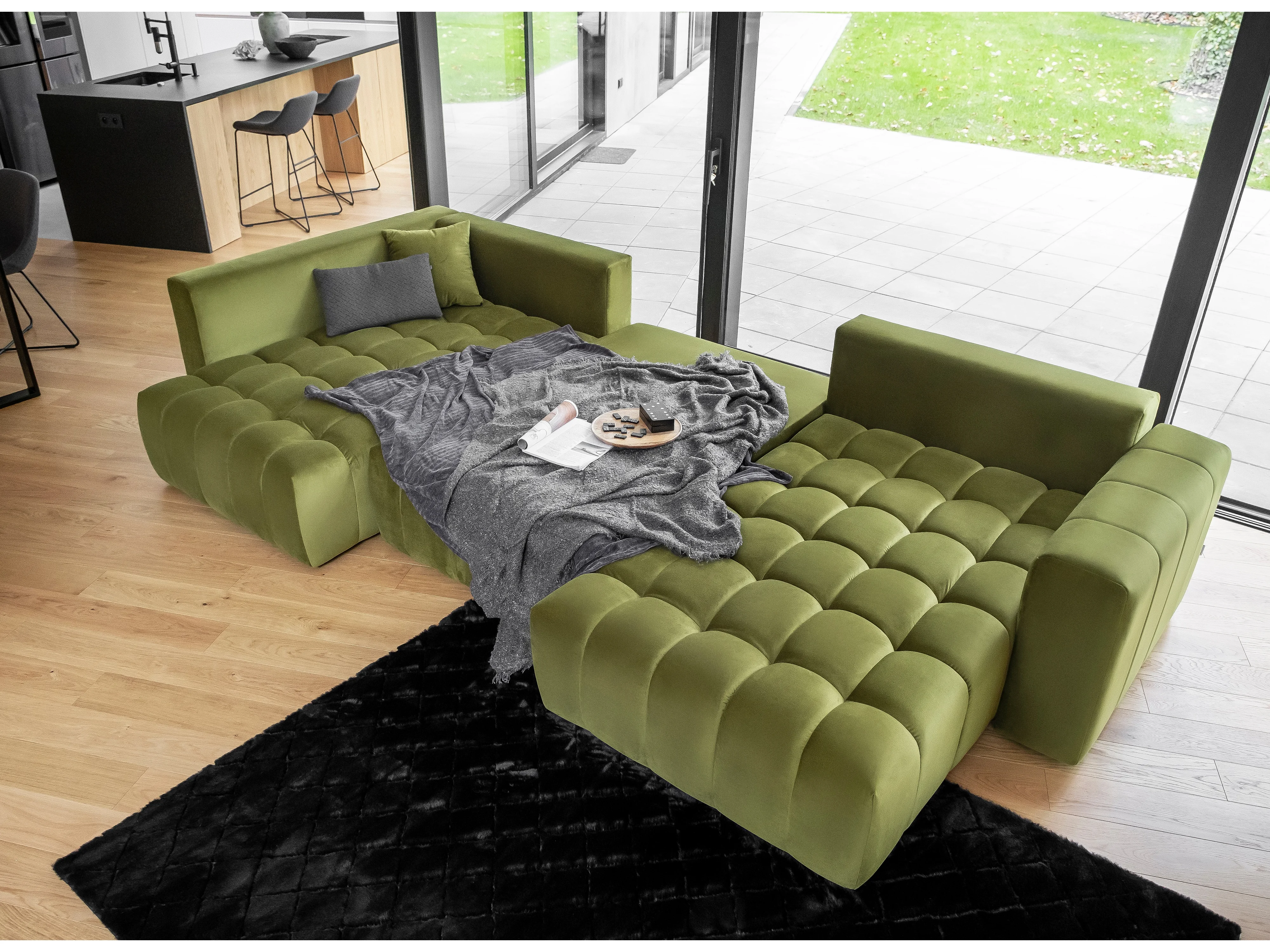 Canapé convertible angle gauche velours jaune Savary 280cm
