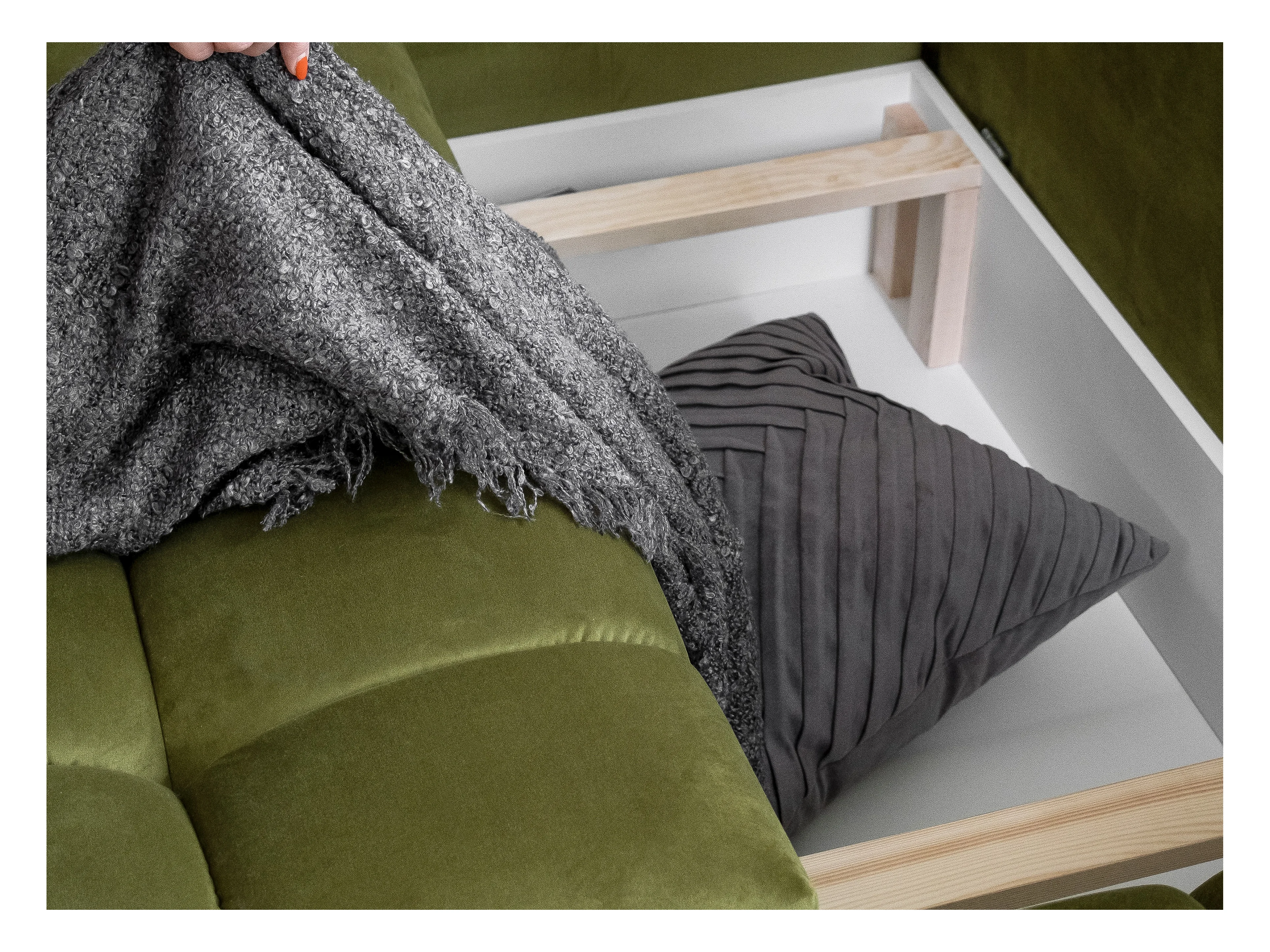 Canapé panoramique BLOOM velours capitonné - Rangement et convertible-Gris foncé-Coffre de rangement à gauche