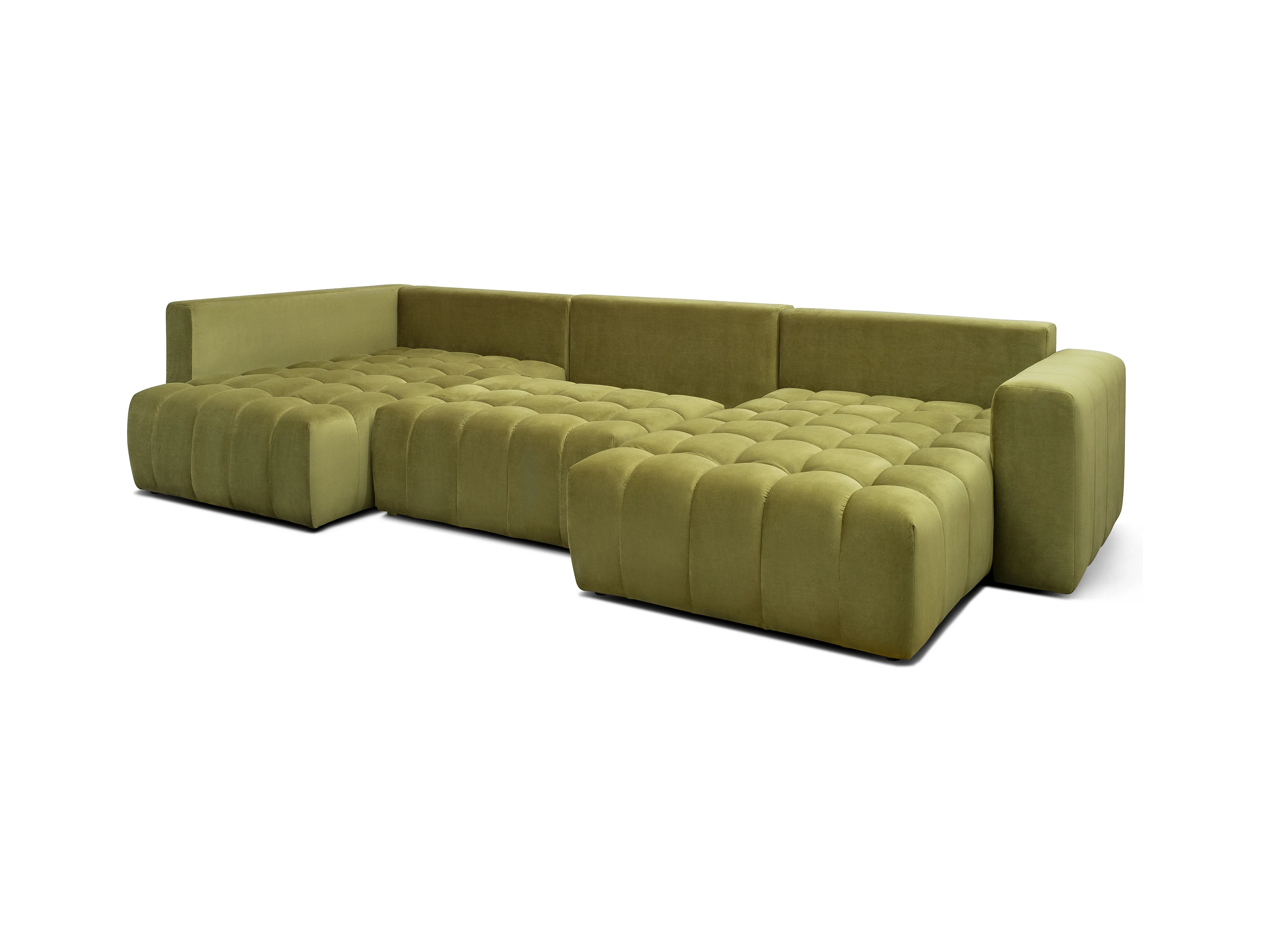 Canapé d'angle panoramique BOSTON en velours capitonné-Jaune curry-Méridienne A droite
