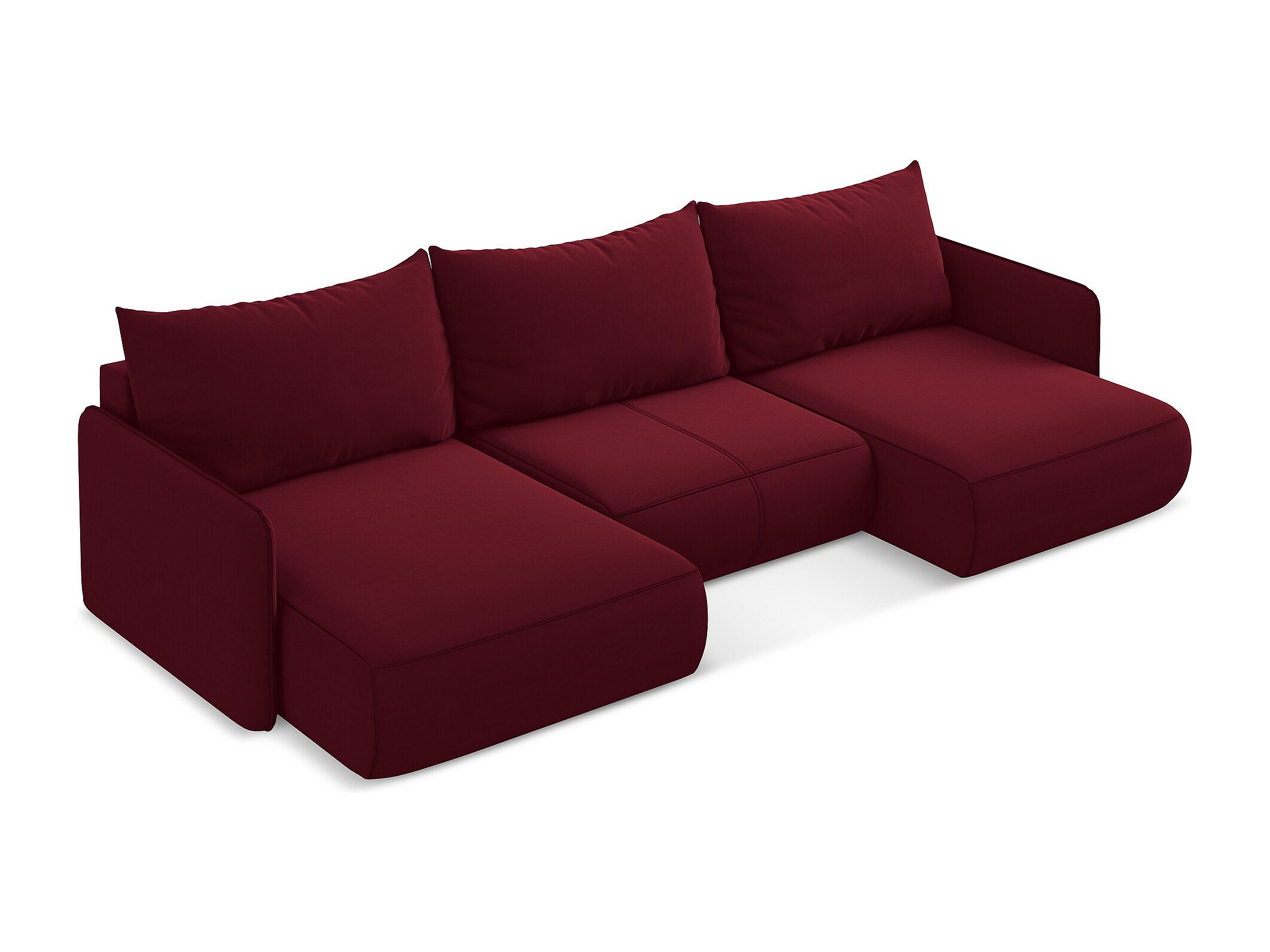 Canapé d'angle panoramique convertible en velours - bourgogne - KAPUA