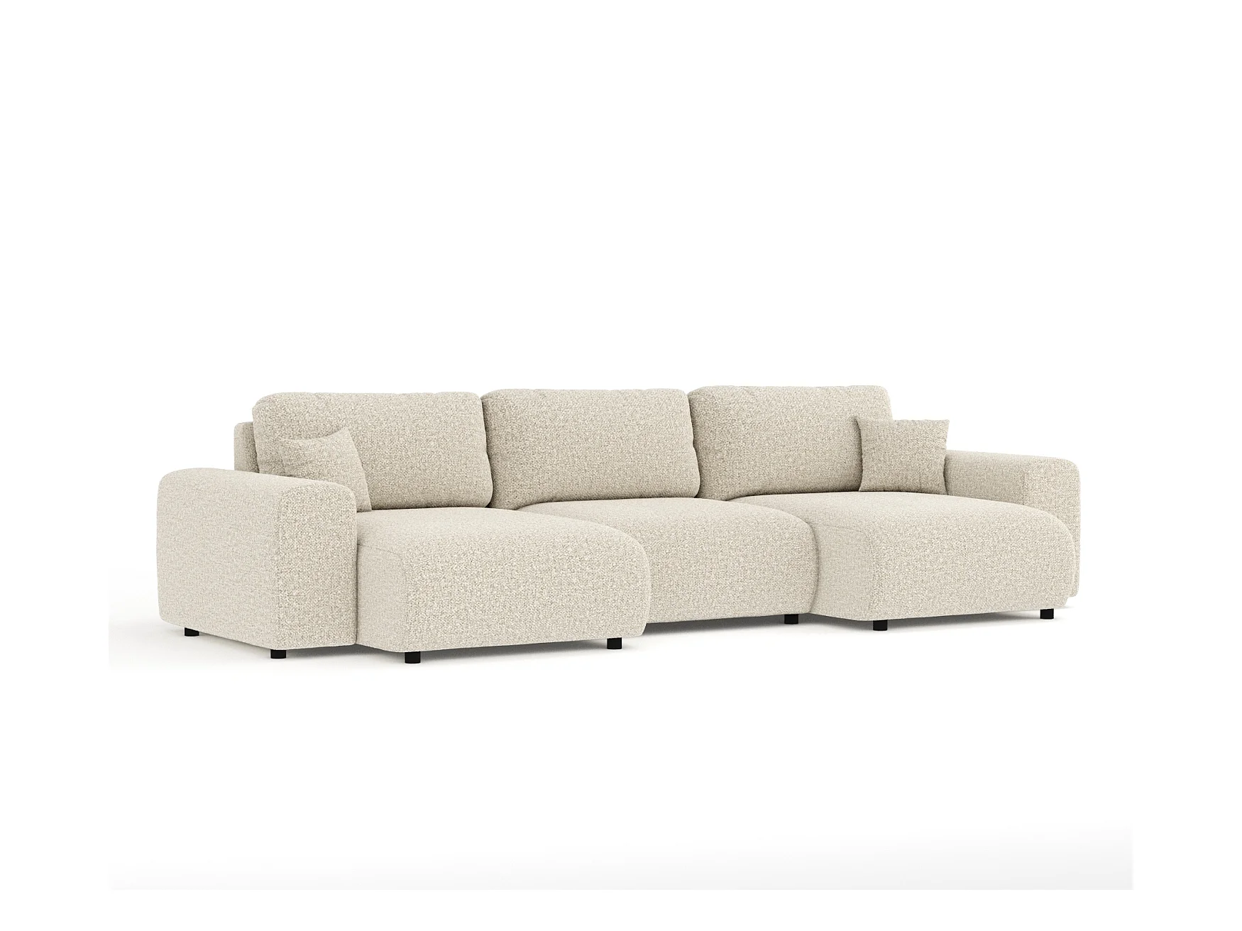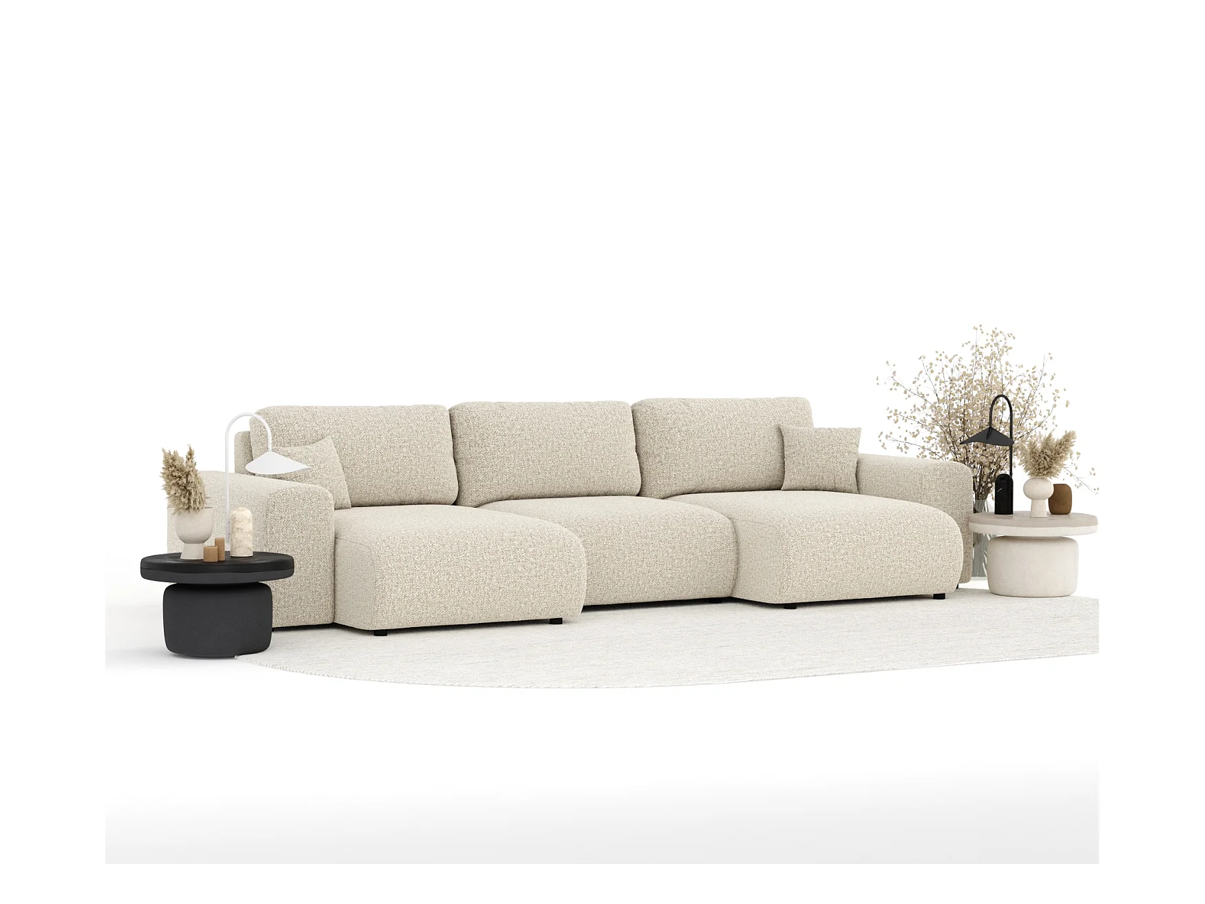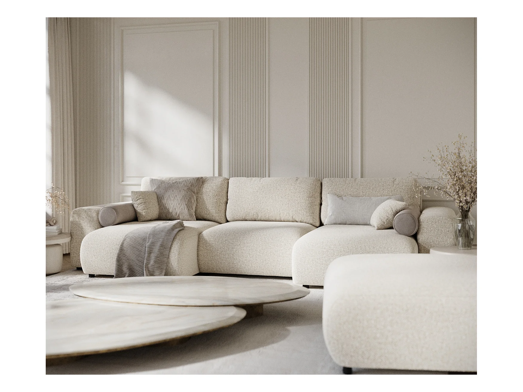 Canapé d'angle panoramique en tissu bouclette Zanzibar - 6 places - beige