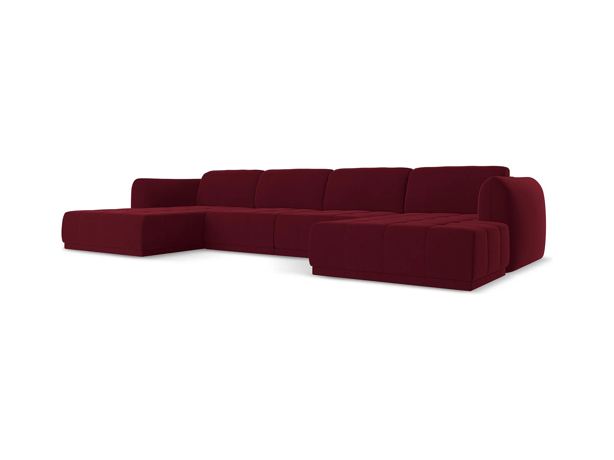 Canapé d'angle panoramique en velours - bourgogne - HOKU