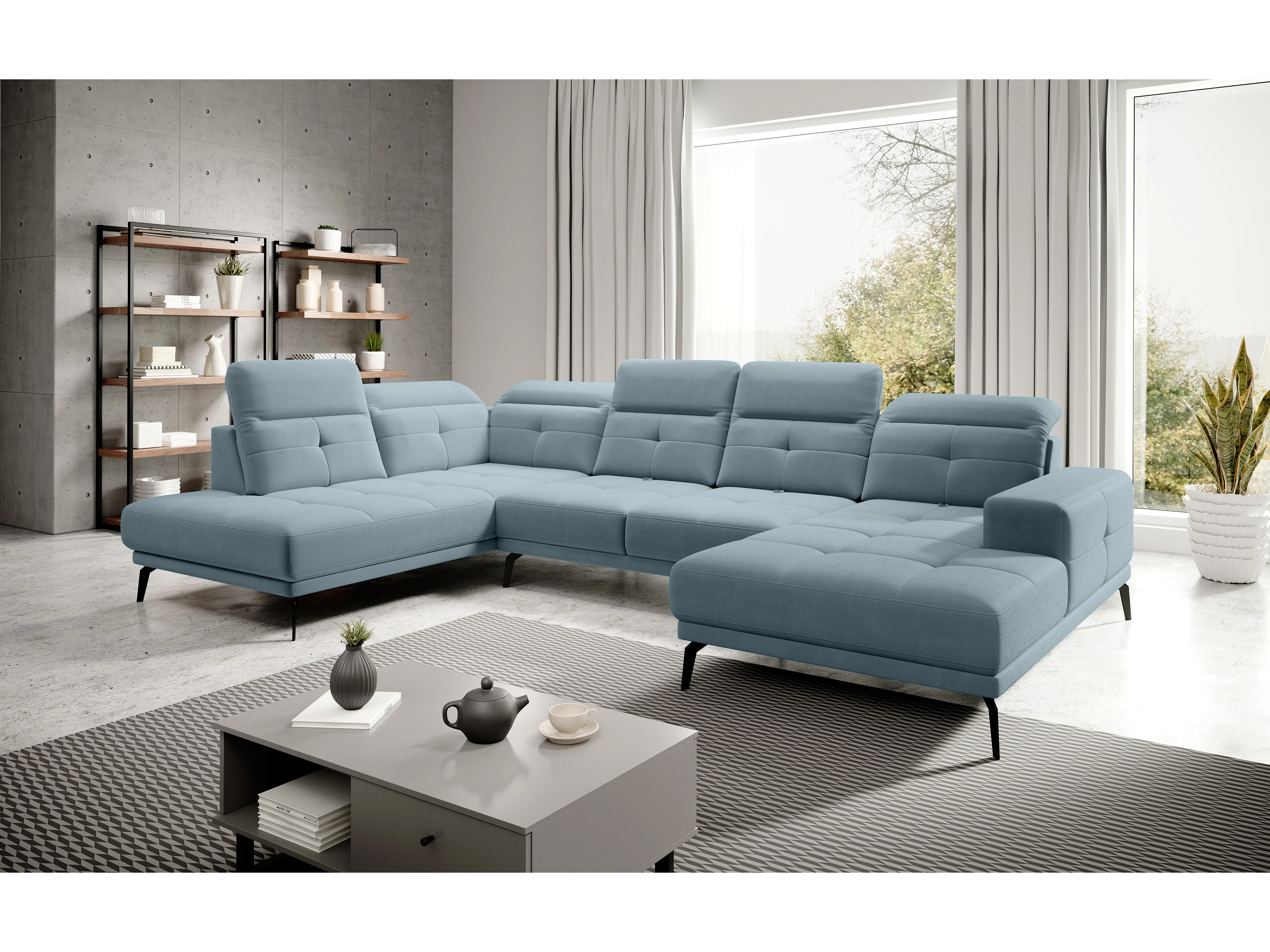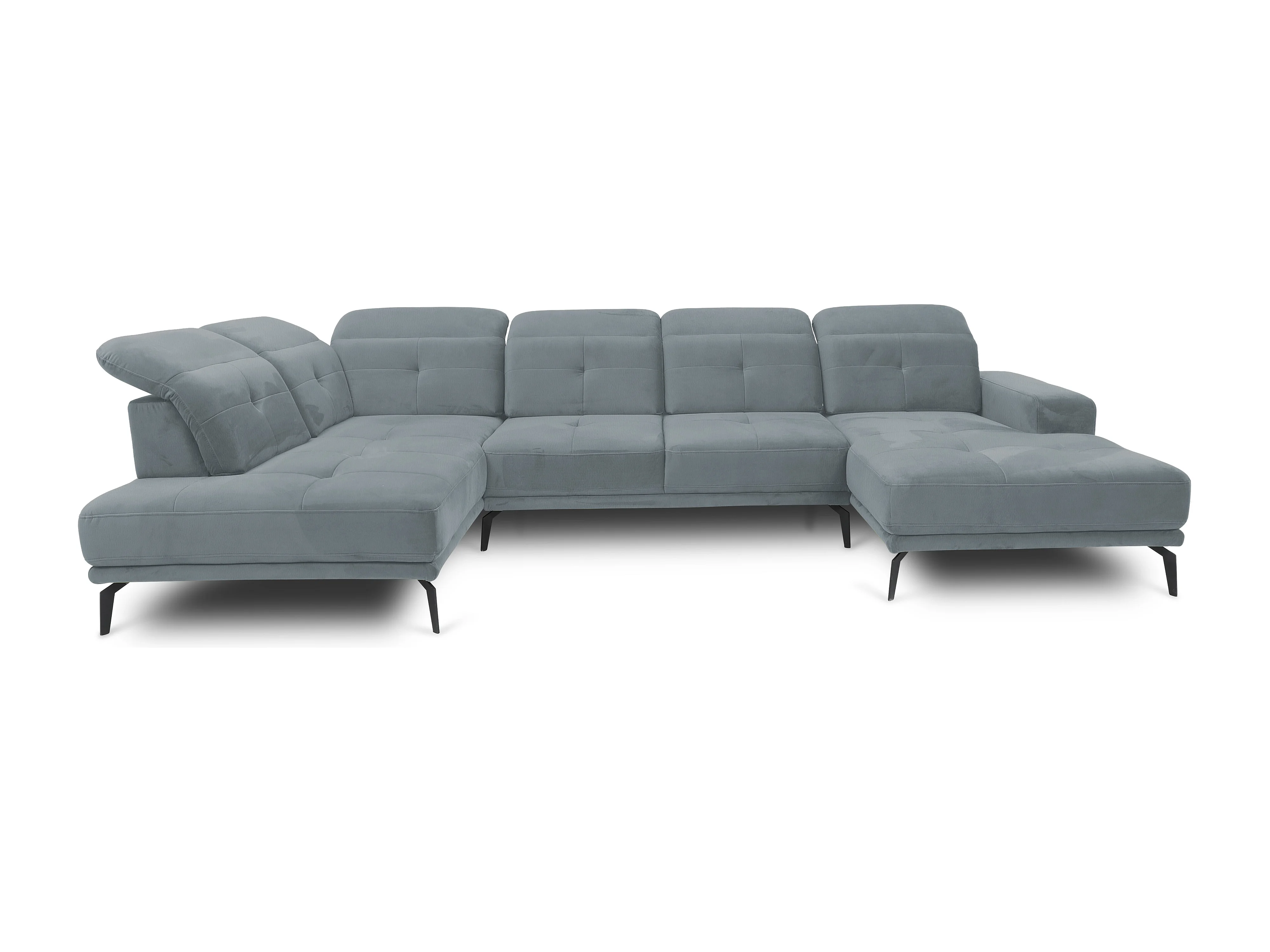 Canapé d’angle panoramique VERSUS tissu – Appuie-têtes réglables-Bleu ardoise-angle gauche