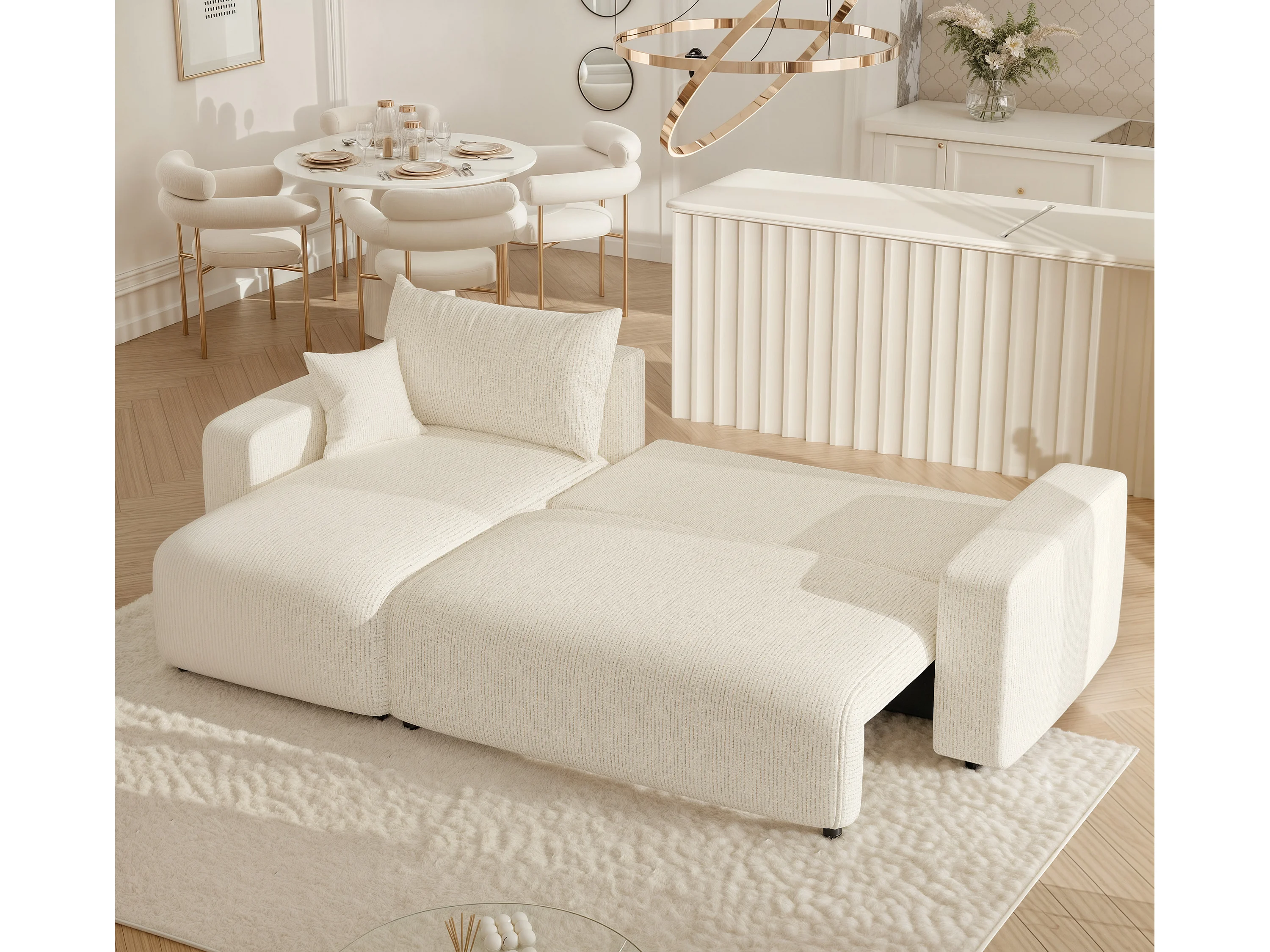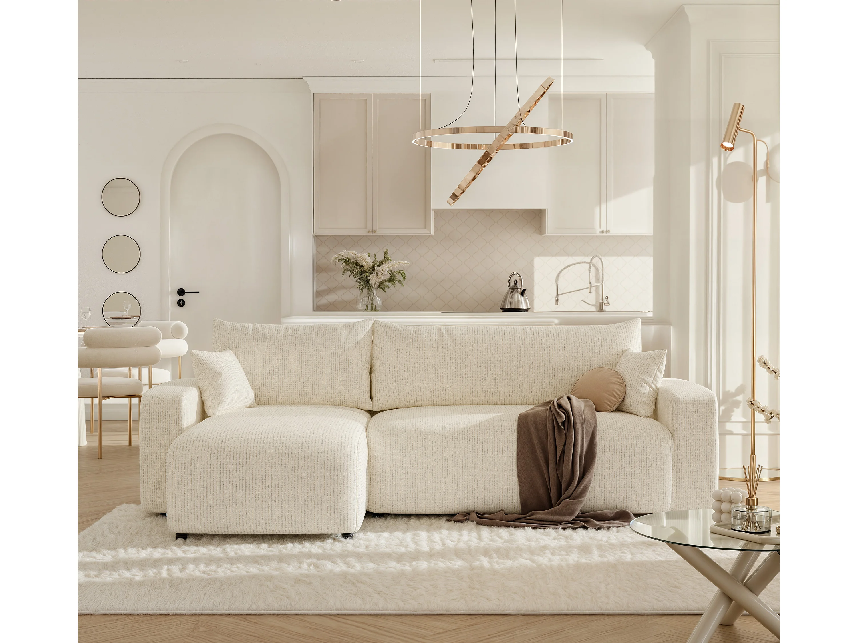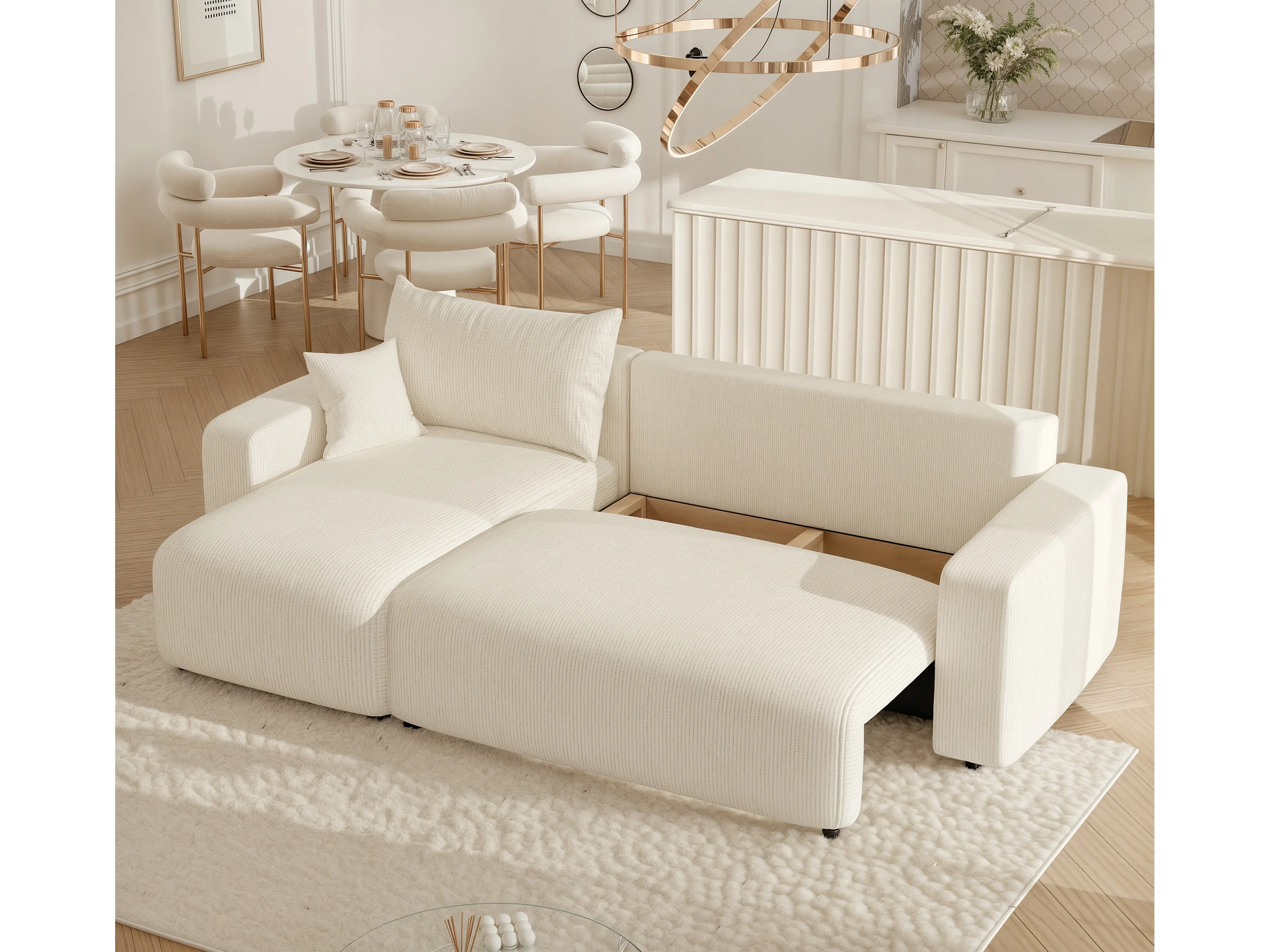 Canapé d'angle Piano Convertible en tissu Beige