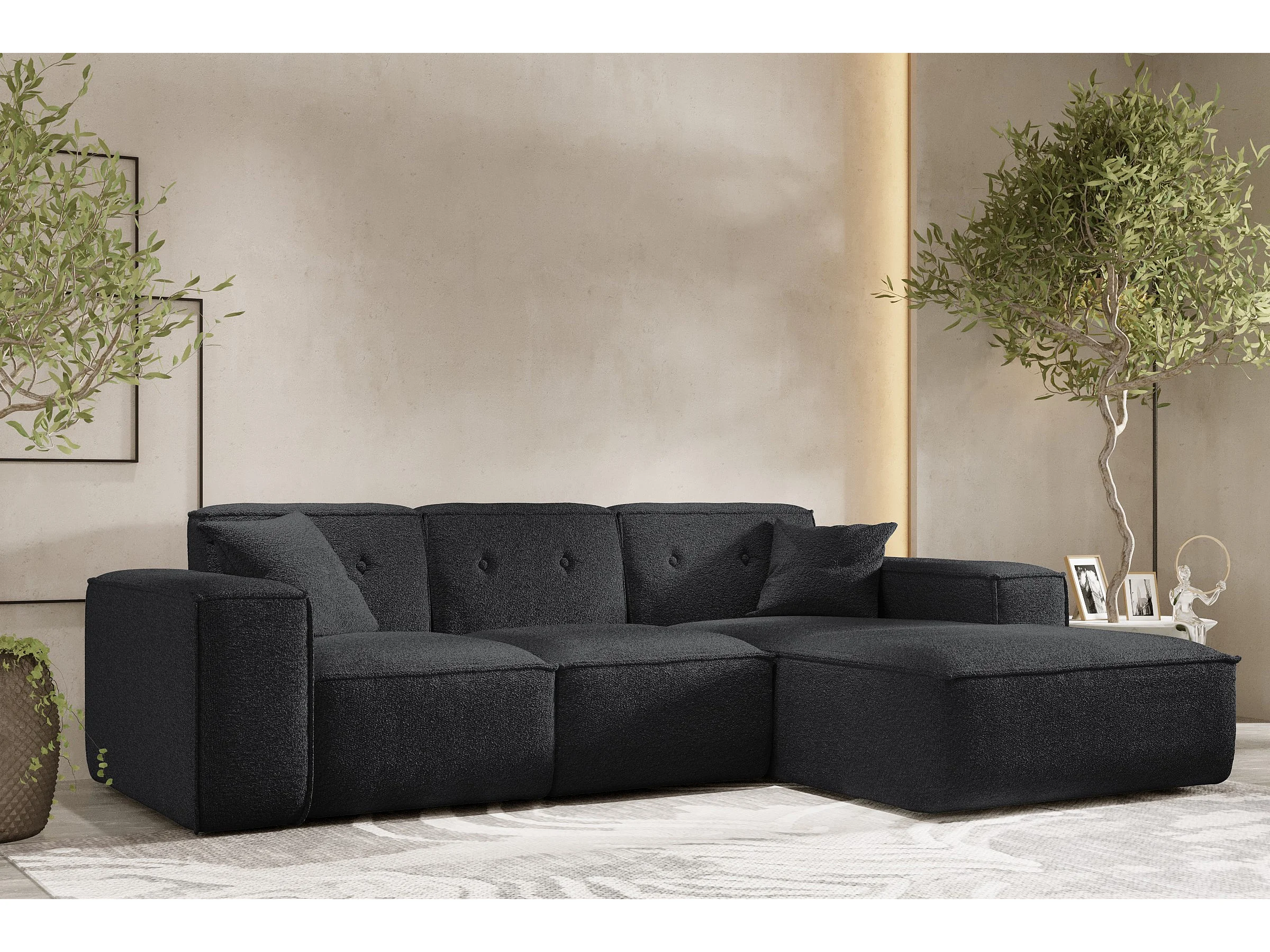 Canapé d'angle en L PULA, tissu Perfect Harmony, noir, droit