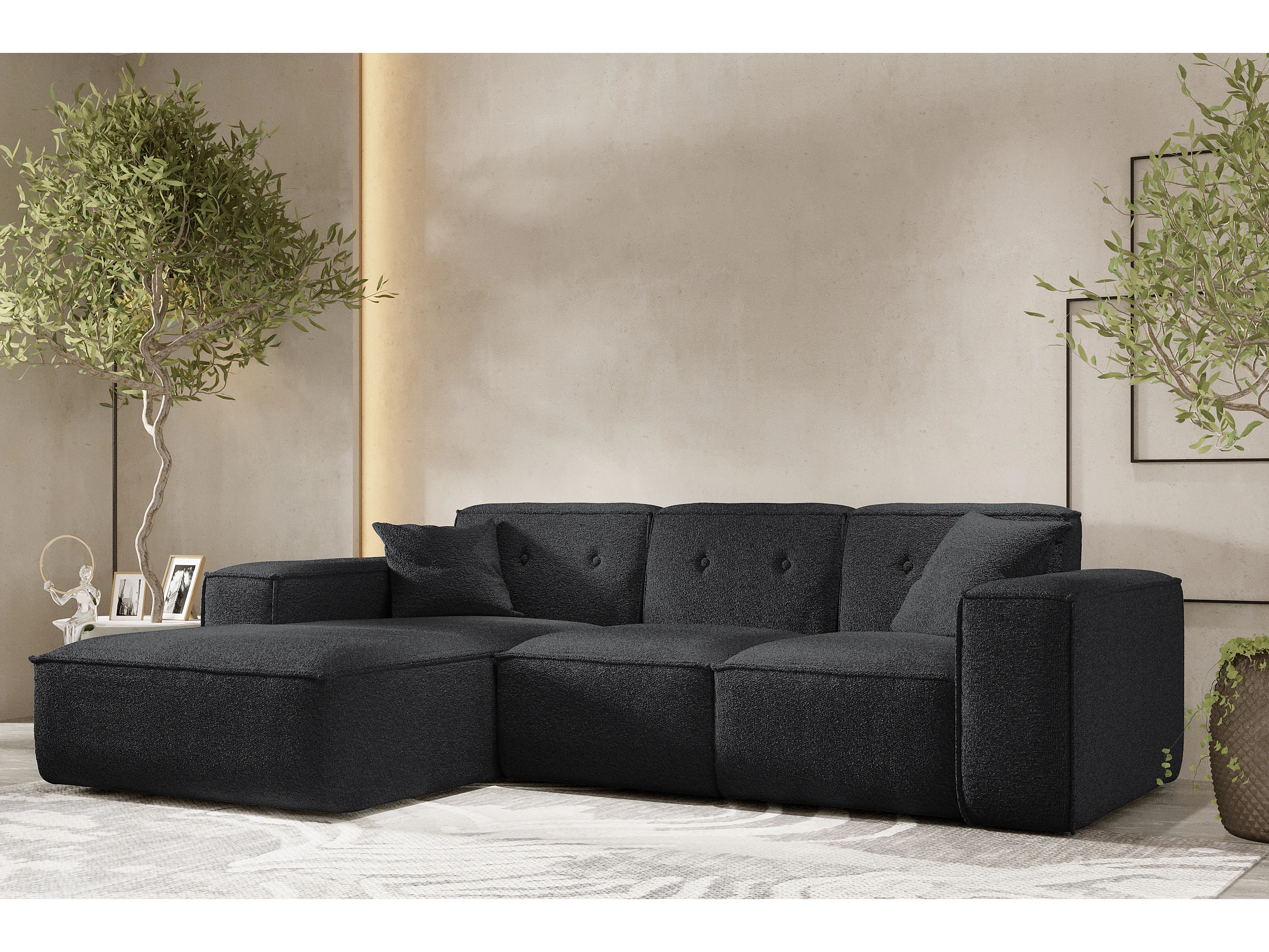 Canapé d'angle 3 places modulaire gauche en tissu chenille - noir - OMAO