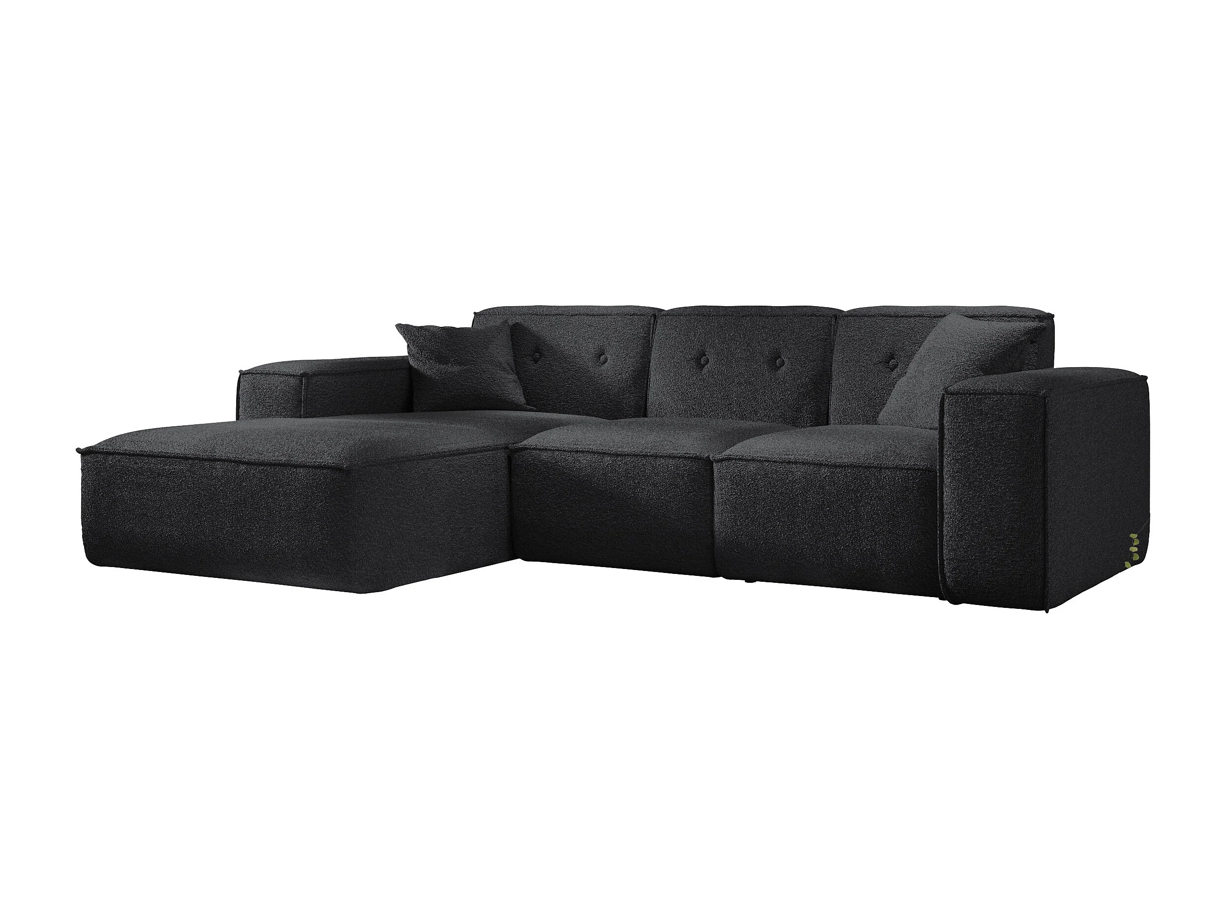 Canapé d'angle en L PULA, tissu Perfect Harmony, noir, gauche