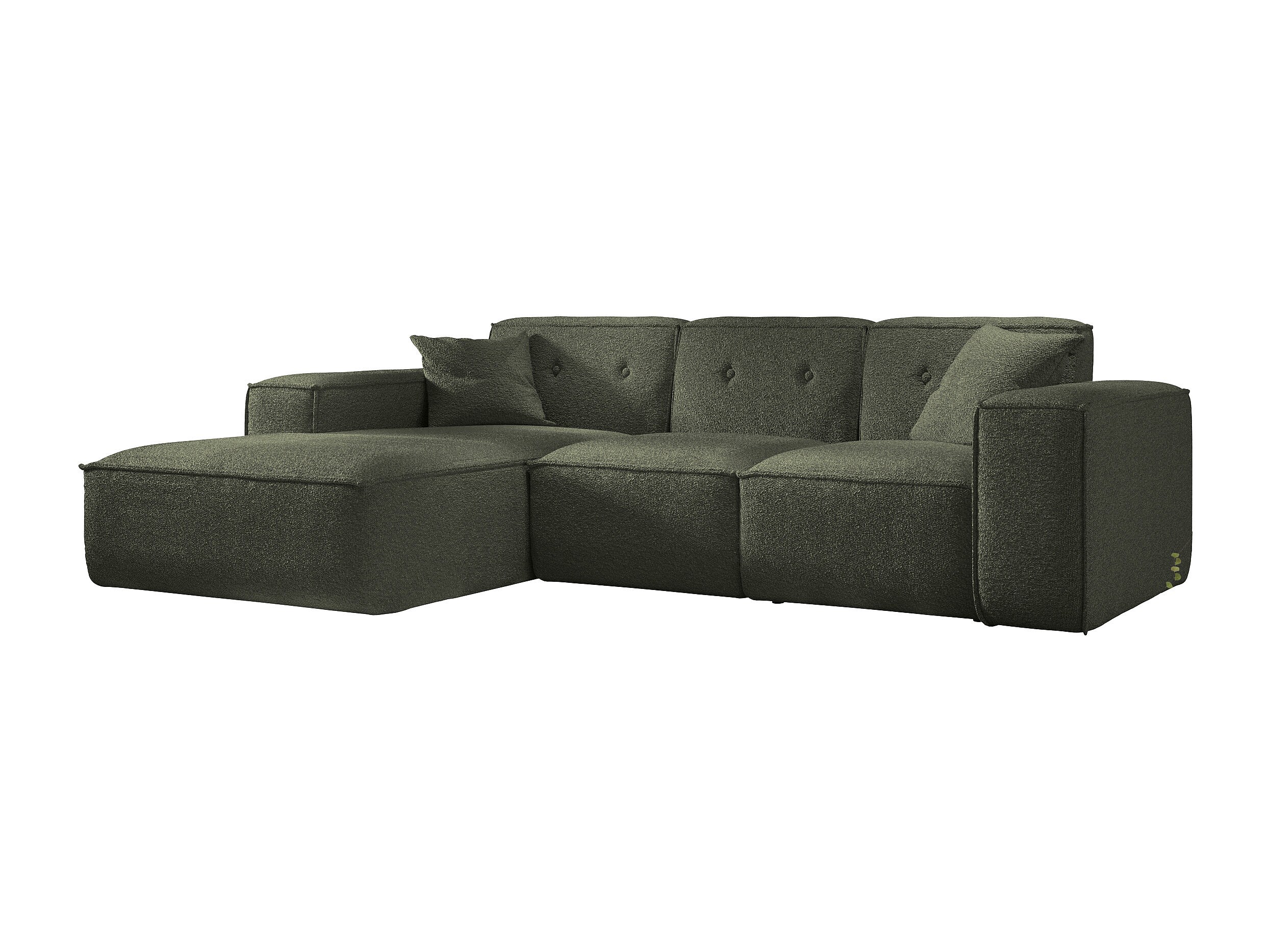 Canapé d'angle PULA en L, tissu Antic, vert foncé, gauche