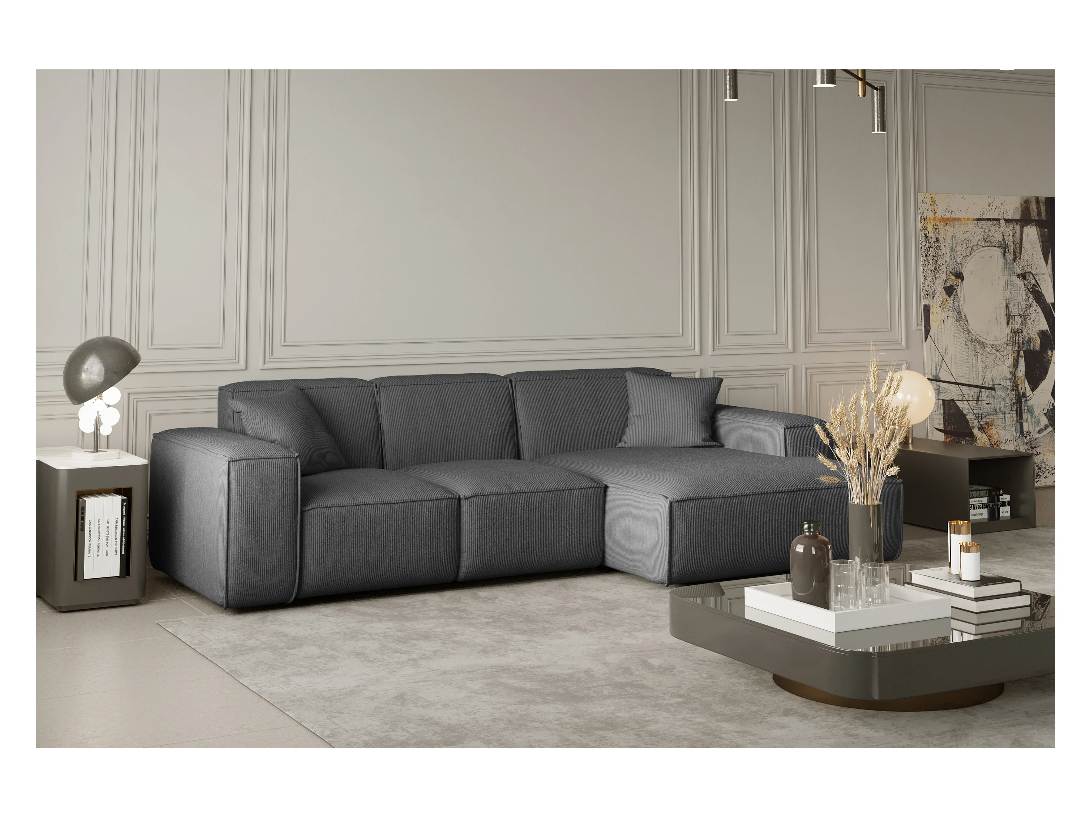 Canapé d'angle, canapé en L design Modena tissu pur Poso Graphite Droite