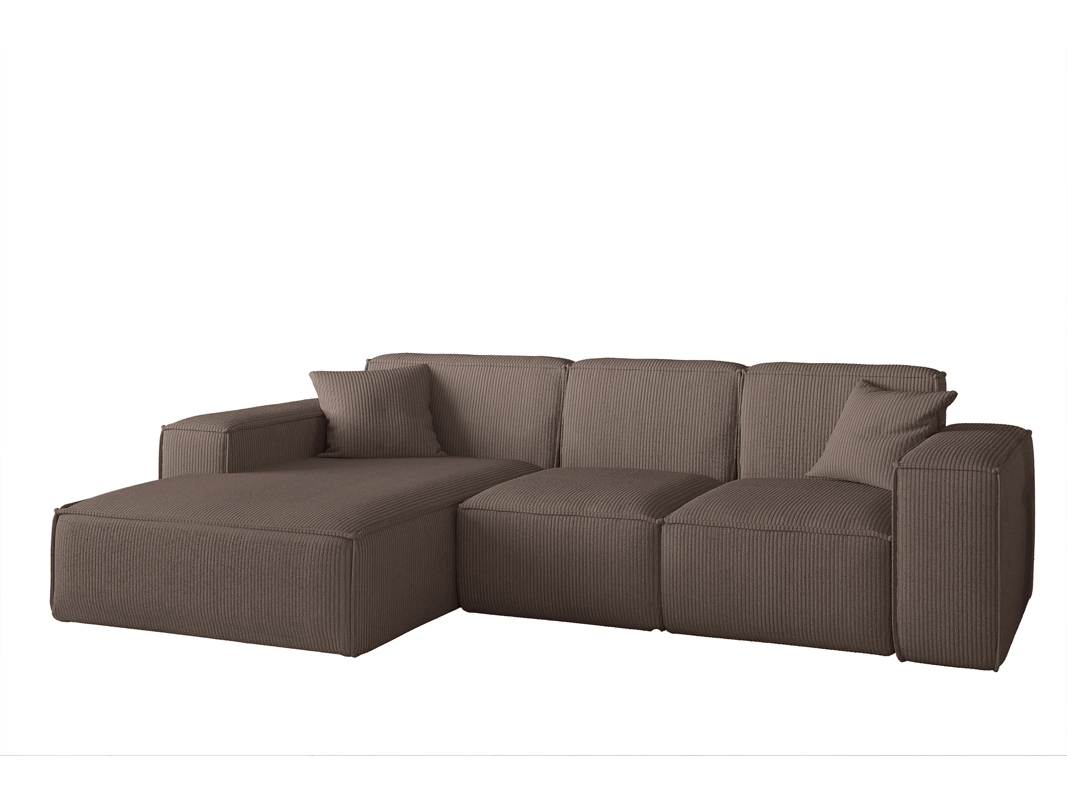Canapé en L Modena, canapé d'angle moderne et confortable en tissu Salvador gauche marron