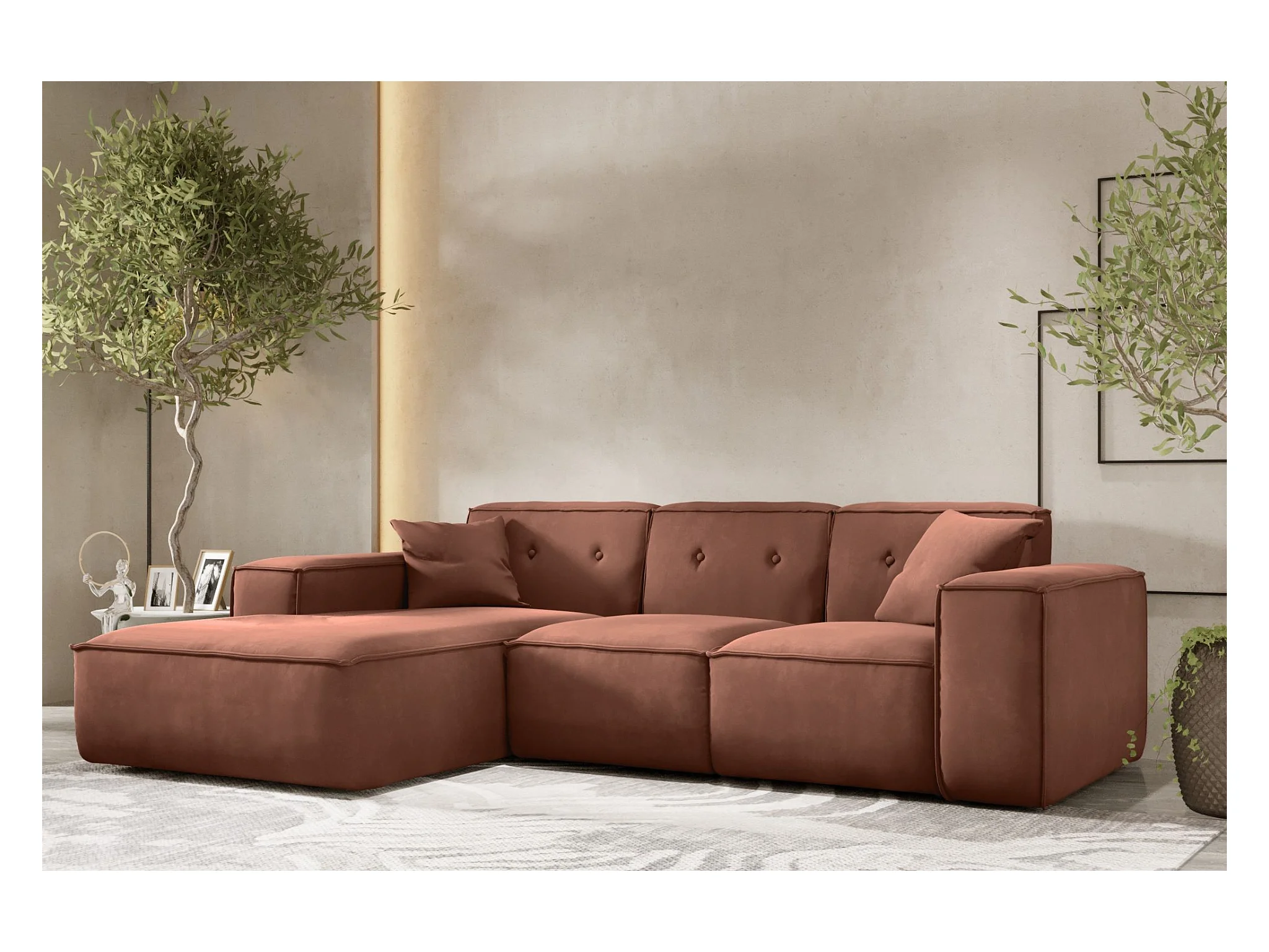 Canapé d'angle PULA en L, tissu velours Opera, brique, gauche