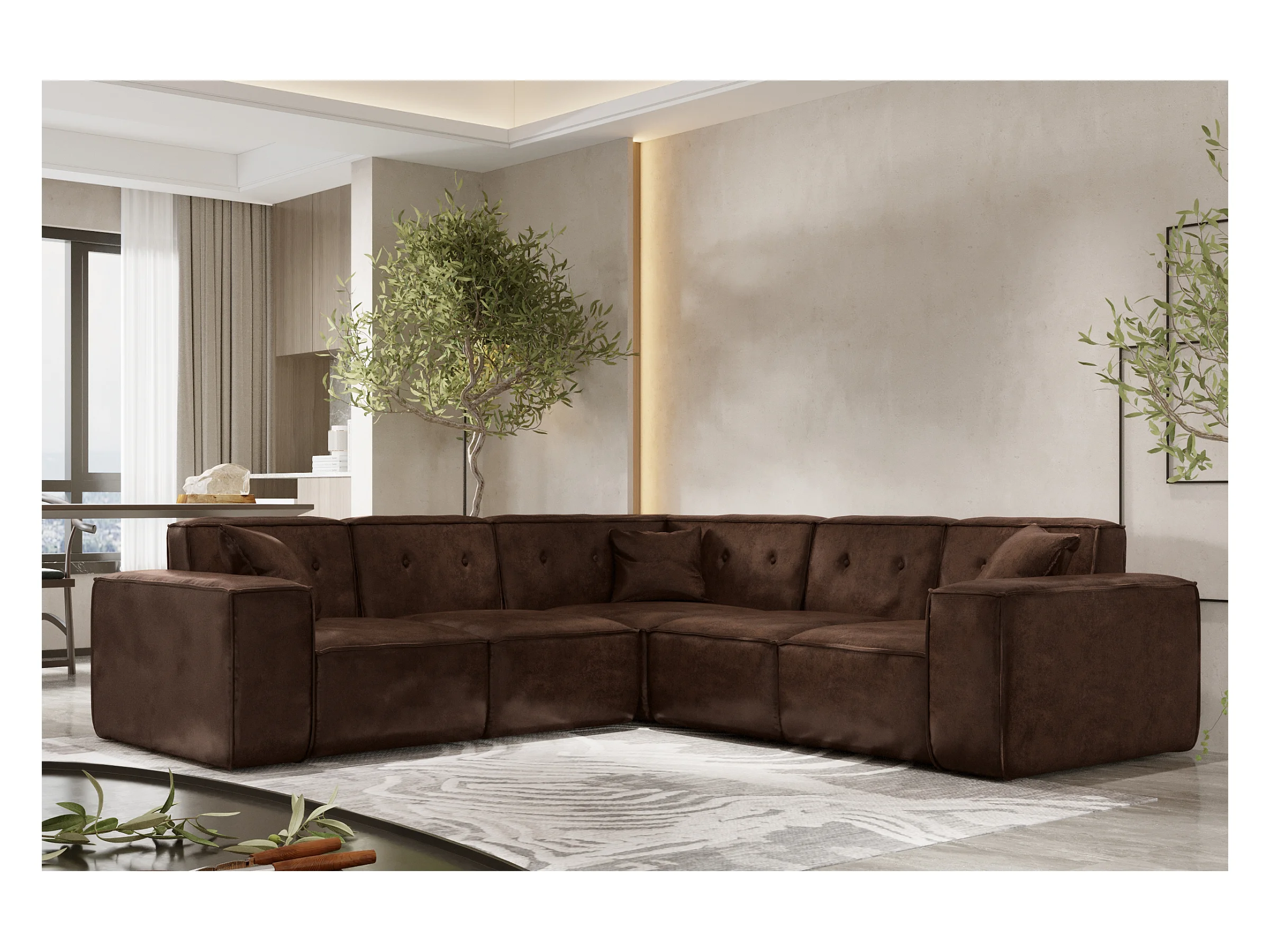 Canapé d'angle PULA, tissu Opera Velvet, marron