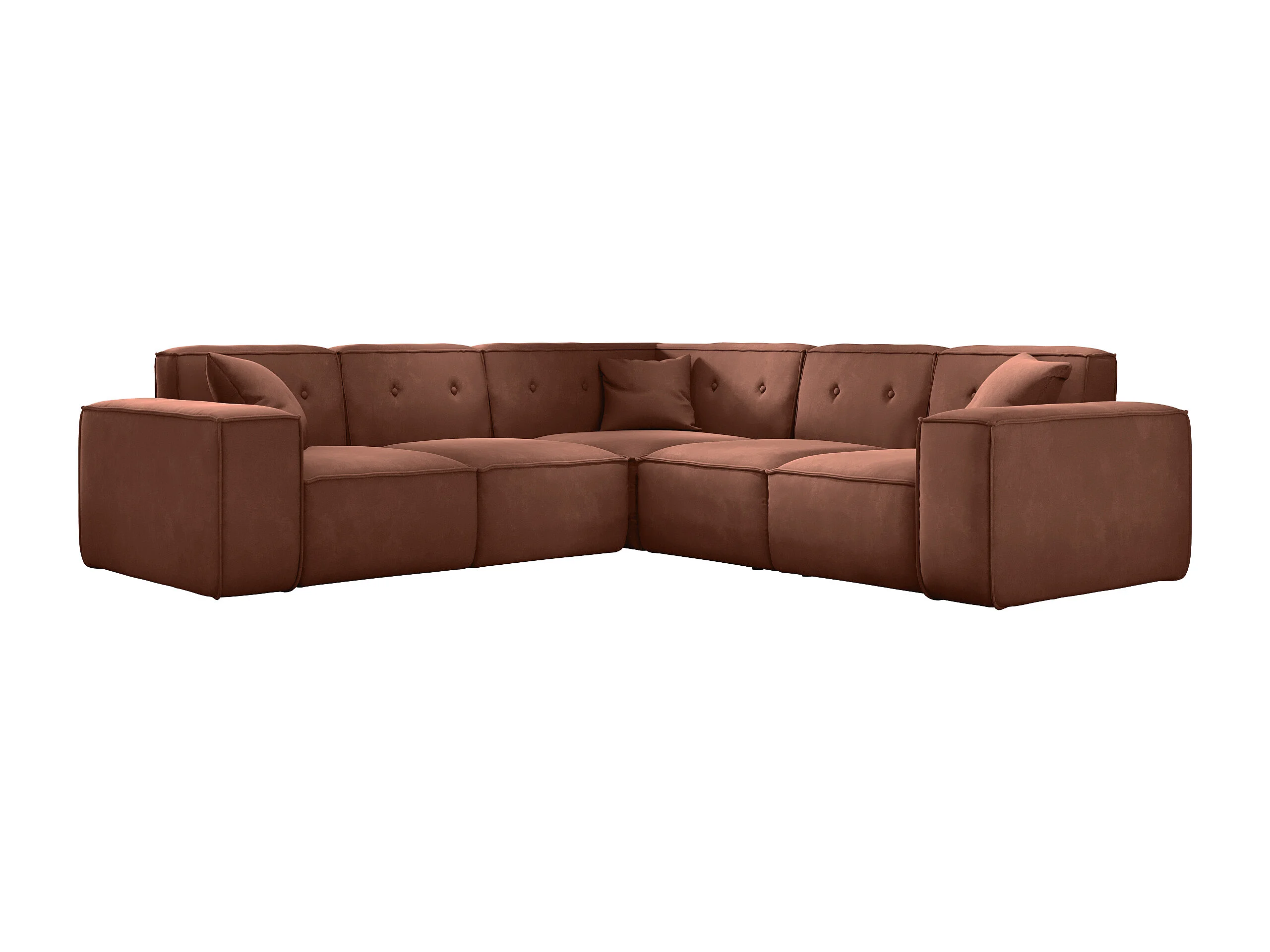 Canapé d'angle PULA, tissu Opera Velvet, brique