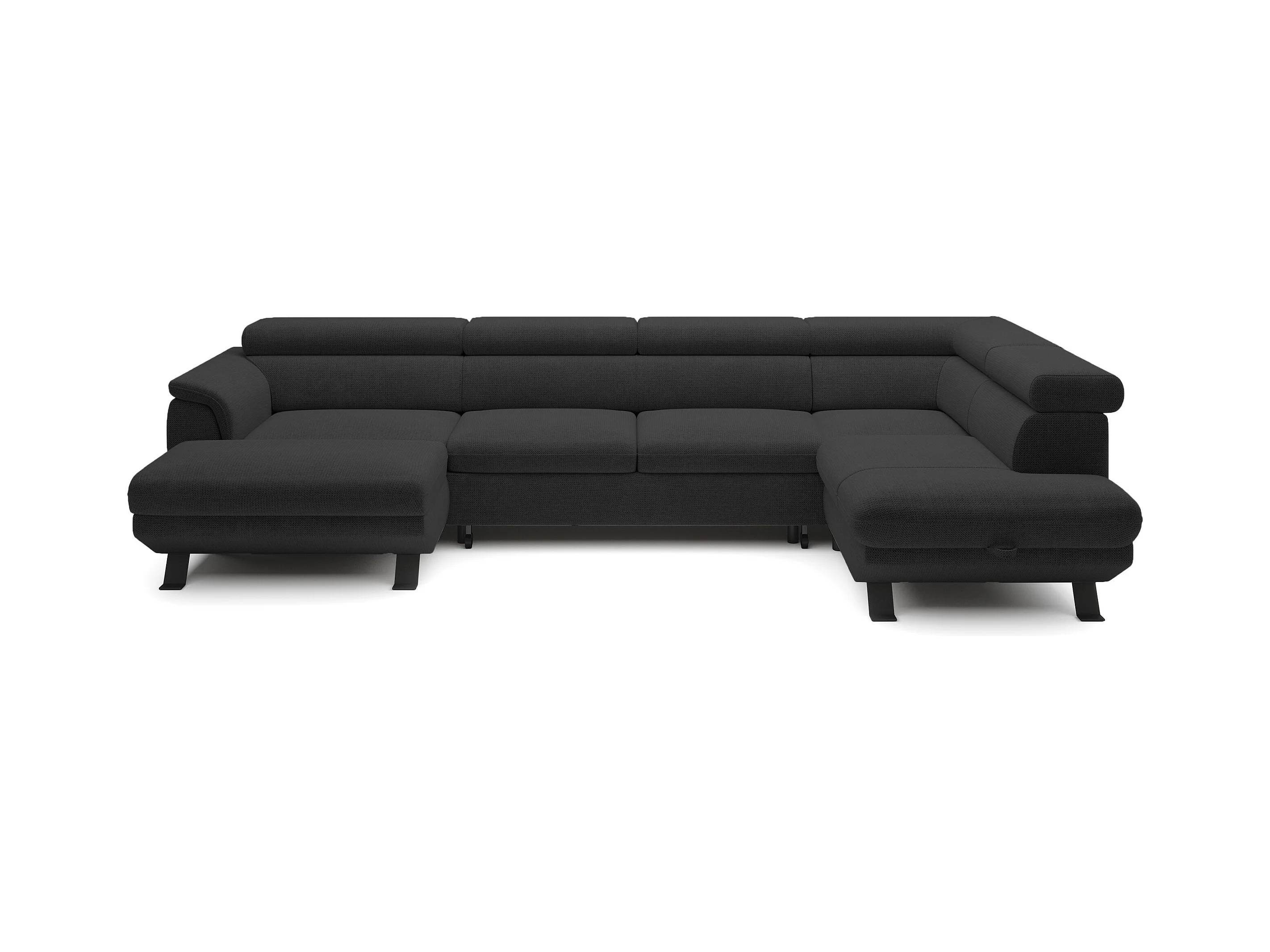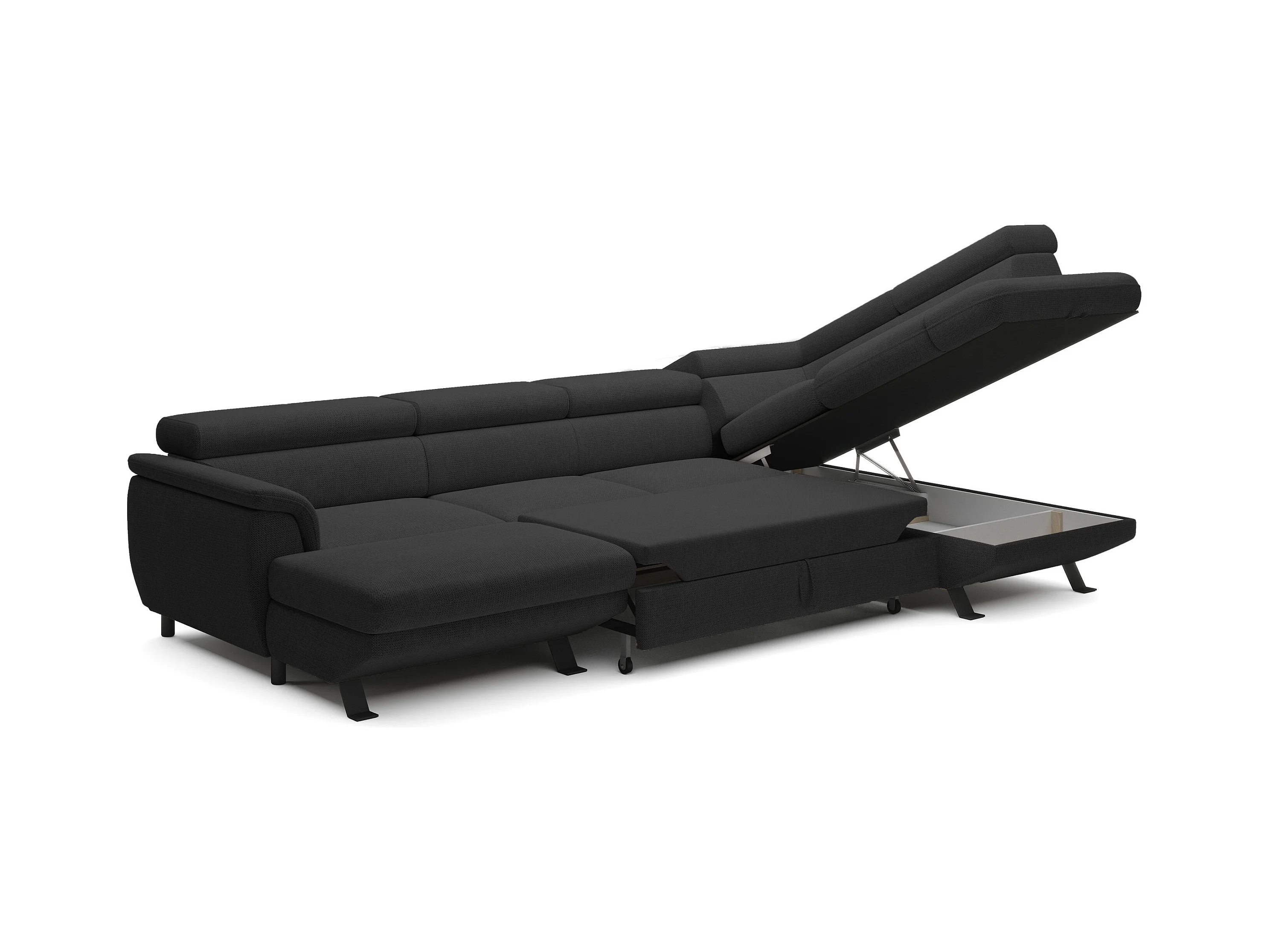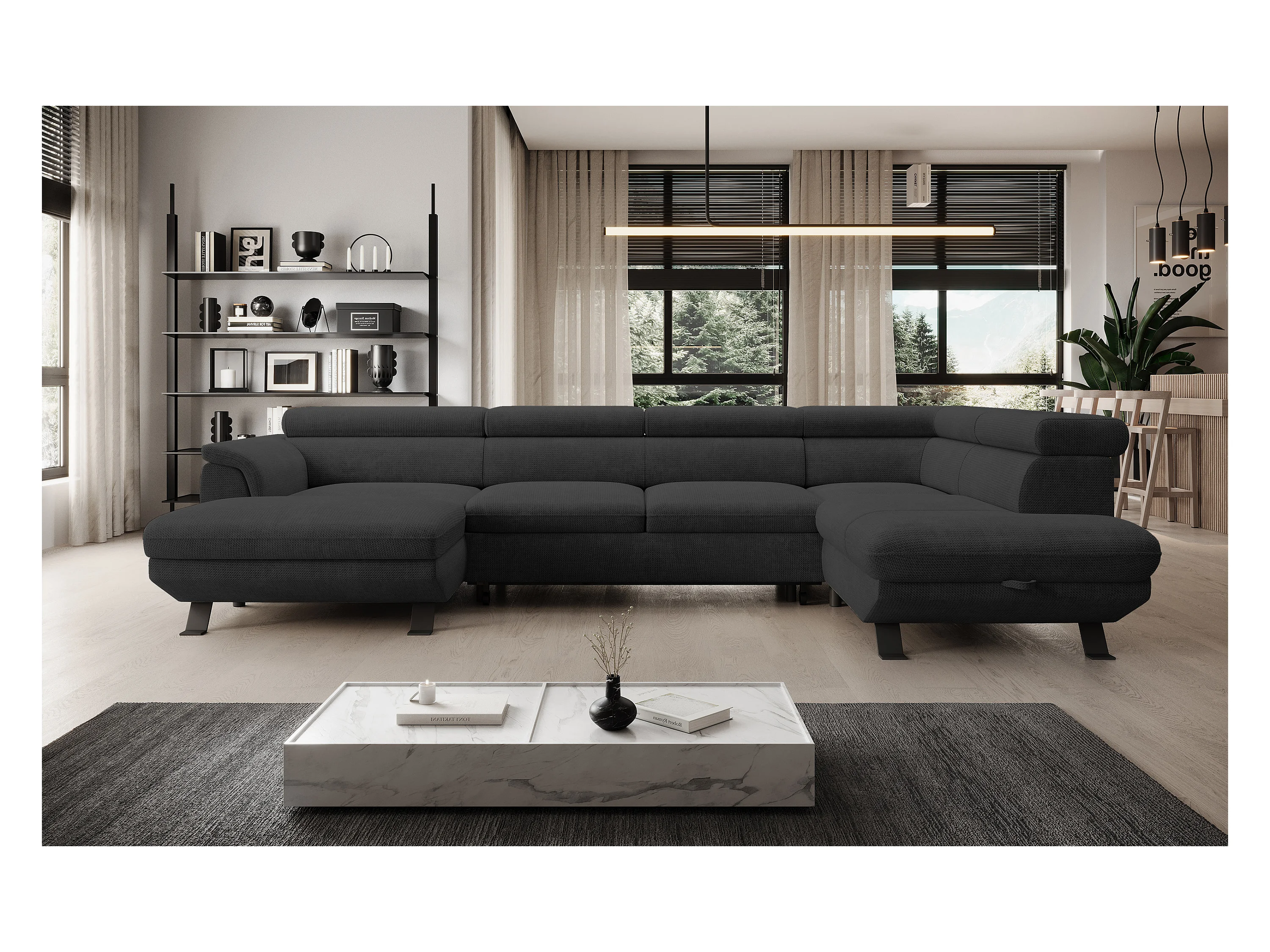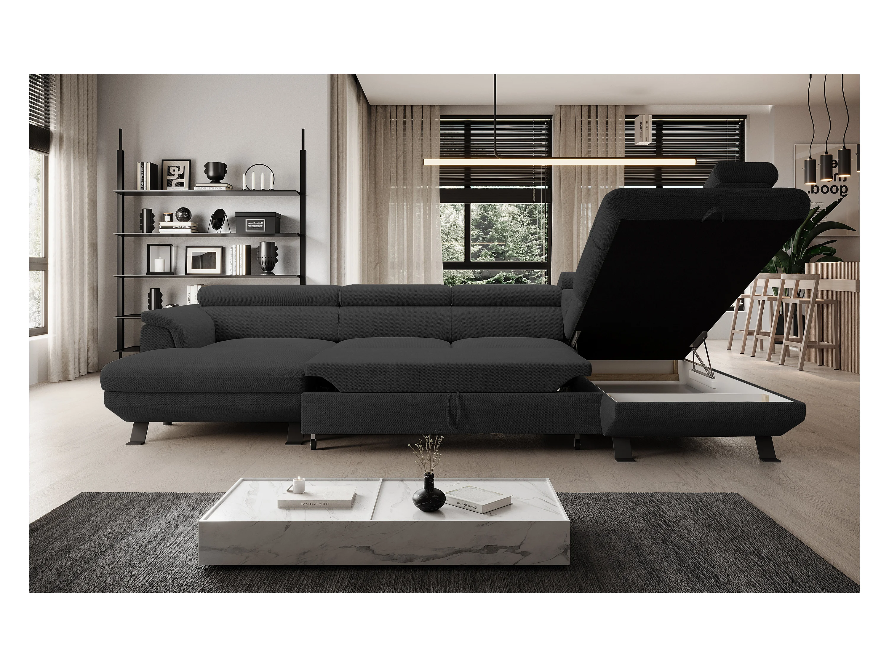 Canapé d'angle RAVEN XL convertible avec tiroir-lit, appuie-têtes réglables, coffre, 334x198x162cm, côté droit Anthracite