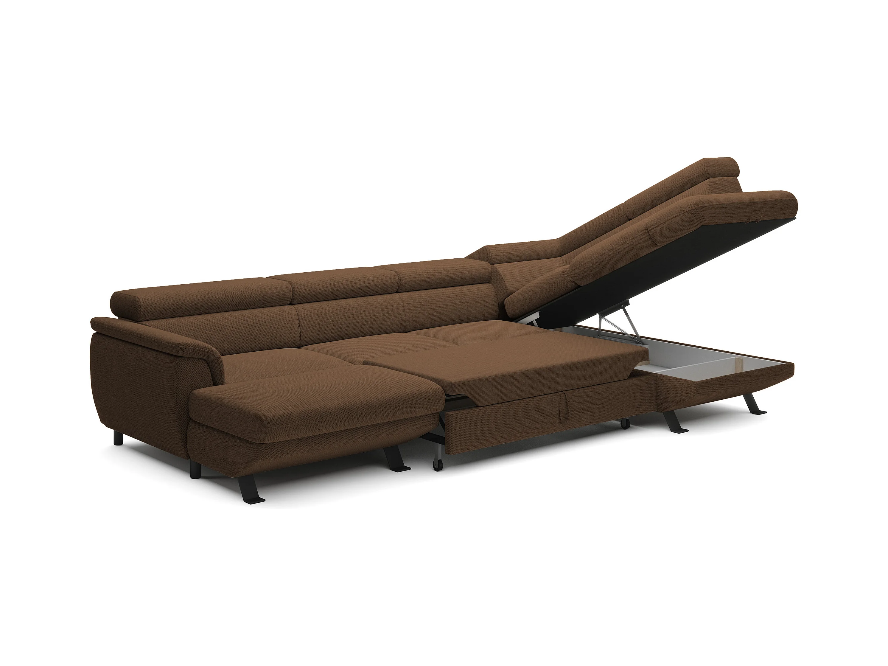Canapé d'angle RAVEN XL convertible avec tiroir-lit, appuie-têtes réglables, coffre, 334x198x162cm, côté droit Rouille