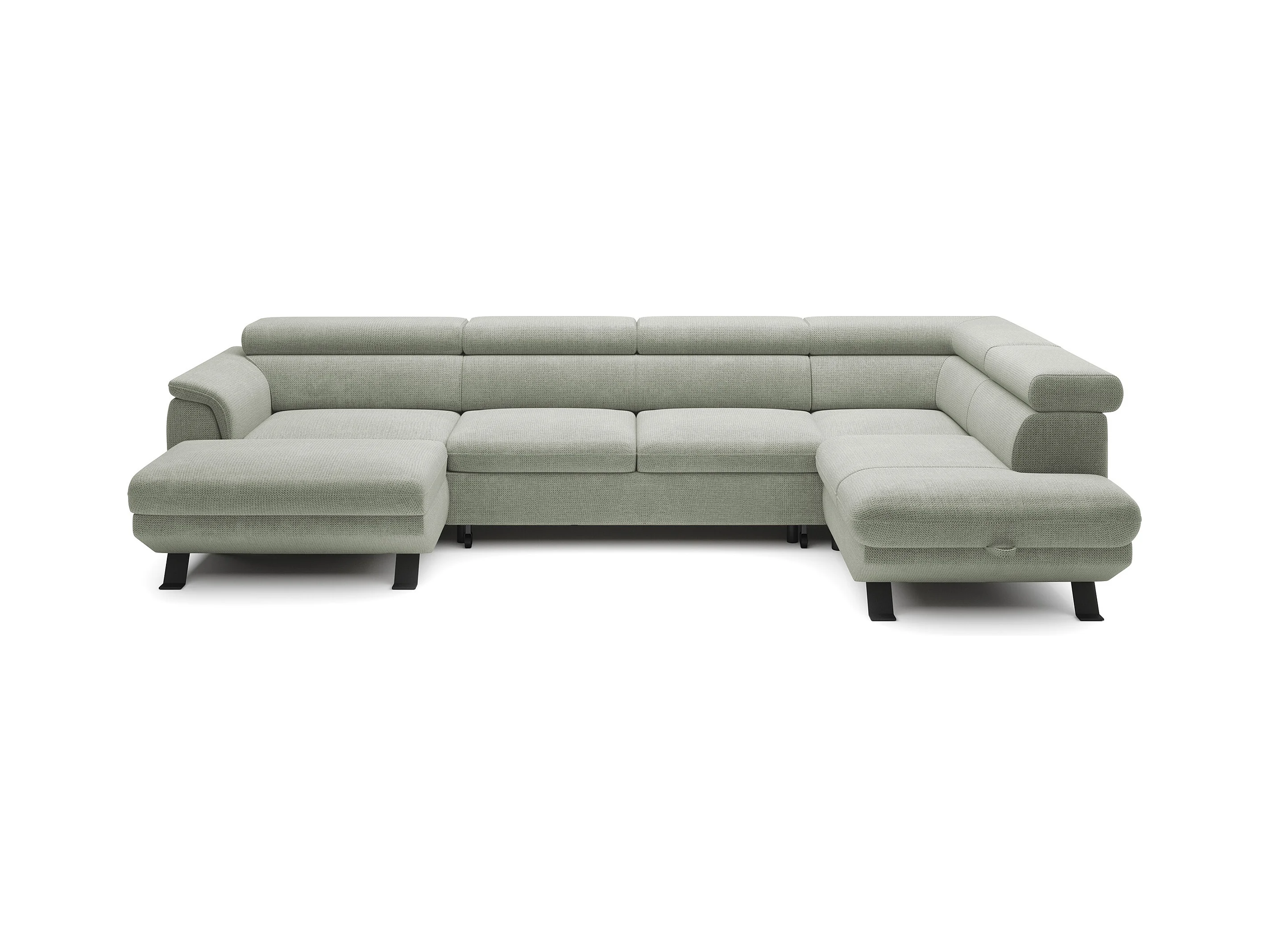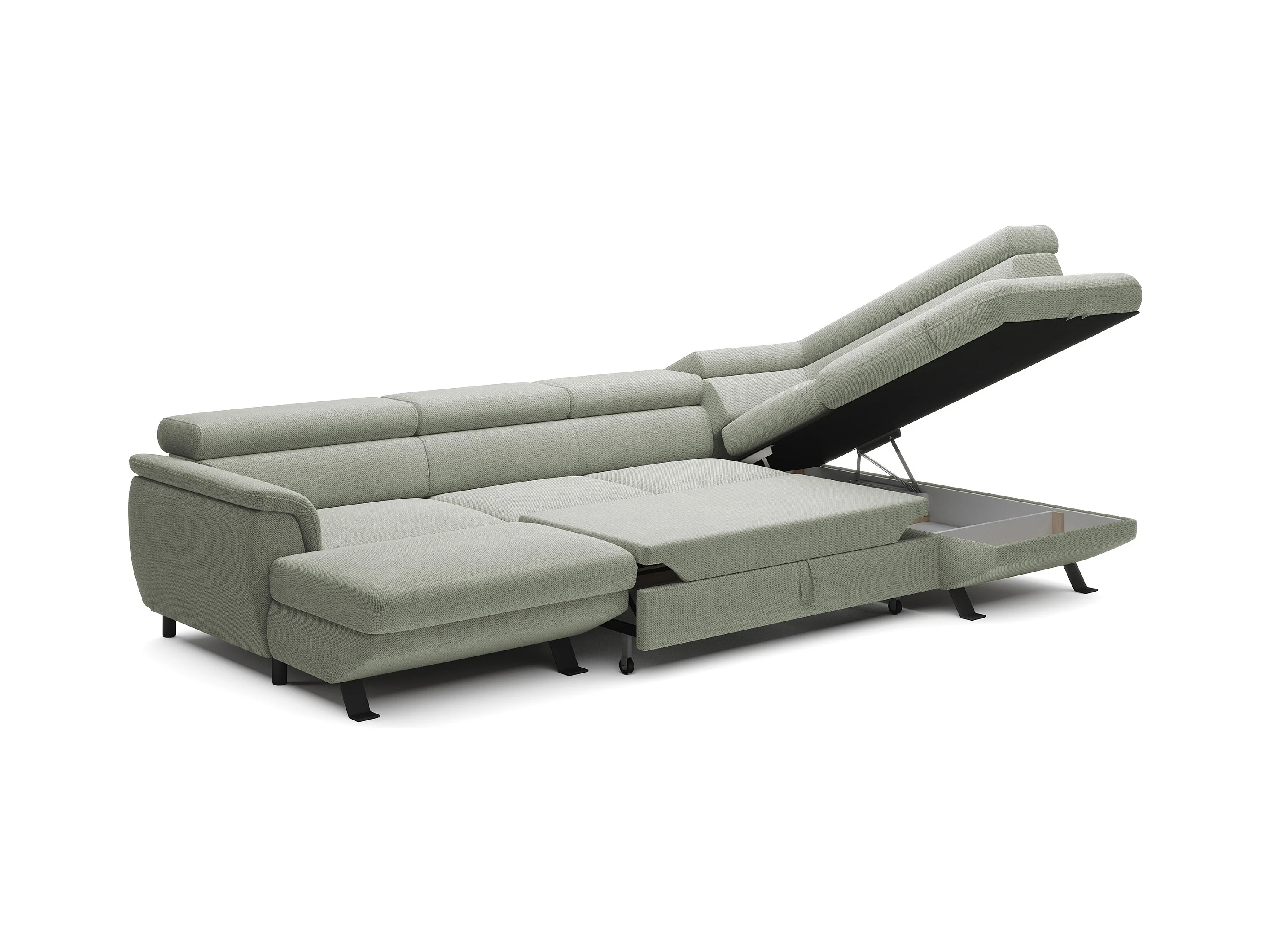 Canapé RAVEN L avec fonction de couchage, compartiment à literie, indépendant, rembourré avec têtières réglables 257x198x96 cm Côté droit Beige