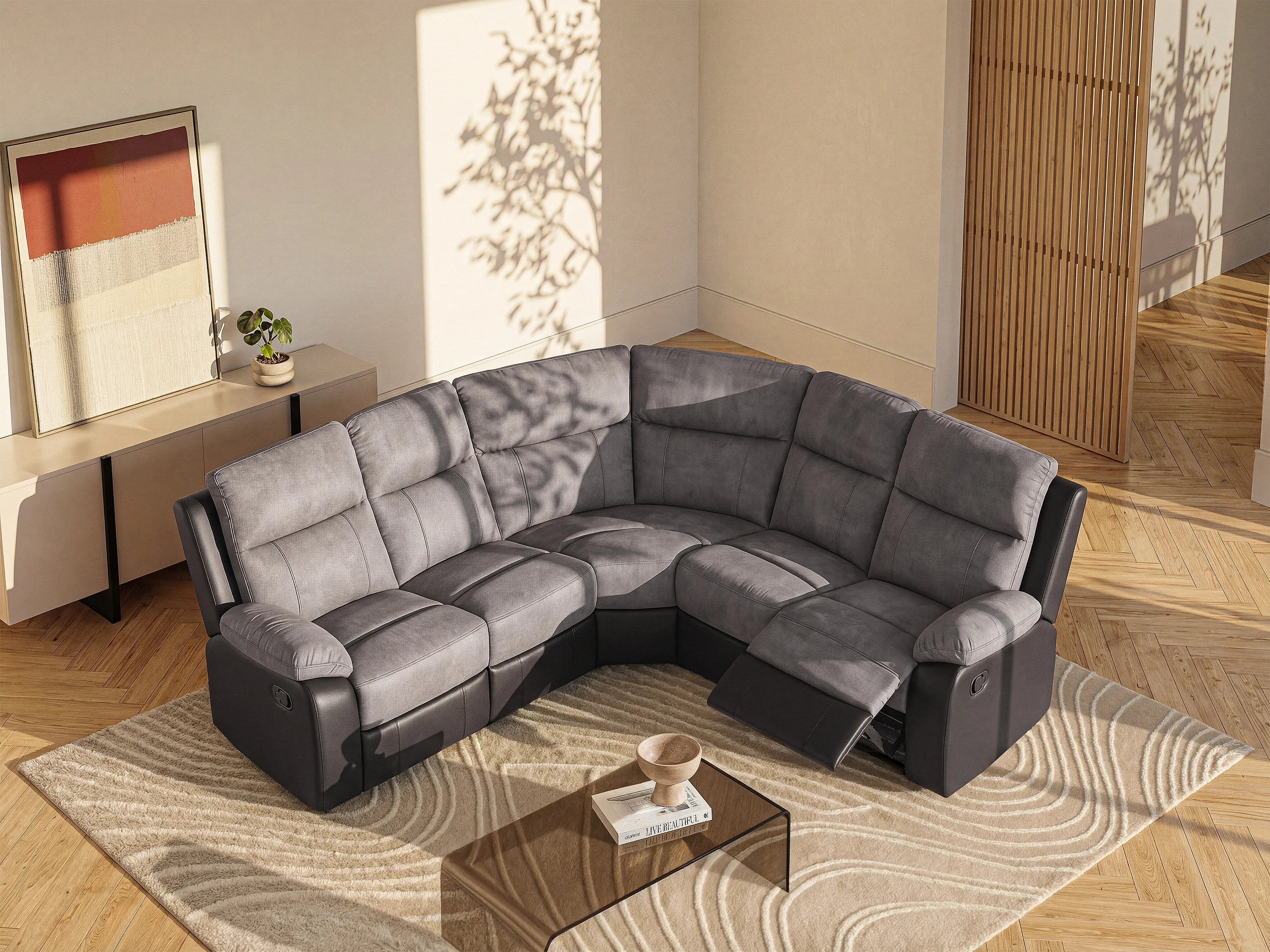 Canapé d'angle relax gris et noir en microfibre et simili TOLZANO