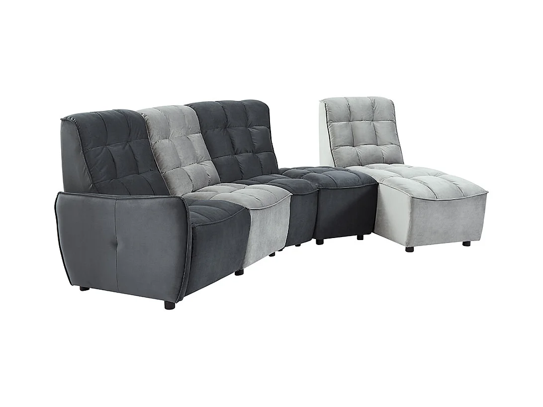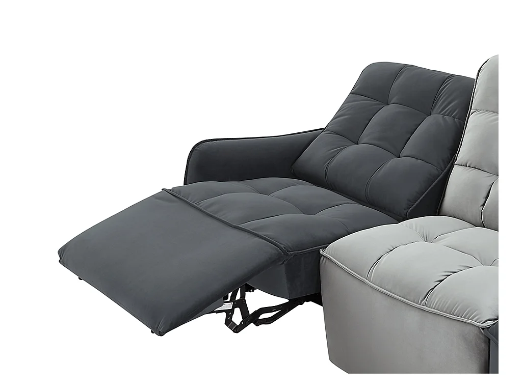 Canapé d'angle relax électrique modulable en velours gris clair et anthracite ALFORD