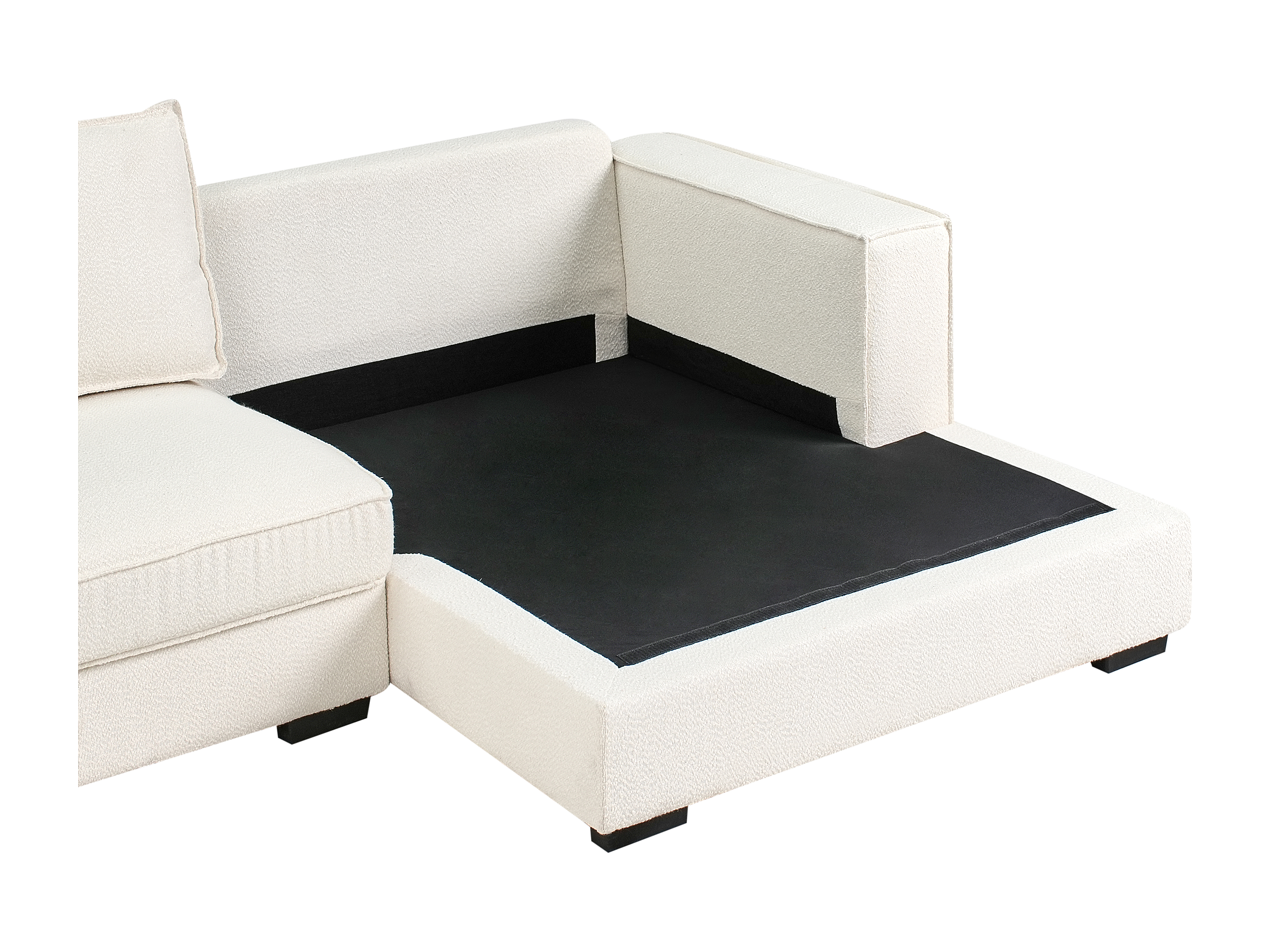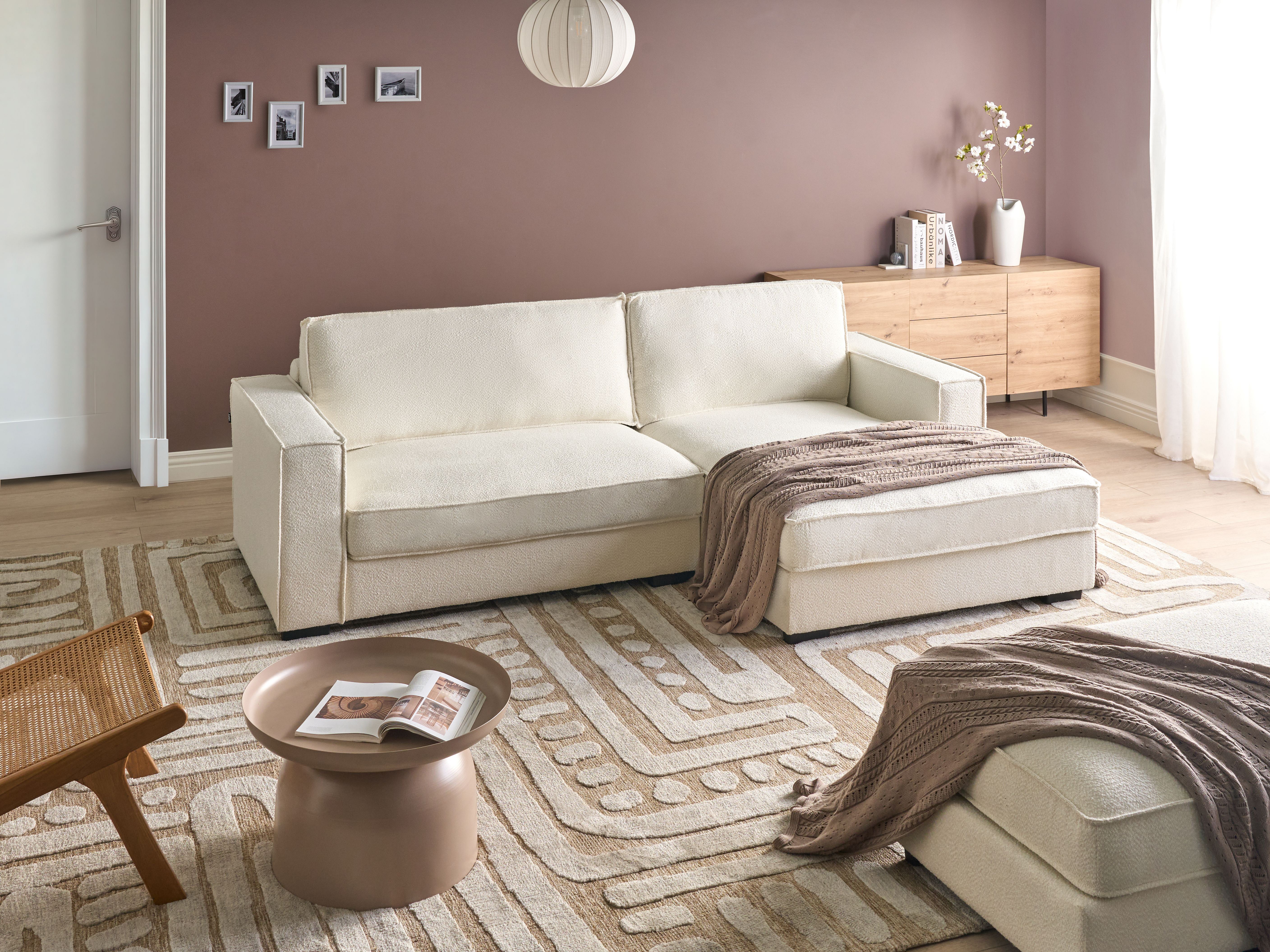 Canapé d'Angle à droite Moderne en Bouclé en Forme de L avec Coussins Rembourré Blanc Cassé Renders