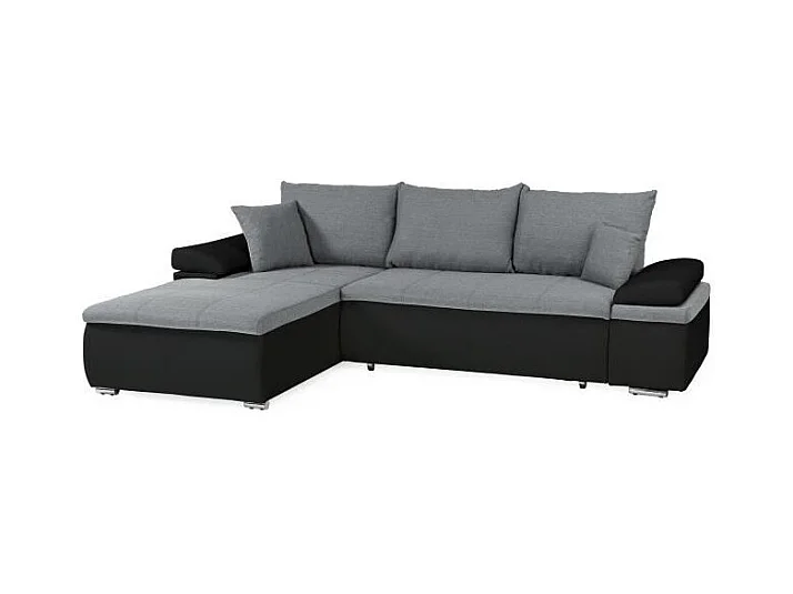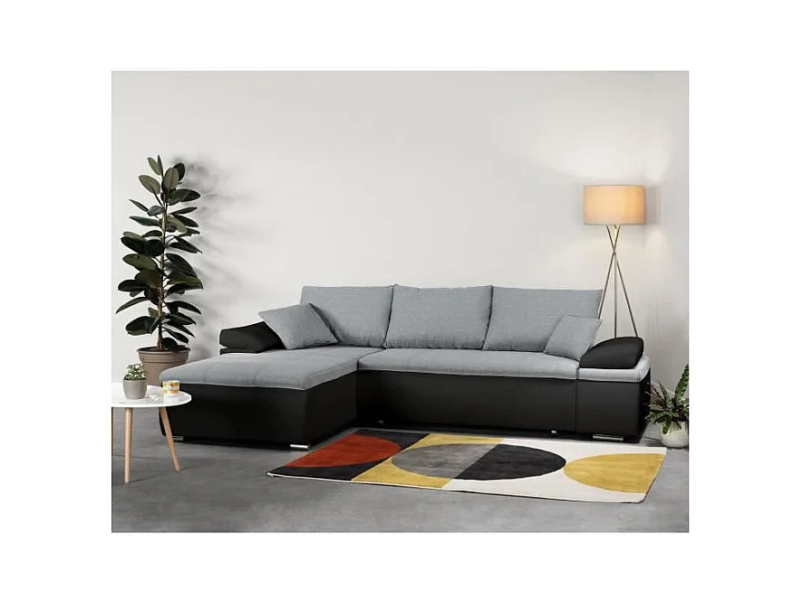 Canapé d'angle convertible - en tissu gris et simili noir, angle droit (vu de face) - LUCAS