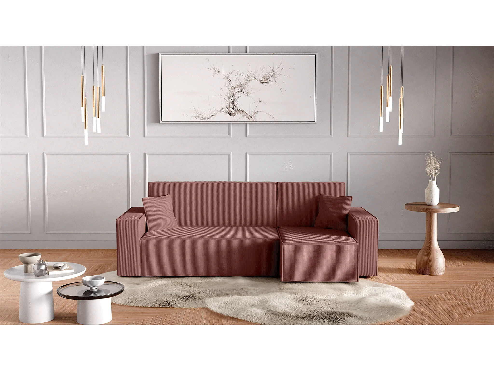 Canapé d'Angle réversible convertible avec fonction de couchage Karl L coffre universel en velours côtelé cuivre du fabricant - L244 x P145 x H82cm Vinotti
