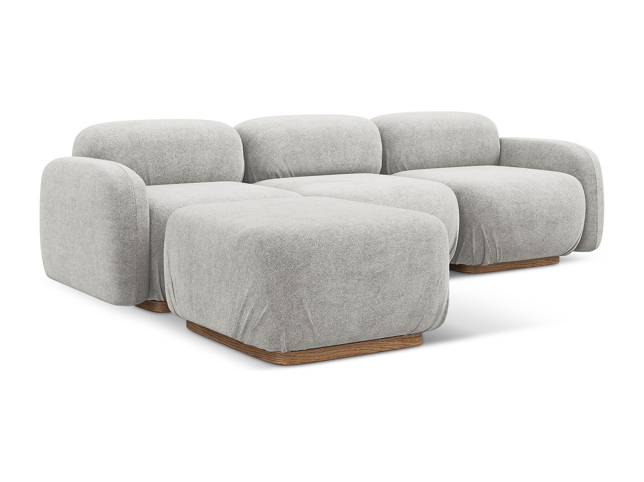Canapé d'angle 3 places modulaire gauche en tissu bouclette - argent - ALOHA