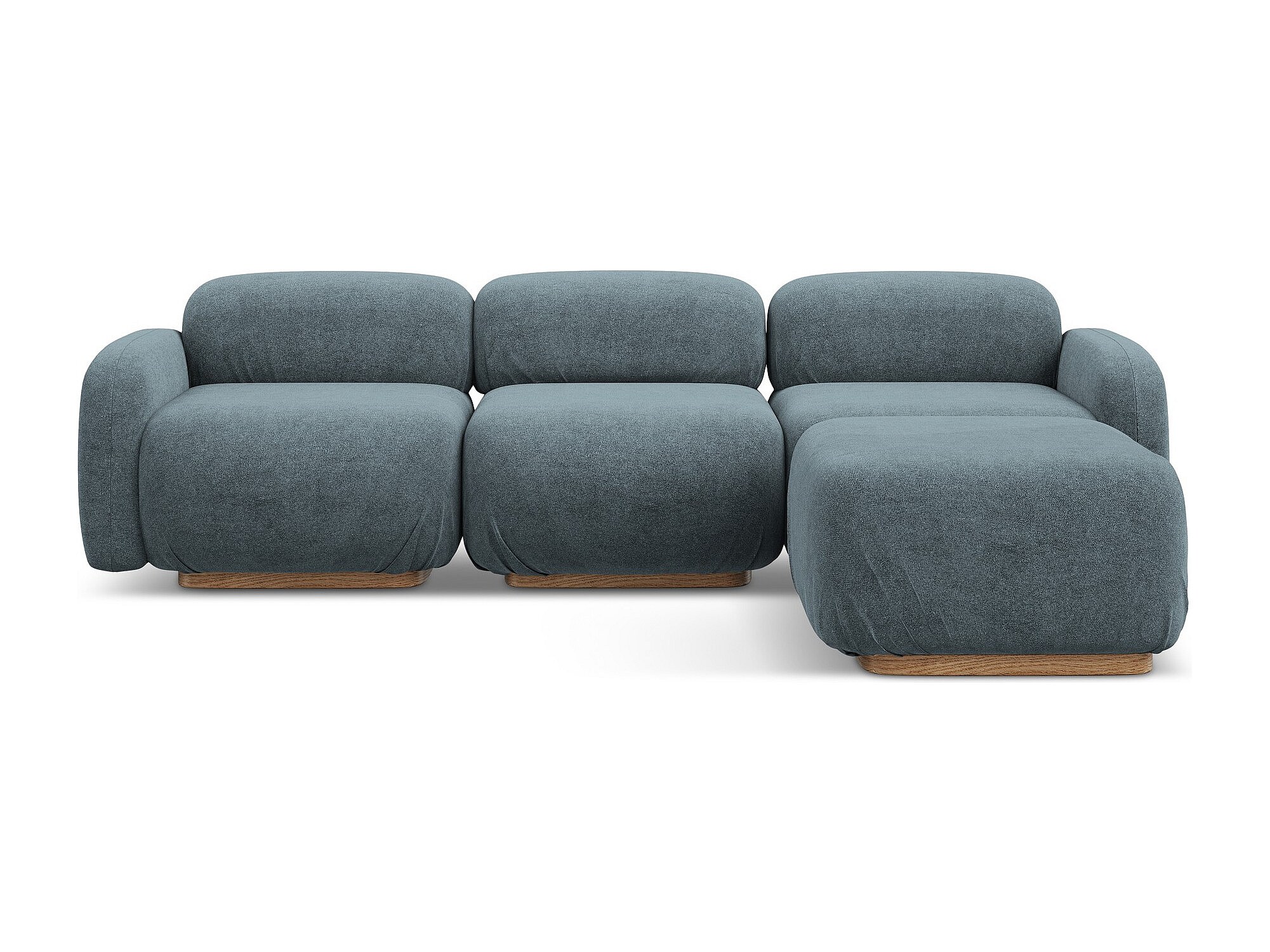 Canapé d'angle 3 places modulaire droit en velours - bleu clair - LANI