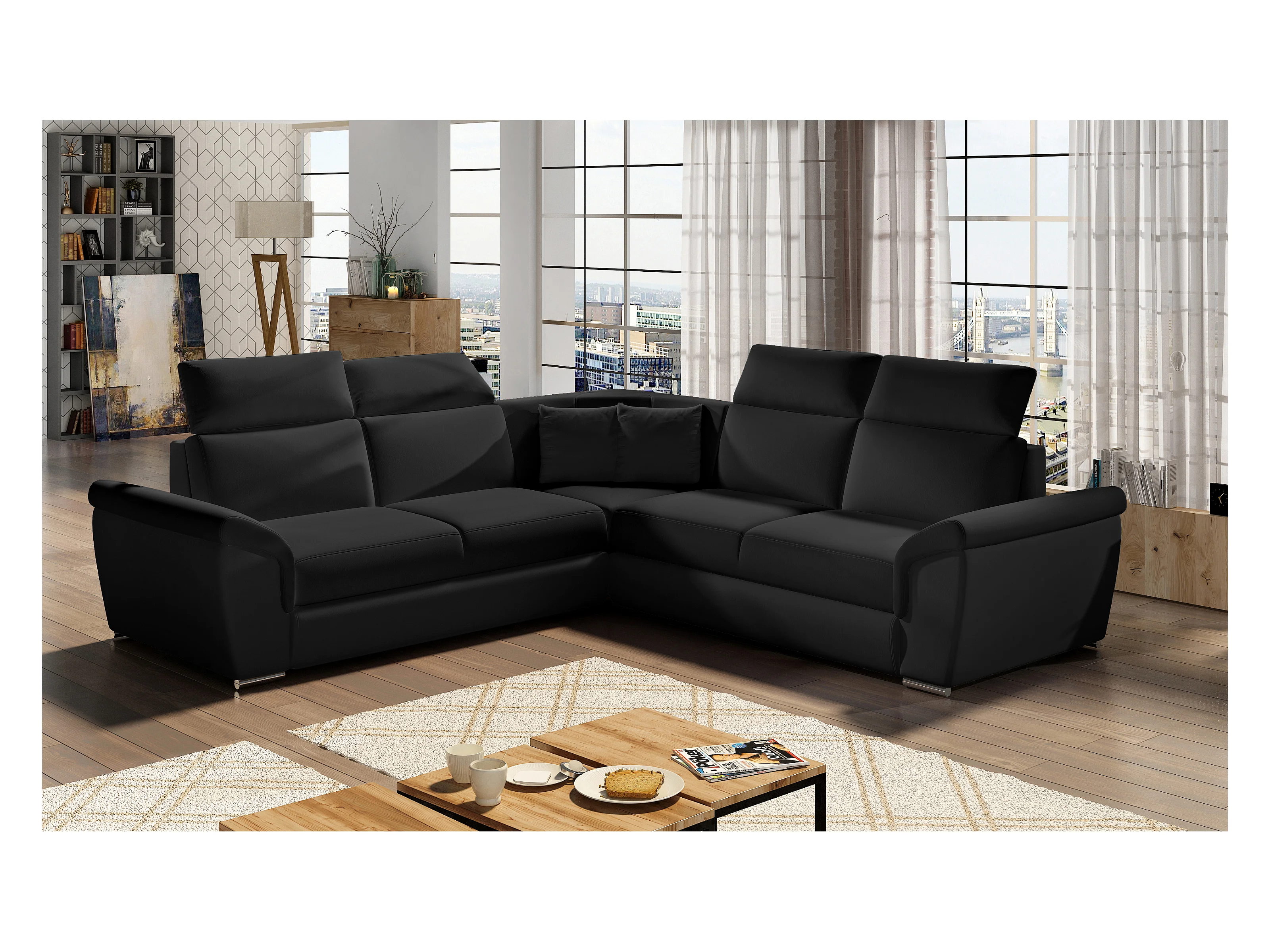 Canapé d'angle convertible simili cuir LARRY - Pieds acier noir-Noir-angle droit